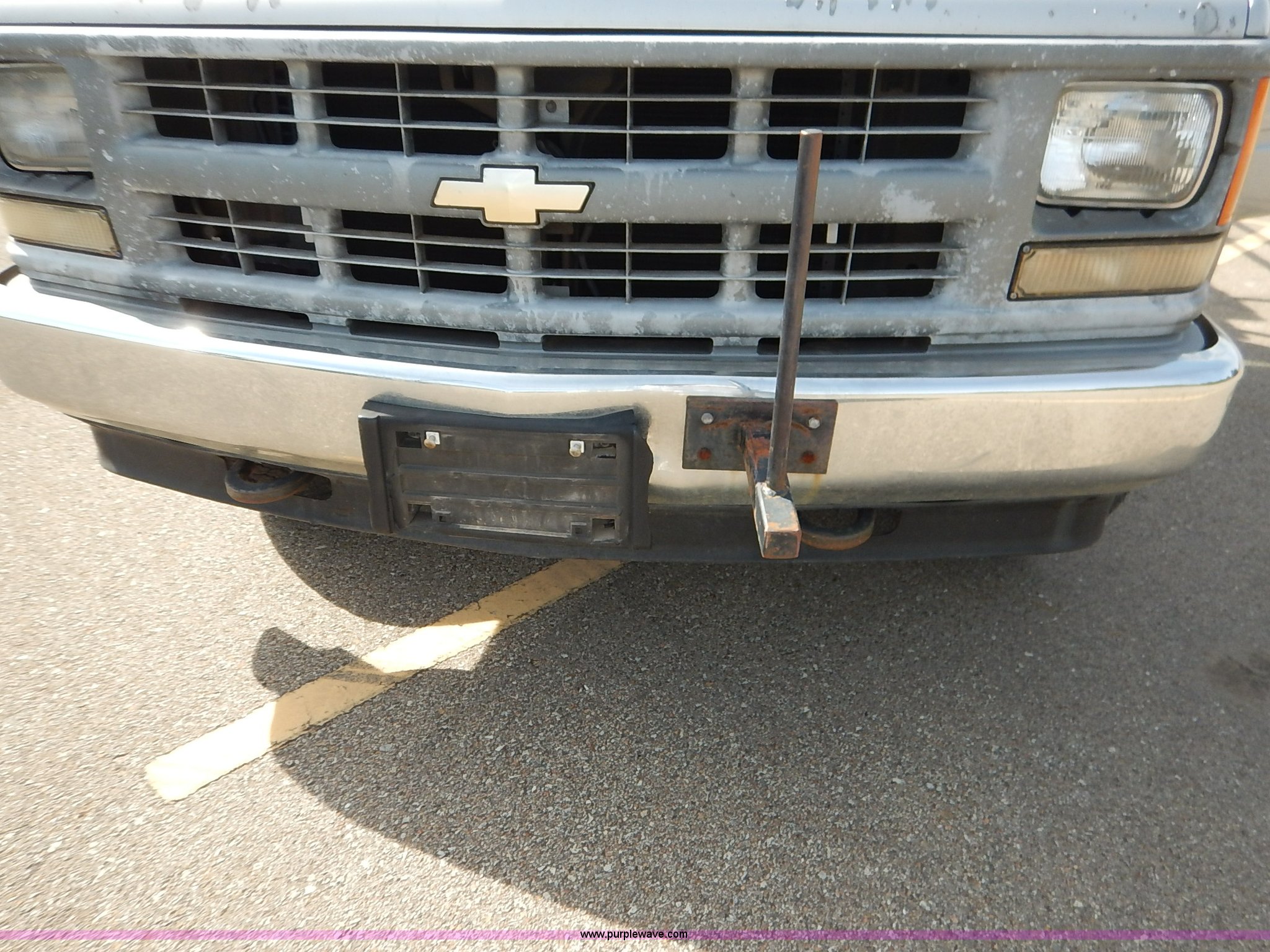 Purple Wave is selling a used 1/2 Ton Pickup or Van in Kansas. This item is a 1994 Chevrolet 1500 pickup truck with the following: 134,600 miles on odometer, 4.3L V6 OHV 12V gas engine, Automatic transmission, AC and heat, AM/FM, Manual windows and locks, Vinyl interior, Front tow hooks, Toolbox, Ladder rack, Ball hitch, 225/75R16 tires, Interior/exterior cosmetic damage, Rust, Dents, Scratches, Paint peeling, Tailgate will not open, Unit# 4X4