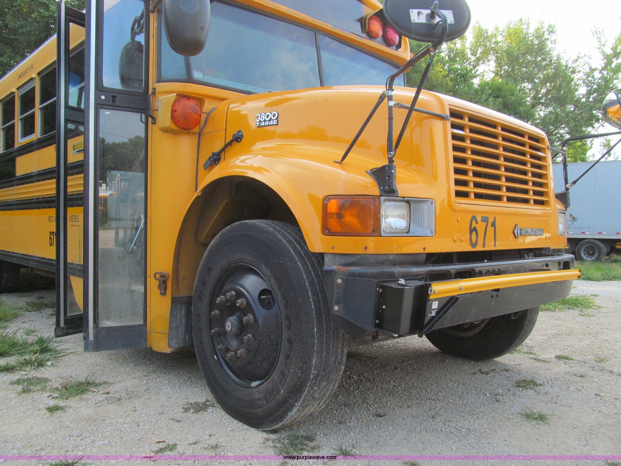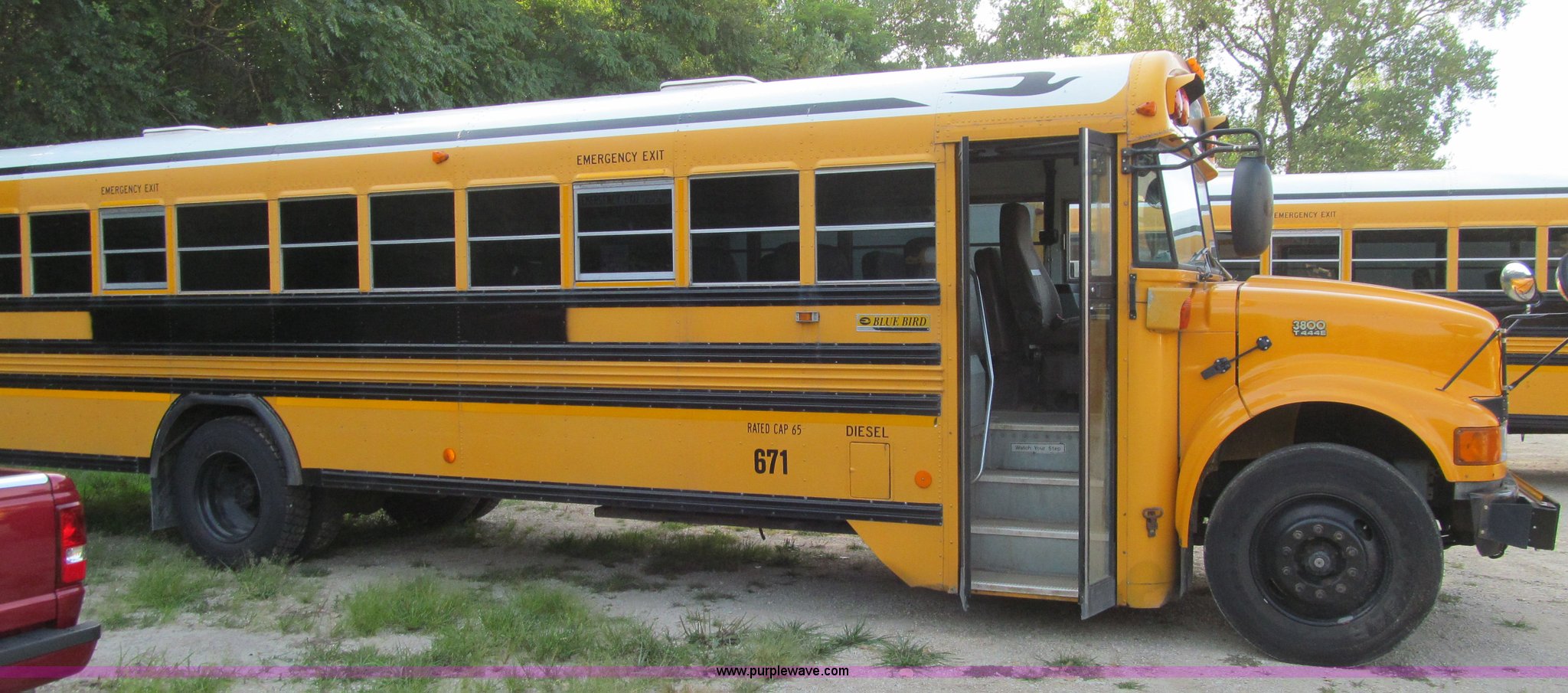 Purple Wave is selling a used Bus in Iowa. This item is a 2003 International 3800 school bus with the following: 118,676 miles on odometer, International T444E 7.3L V8 turbo diesel engine, 210 HP, Automatic transmission, Heat, Tilt, Cruise, AM/FM/CD, Air suspension driver's seat, Block heater, Bluebird body, 65 passenger capacity, (7) emergency egress, Air suspension, Air brakes, 254" wheelbase, 10R22.5 tires, GVWR 29,500 lbs, FAWR 10,000 lbs, RAWR 19,500 lbs, Security camera and business radio not included, Unit# 671