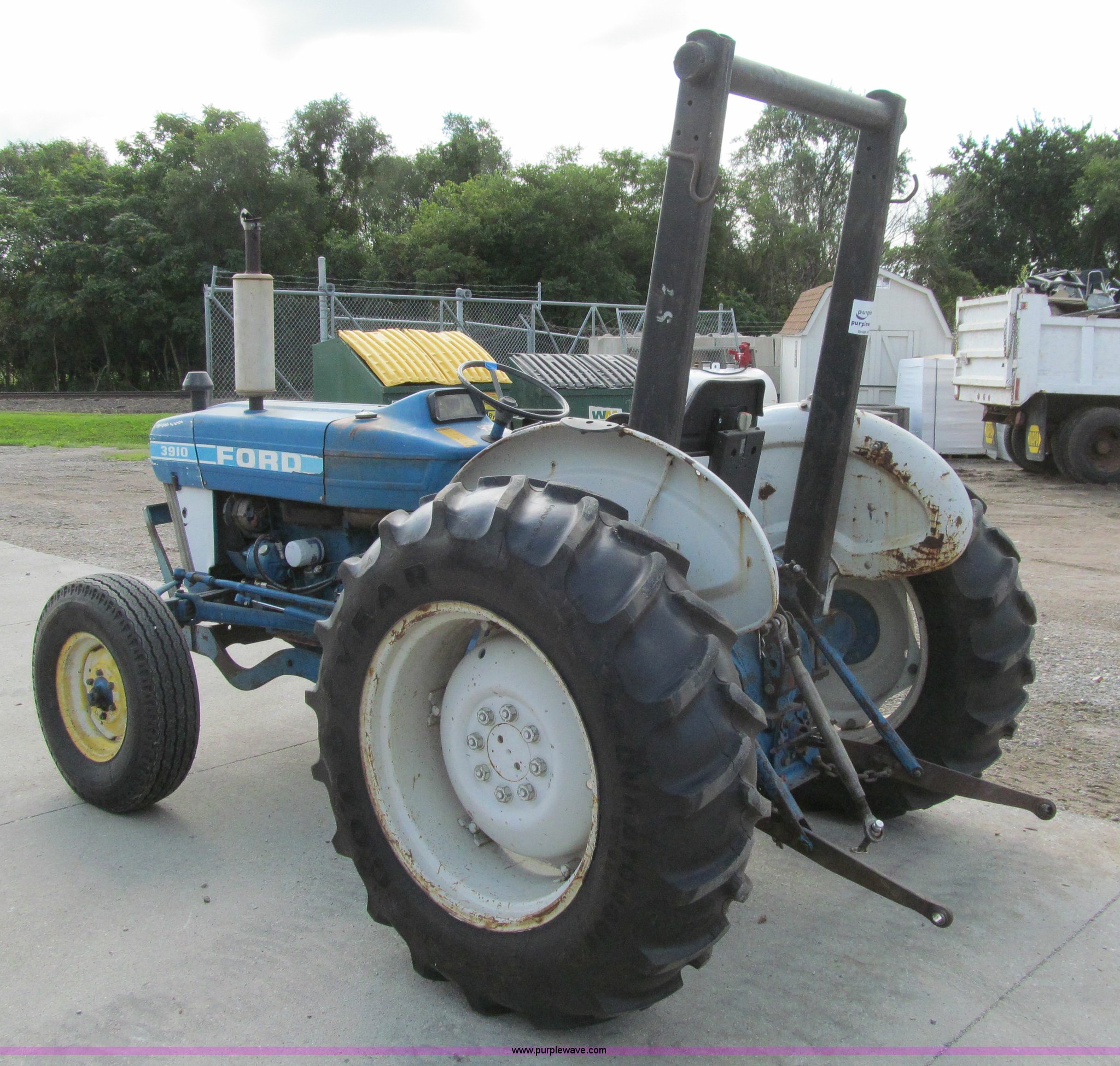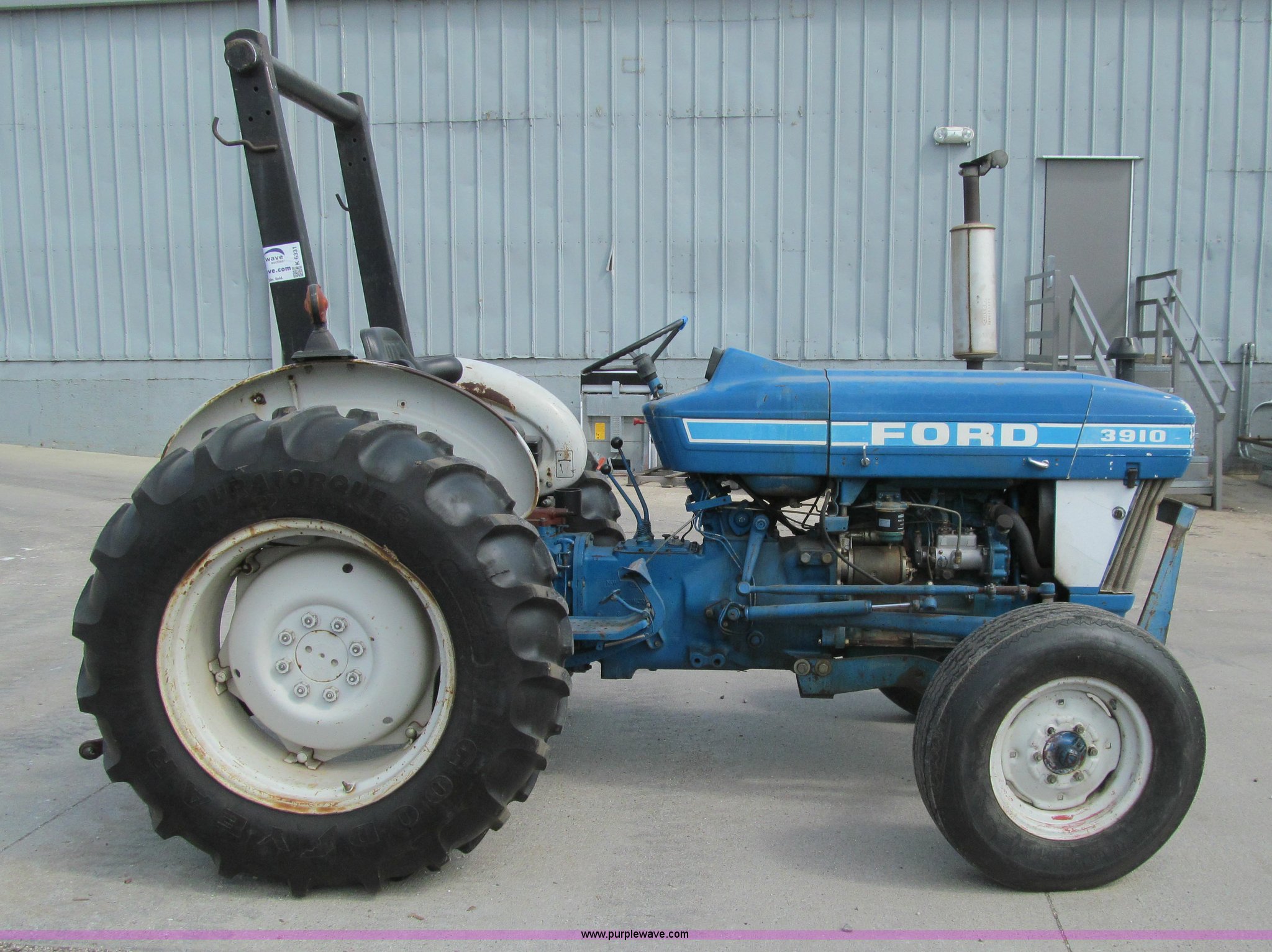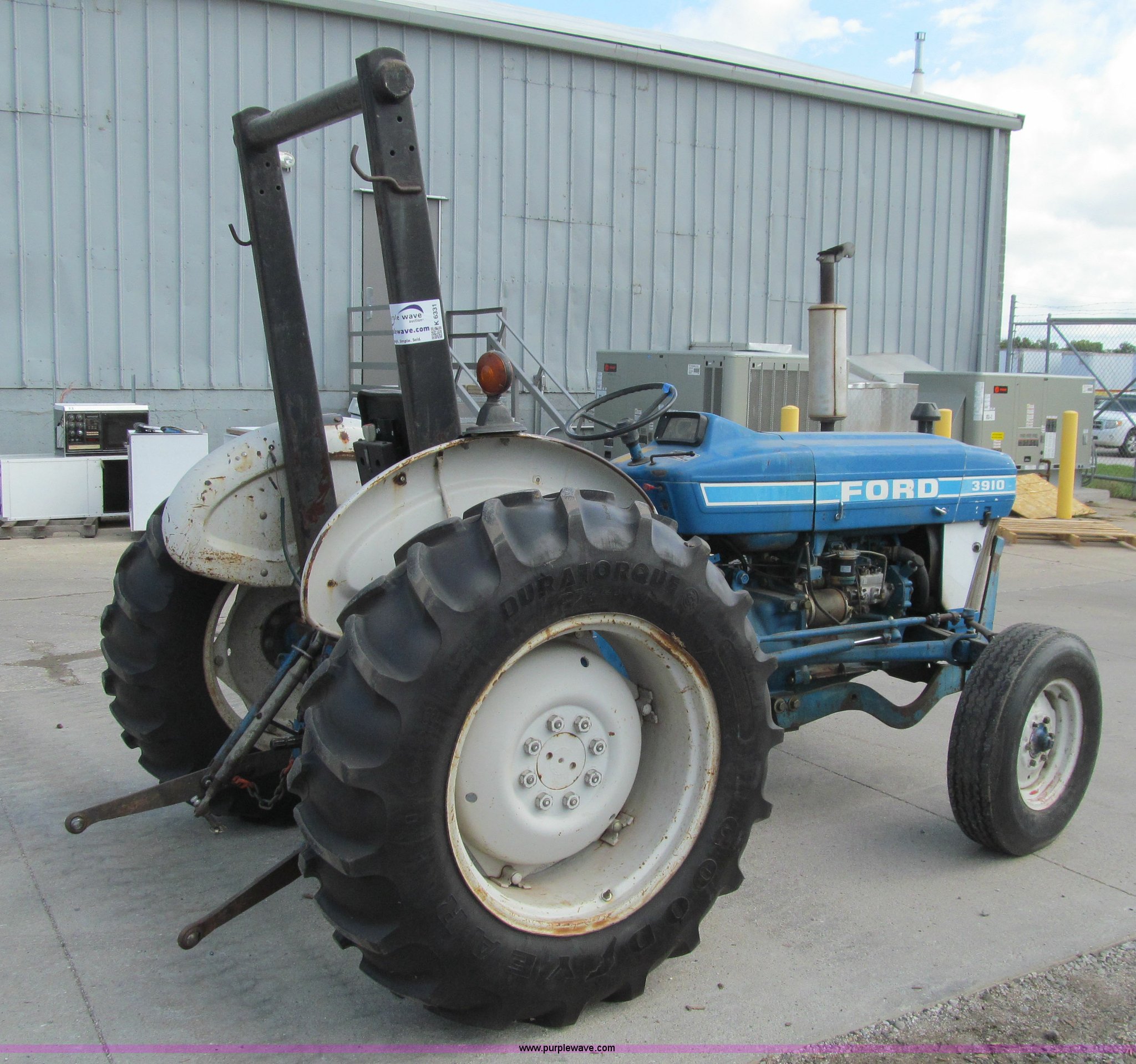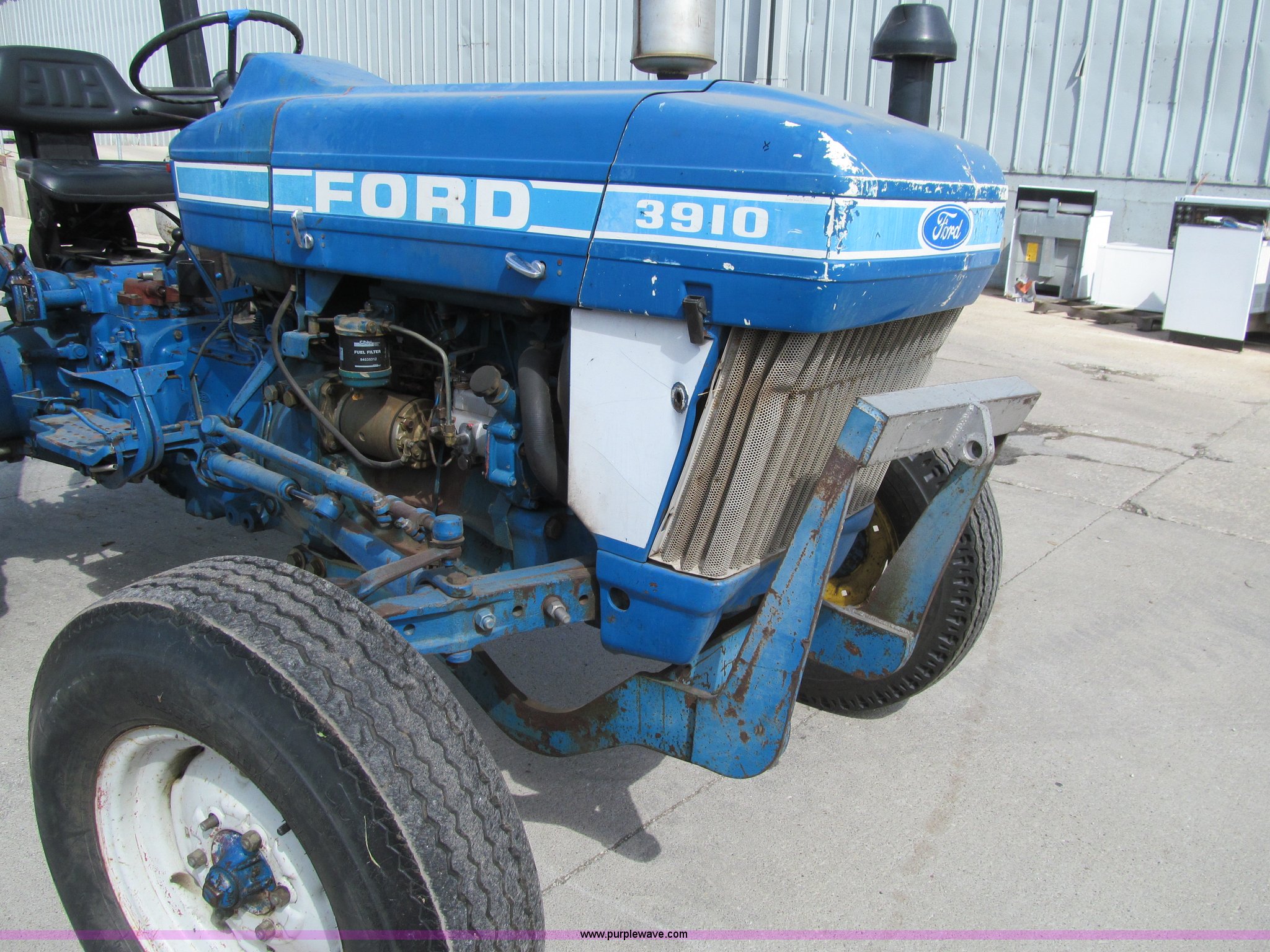 Purple Wave is selling a used Tractor in Iowa. This item is a 1983 Ford 3910 tractor with the following: 5,282 hours on meter, Ford 3F1A 3.1L three cylinder diesel engine, 47.5 HP, Manual transmission, 8F-2R gears, Differential lock, Roll bar, Suspension seat, Grill guard, Three point, Top link, 540 PTO, 77.5" wheelbase, 7.50-16LT front tires, 13.6-28 rear tires, Serial C706002