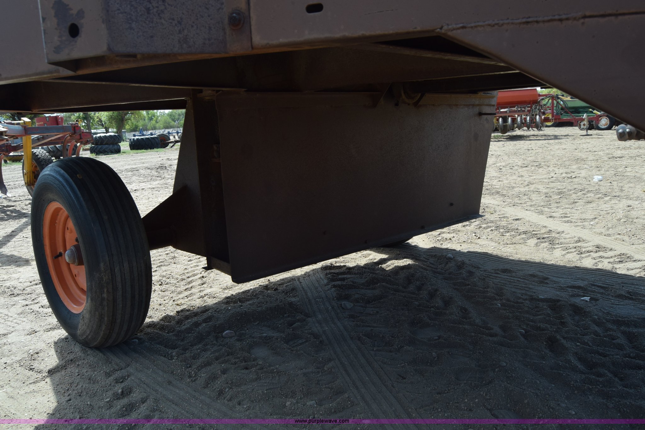 Purple Wave is selling a used Feed Mixer or Bale Processor in Kansas. This item is a Burrow Roto-Grind tub grinder with the following: 36"H x 9' diameter tub, 7.5" x 7.5" discharge chute, Hydraulic turn table, 1000 PTO, Pin hitch, 15" five lug wheels, One tire damaged, Serial 365109