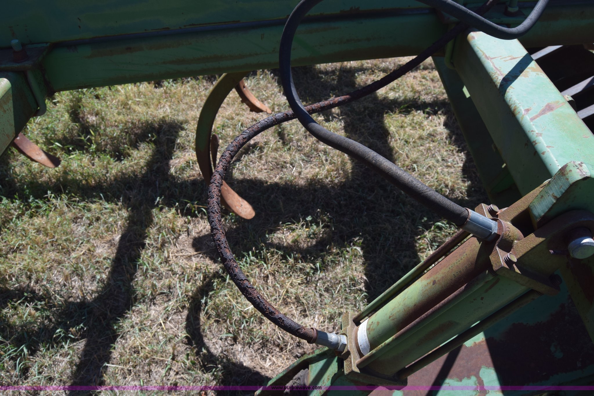 Purple Wave is selling a used Chisel in Kansas. This item is a John Deere 712 chisel plow with the following: 14'W, Hydraulic lift, Clod busters, 30" chisel shanks, 16" coulters, Pin hitch, 11L-15 tires, (2) additional chisel shanks