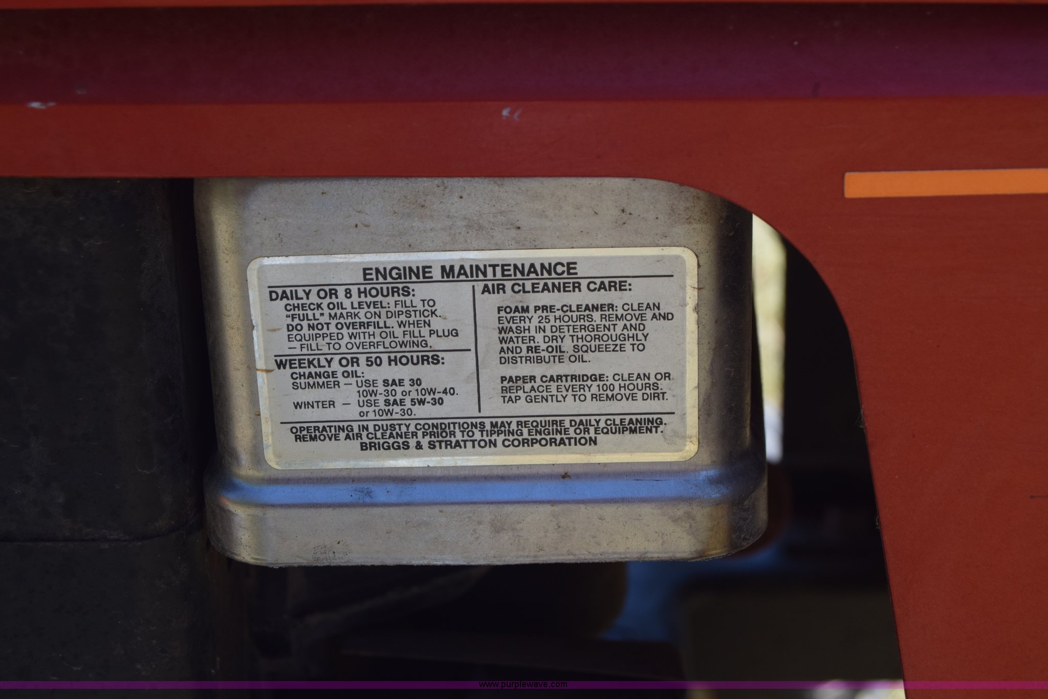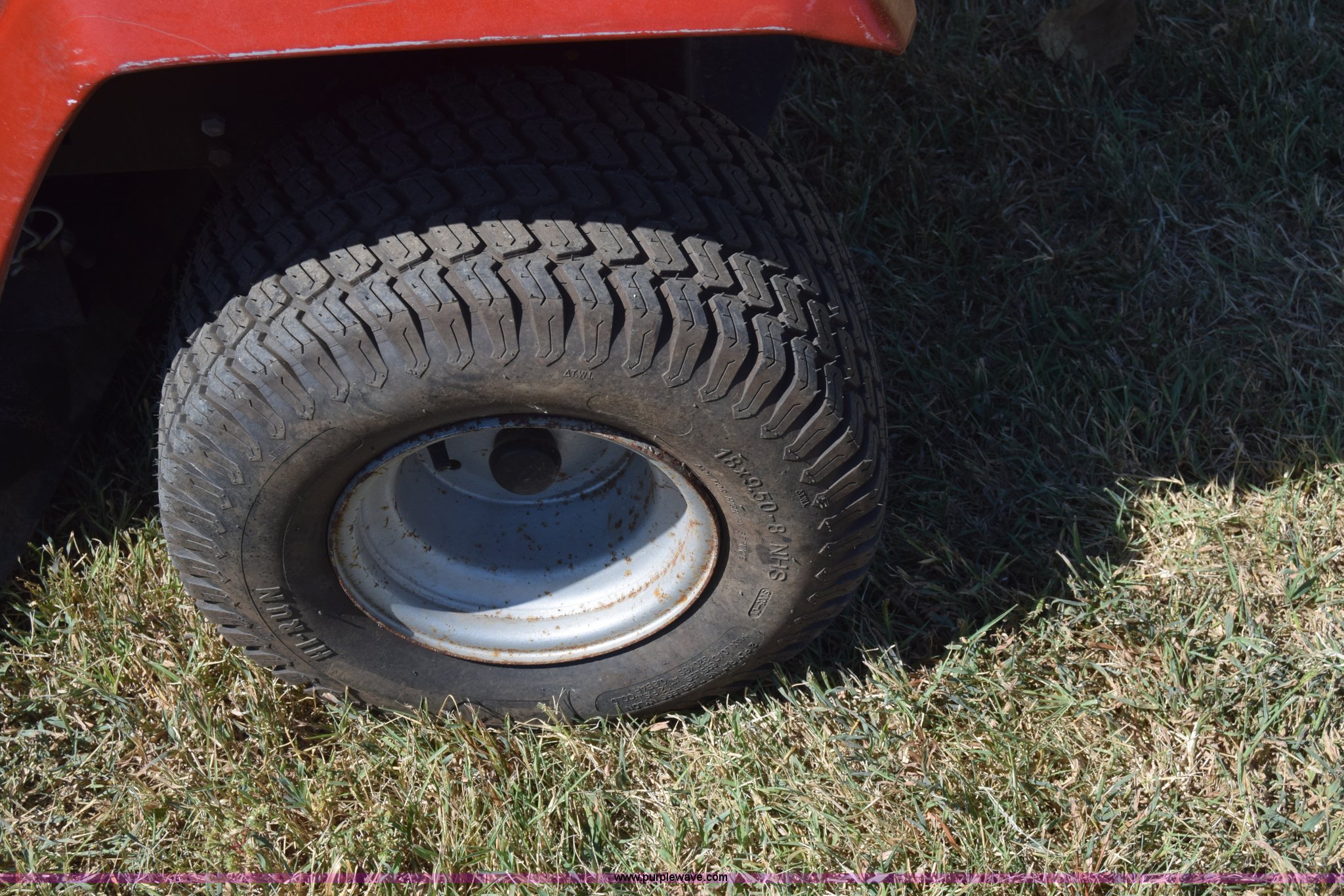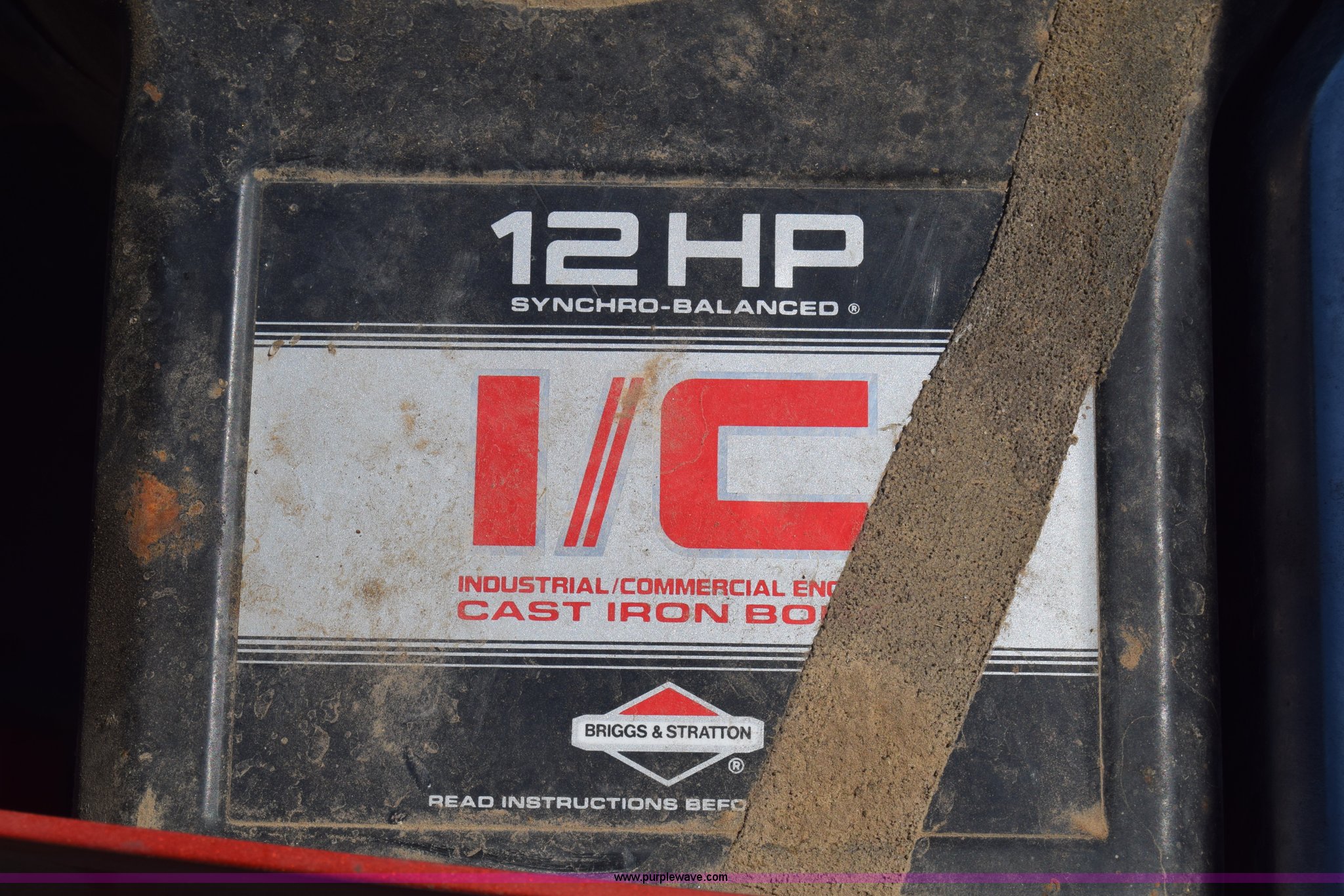 Purple Wave is selling a used Lawn Mower in Kansas. This item is a Roper LT12 lawn mower with the following: 38" cut, Briggs & Stratton gas engine, 12 HP, Six speed manual transmission, 15x6.00-6 front tires, 18.00-9.50 rear tires, (2) recently replaced tires, Recently replaced battery