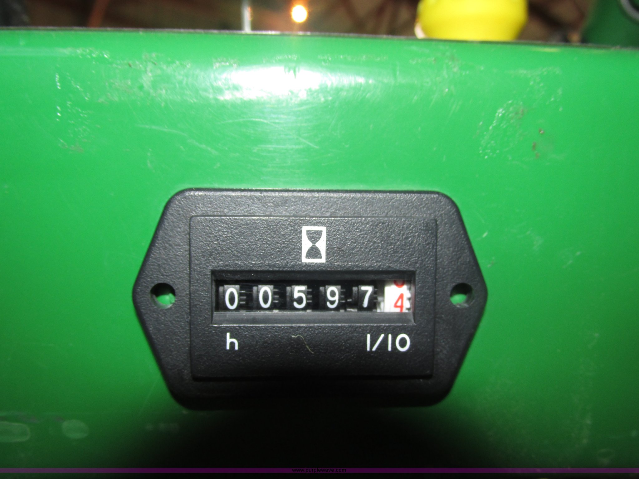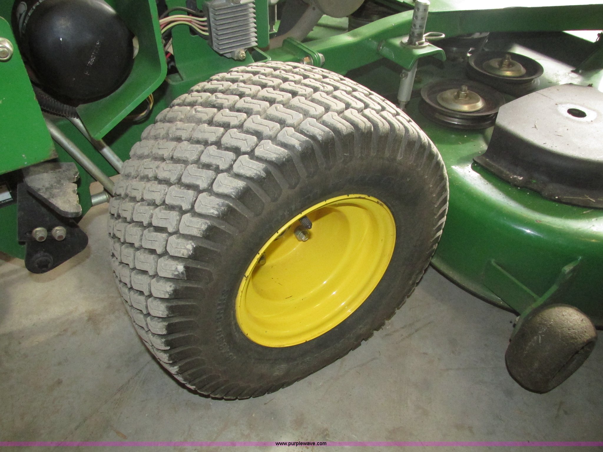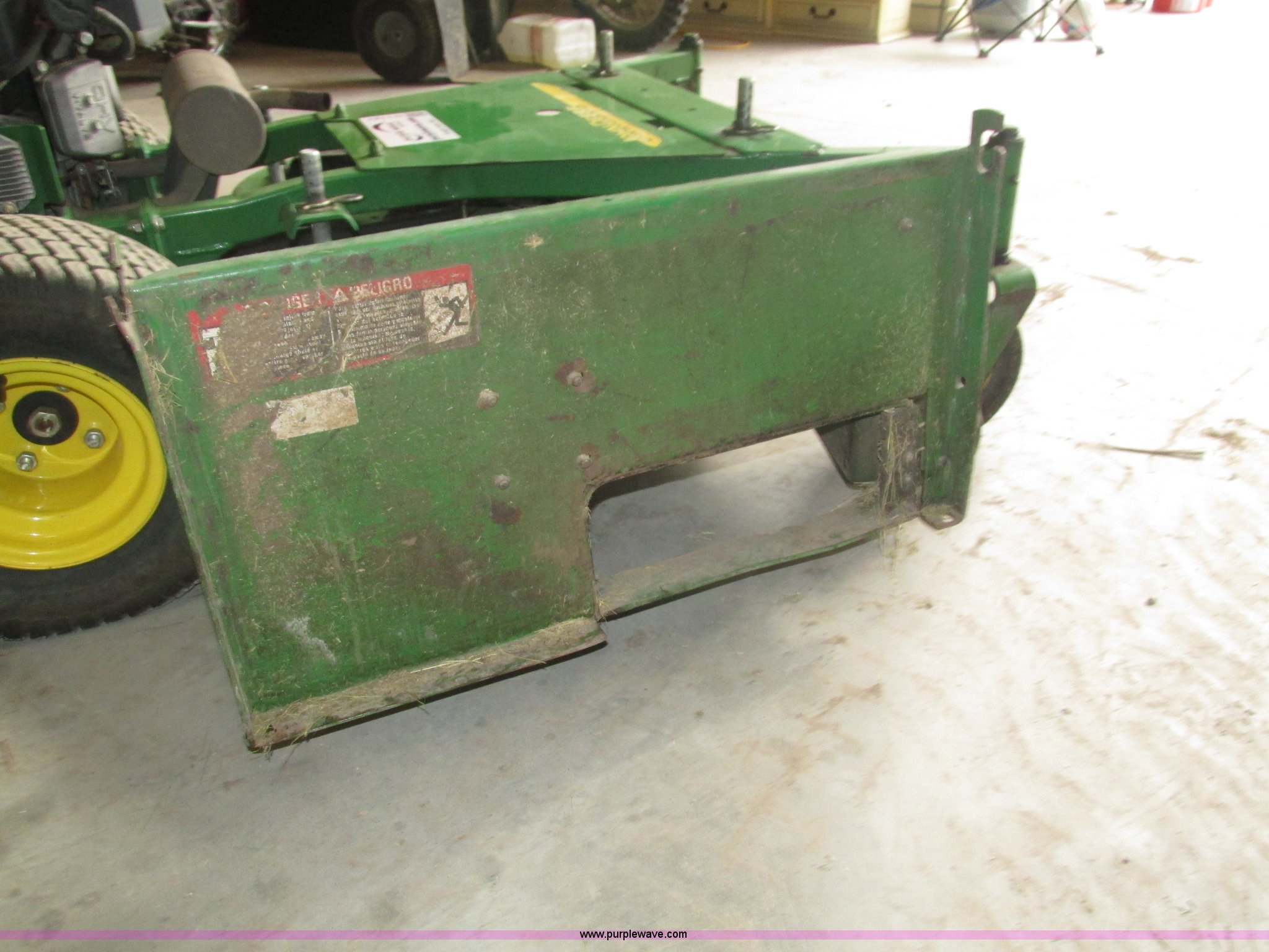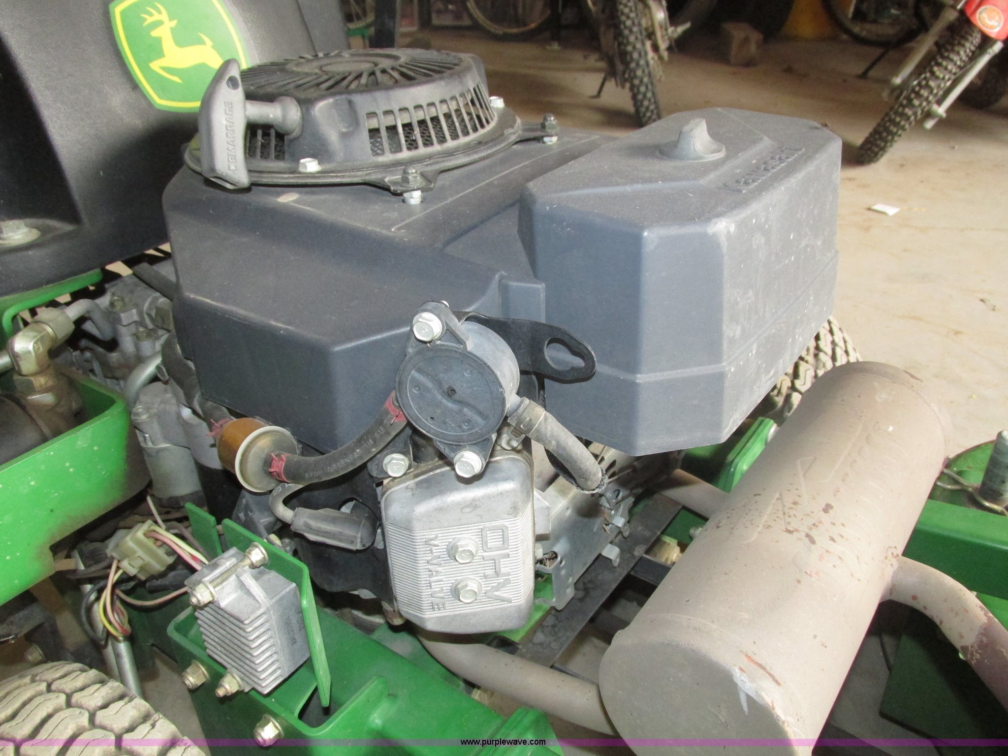 Purple Wave is selling a used Lawn Mower in Nebraska. This item is a John Deere 7 IRON II lawn mower with the following: 598 hours on meter, 54" cut, Kawasaki OHV V-twin gas engine, Electric start, Side bagger, Fuel shut-off, Parking brake, 9x3.50-4 front swivel pneumatic tires, 18x8.50-8 rear pneumatic turf tires, Unit# 1