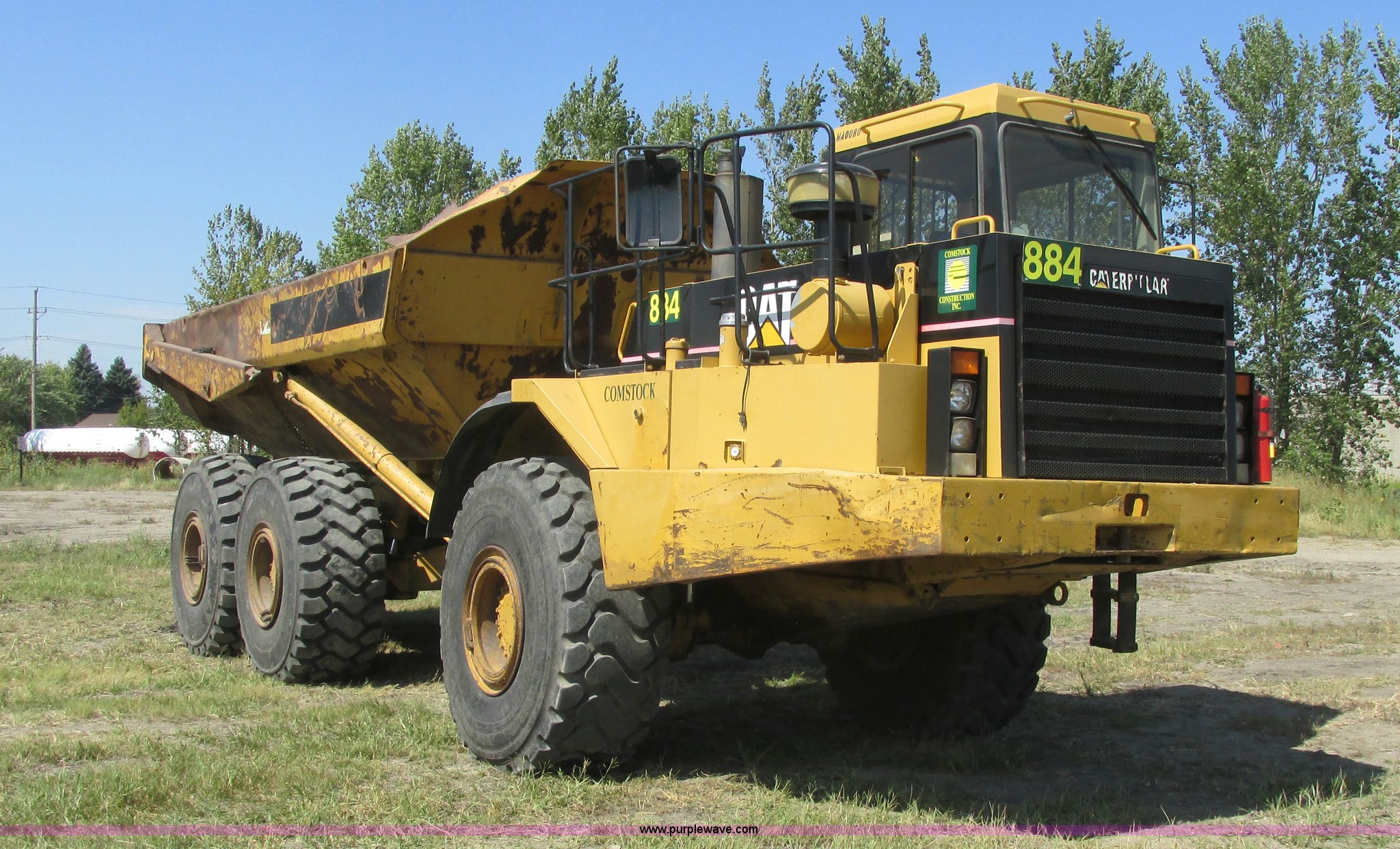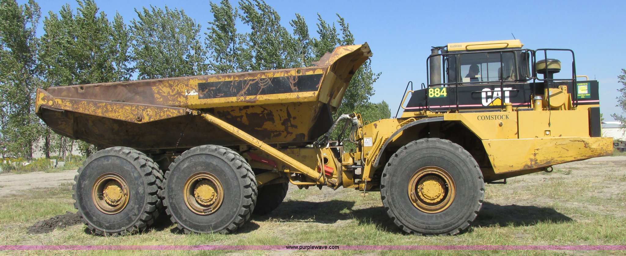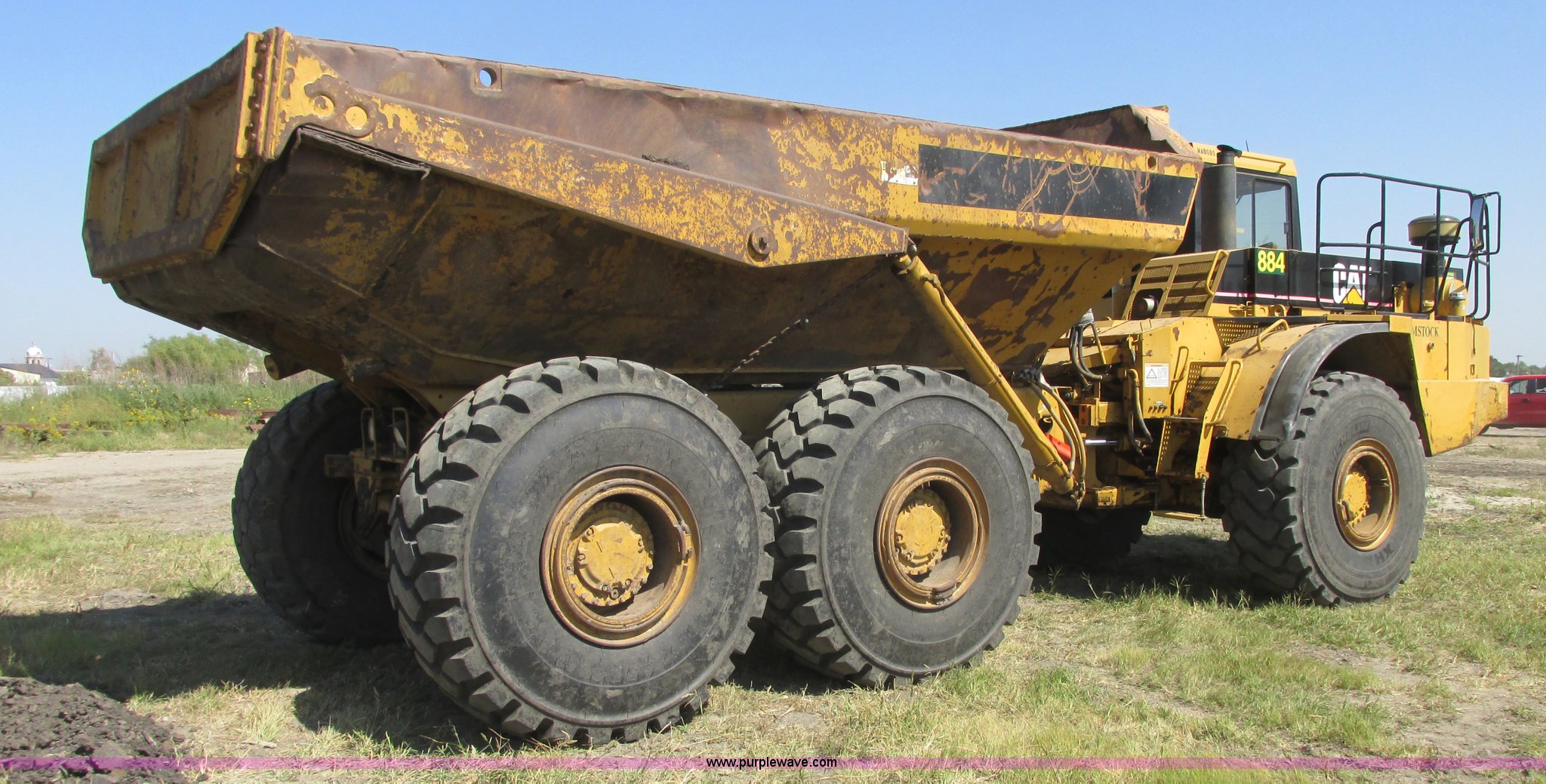1998 Caterpillar D350E haul truck. 11,529 miles on odometer, Caterpillar 3406C six cylinder diesel engine 340 HP, Serial 41Z07396, Powershift transmission 4F-1R gears, AC , AM/FM/CD, Air suspension seat, Engine brake, Block heater, Exhaust box heater, Tailgate, Air brakes, 26.5R25 tires, Service records available, View fluid analysis , Unit# 884. 9LR00511. View equipment video. Comstock Construction. 280 11th Street South. Wahpeton, ND 58075