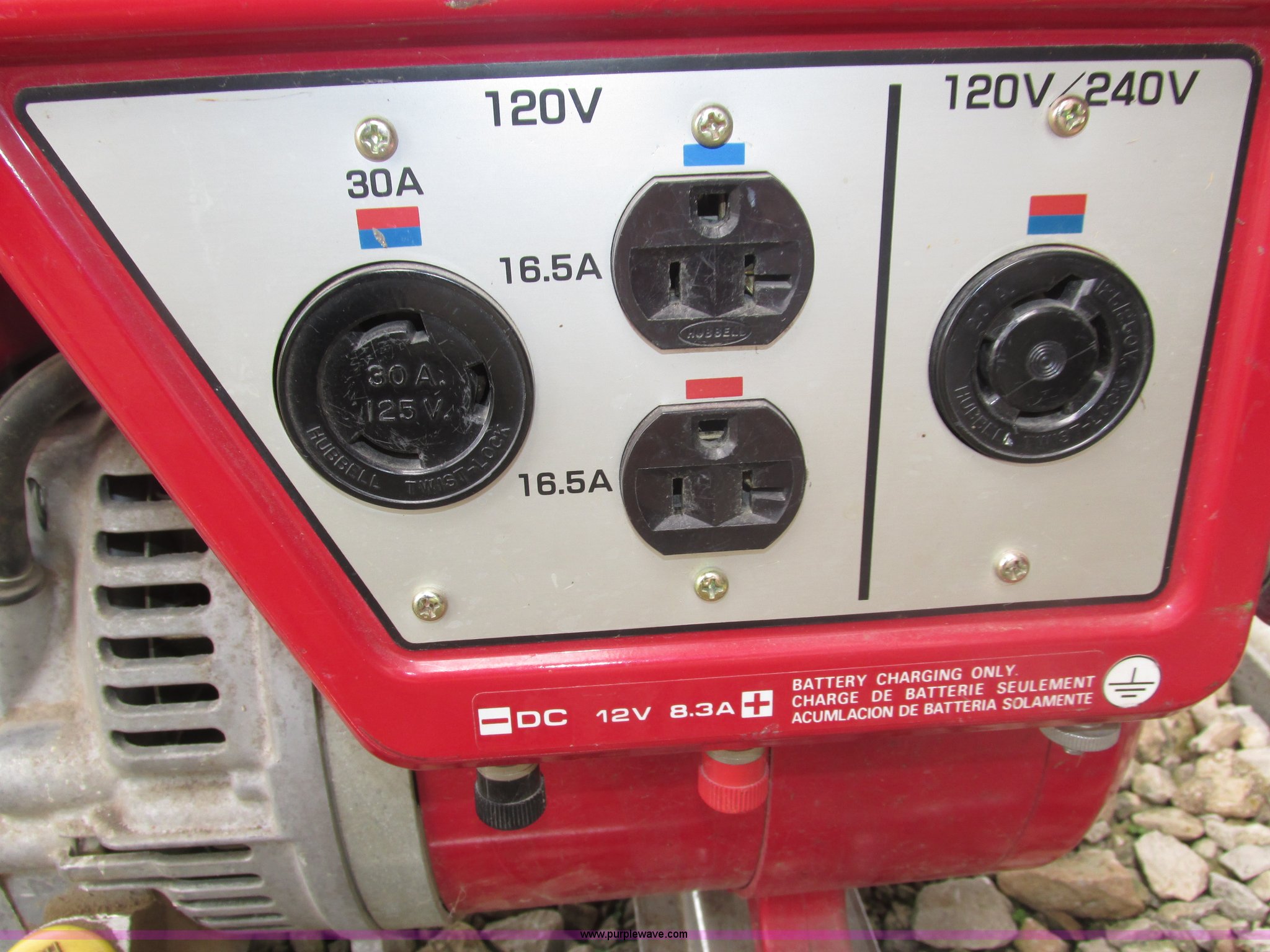 Purple Wave is selling a used Generator Set in Nebraska. This item is a Honda EM4000 generator with the following: Honda gas engine, Oil alert, 4,000 watt maximum output, Single phase, 12V DC output at 8.3 amps, (2) 120V 6.5 amps three prong outlet, 120V/240V four prong 20 amp twist lock, 120V 30 ampthree prong twist lock, Circuit breaker