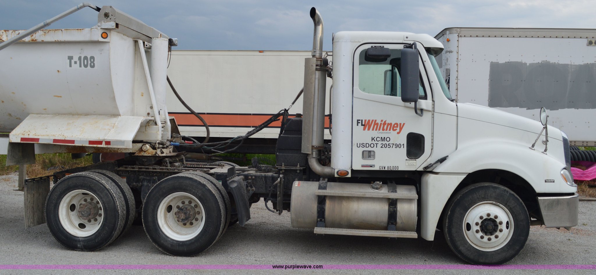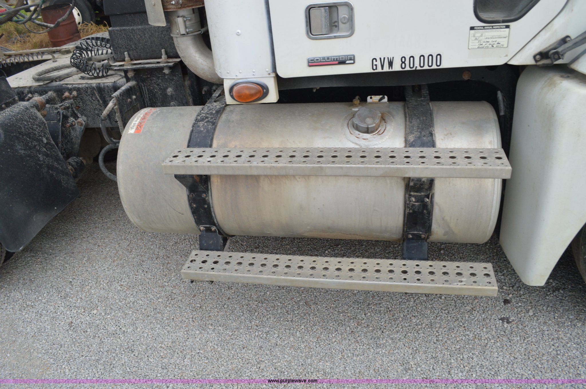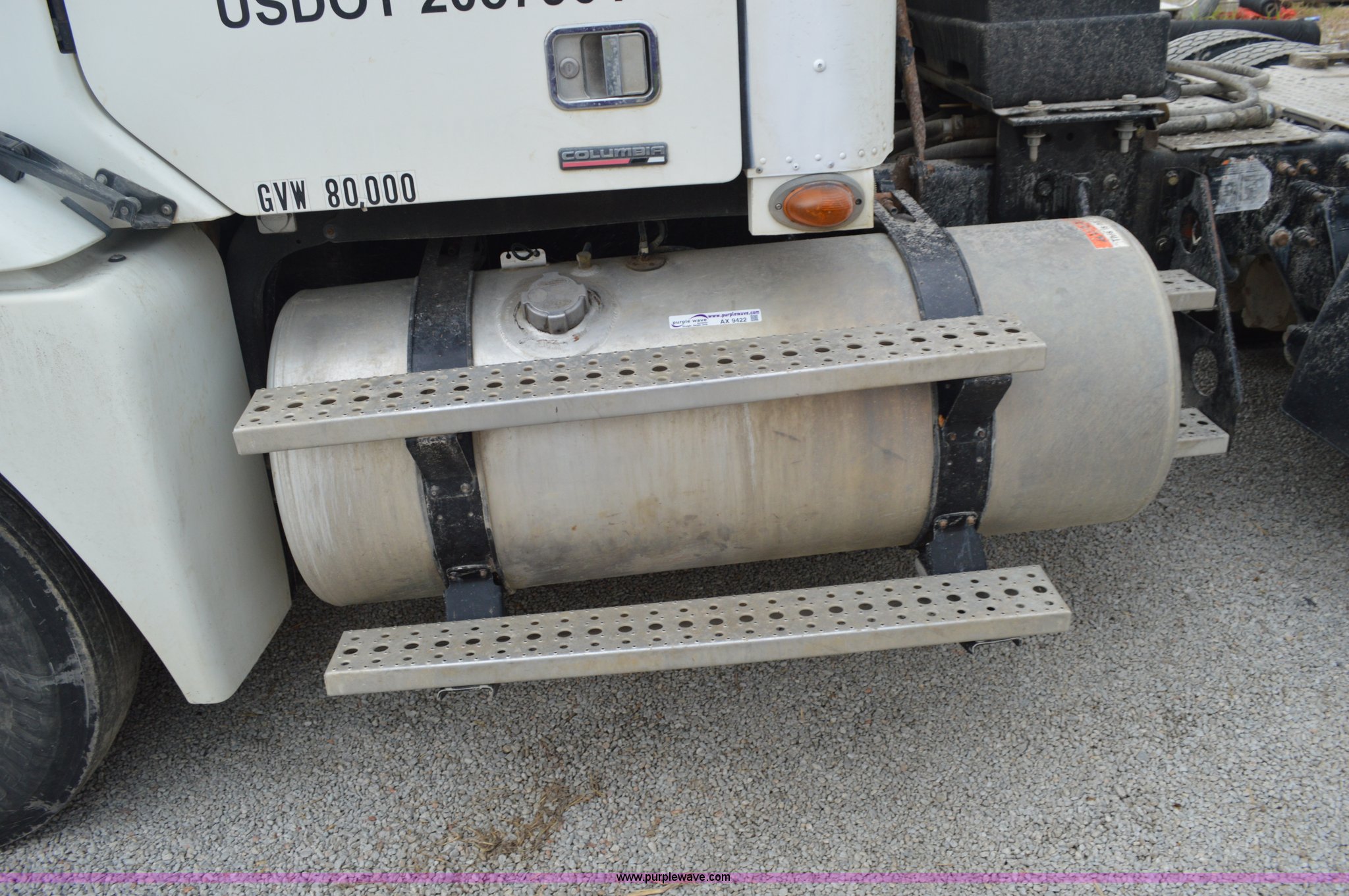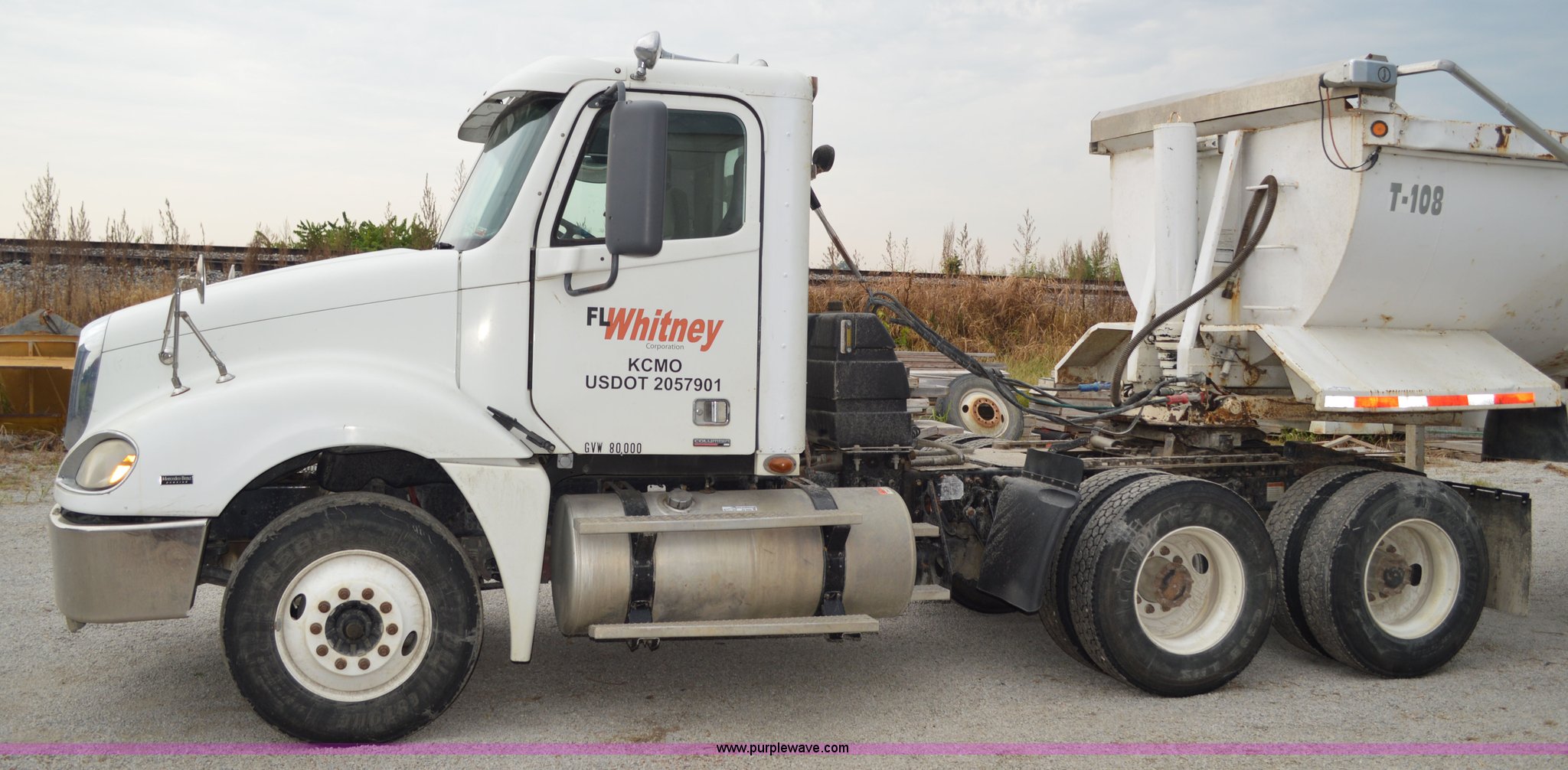 Purple Wave is selling a used Truck Tractor in Missouri. This item is a 2007 Freightliner Columbia semi truck with the following: 536,822 miles on odometer, Mercedes-Benz MBE 400 12.8L L6 diesel engine, AC and heat, AM/FM/CD, Power windows, Air suspension seat, PTO, Wet kit, Exterior visor, Aluminum air operated sliding fifth wheel plate, Single rear exhaust stack, Quarter fenders, Air suspension, Air brakes, 295/75R22.5 tires