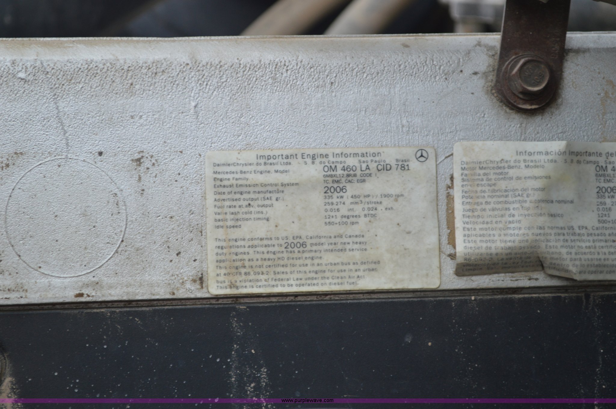 2007 Freightliner Columbia semi truck. 536,822 miles on odometer, Mercedes-Benz MBE 400 12.8L L6 diesel engine, AC and heat, AM/FM/CD, Power windows, Air suspension seat, PTO, Wet kit, Exterior visor, Aluminum air operated sliding fifth wheel plate, Single rear exhaust stack, Quarter fenders, Air suspension, Air brakes, 295/75R22.5 tires. Title has a lien that will be released following the close of the auction. Title distribution may be delayed up to 30 days from verification of funds. 1FUJA6CV87LZ29267. FL Whitney Corp.. 2215 Old Highway 210. Liberty, MO 64068