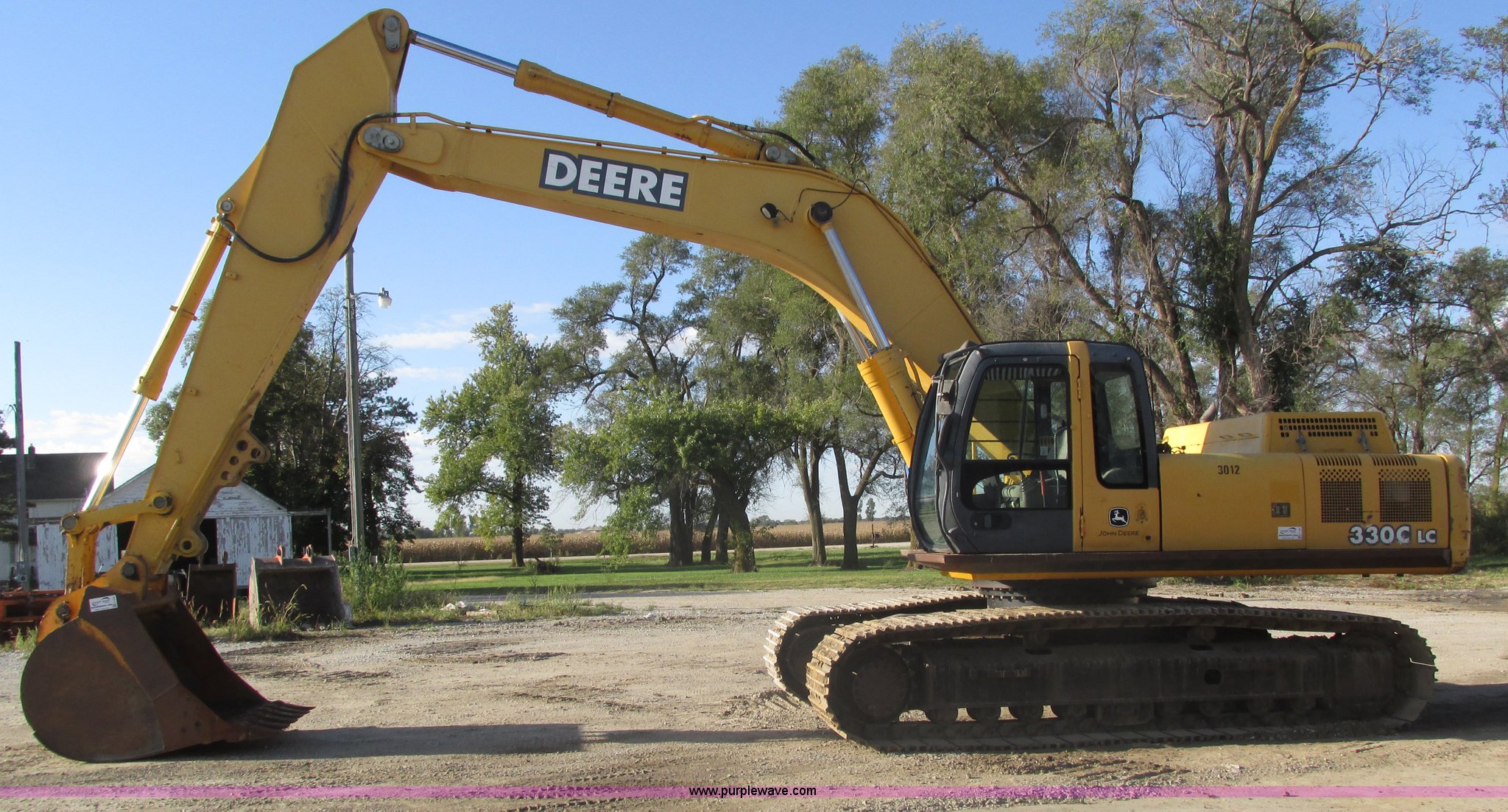 Purple Wave is selling a used Hydraulic Excavator in Nebraska. This item is a 2005 John Deere 330C LC excavator with the following: 6,348 hours on meter, Hours may vary, unit is still in use, John Deere 6081HT008 8.1L six cylinder turbo diesel engine, Two speed hydrostatic transmission, EROPS, AC and heat, AM/FM, Suspension seat, Wipers, Front work lights, Travel alarm, 13'1" stick length, 54"W bucket, (6) pin-on teeth, Welded shanks, 16.5" I.D. between ears, 23.5" center to center, Lifting eye, Manual thumb, 26'7" maximum digging depth, 38'9" maximum reach, 148 gallon fuel tank, Nine bottom rollers, 32"W steel tracks, 72,800 lbs. base operating weight, 36'3"L x 11'2"W transport dimensions, CB radio is not included, Serial FE330CX804597