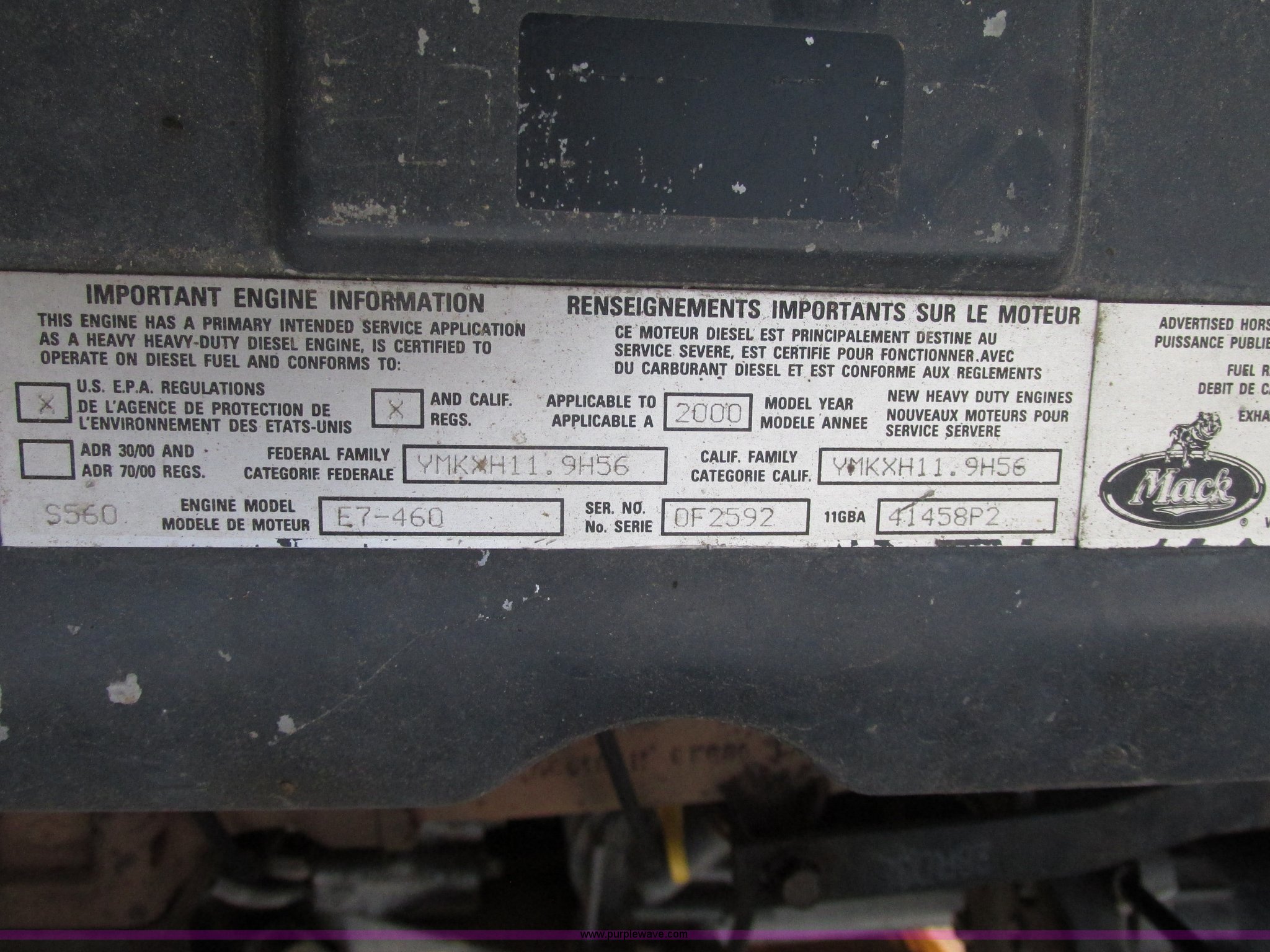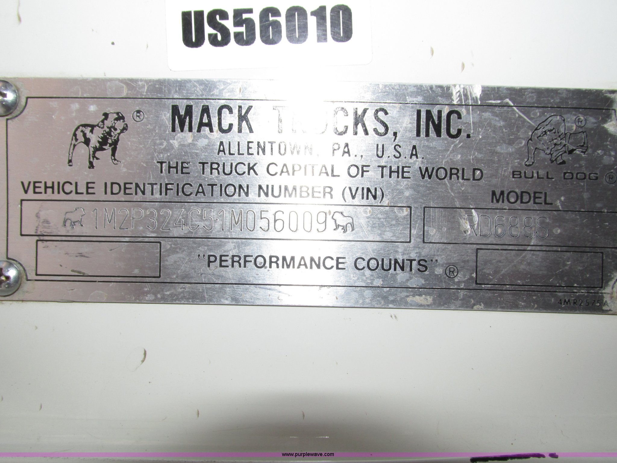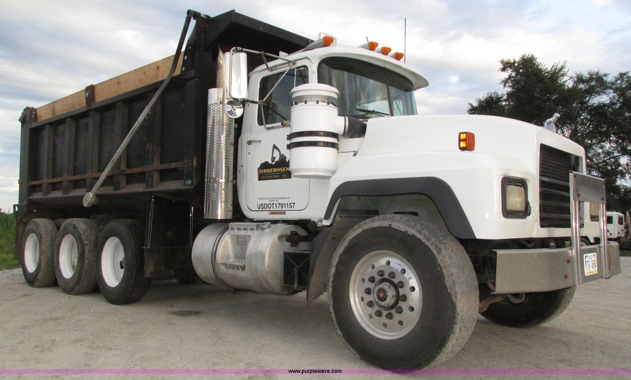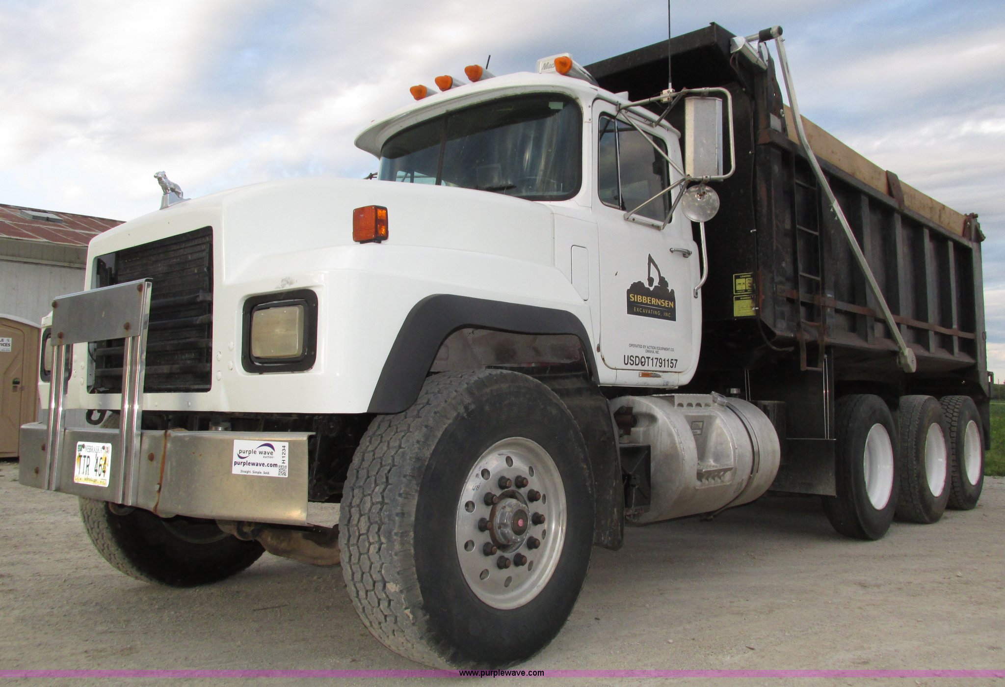 Purple Wave is selling a used Construction Dump Truck in Nebraska. This item is a 2001 Mack RD688S dump truck with the following: 277,734 miles on odometer, Mack E7 12.0L L6 turbo diesel engine, 460 HP, Serial 0F2592, Mack 13 speed manual transmission, Locking power divider, AC and heat, Cruise, Panasonic CQ-CX160U AM/FM/CD/MP3, Heated mirrors, Air suspension seat, Block heater, Muncie PTO, Exterior visor, Bibeau heated steel dump body, Model BMT-400, 16'L, 108"H from ground to top side boards, Single ram hoist, Roll-over tarp, Air operated end gate, Bed liner, Dual fuel tanks, Mud flaps, Single rear exhaust stack, Spring suspension, Air brakes, Engine brake, 228" wheelbase, 385/65R22.5 front tires, 295/75R22.5 pusher axle tires, 11R22.5 rear tires, Windshield cracked, CB radio is not included, Replaced in 2015:, Dump cylinder, bedliner, LED lights, remack 13sp trans, clutch, air compressor, brakes/hardware, tag axle air bags, aero tarp, pintle hitch, wheel bearings/seals, Unit# 1209