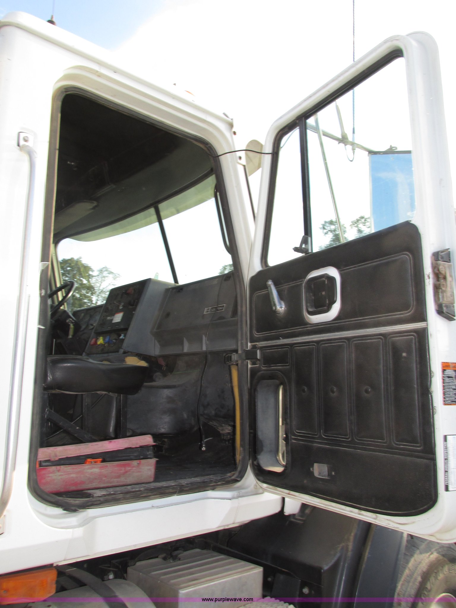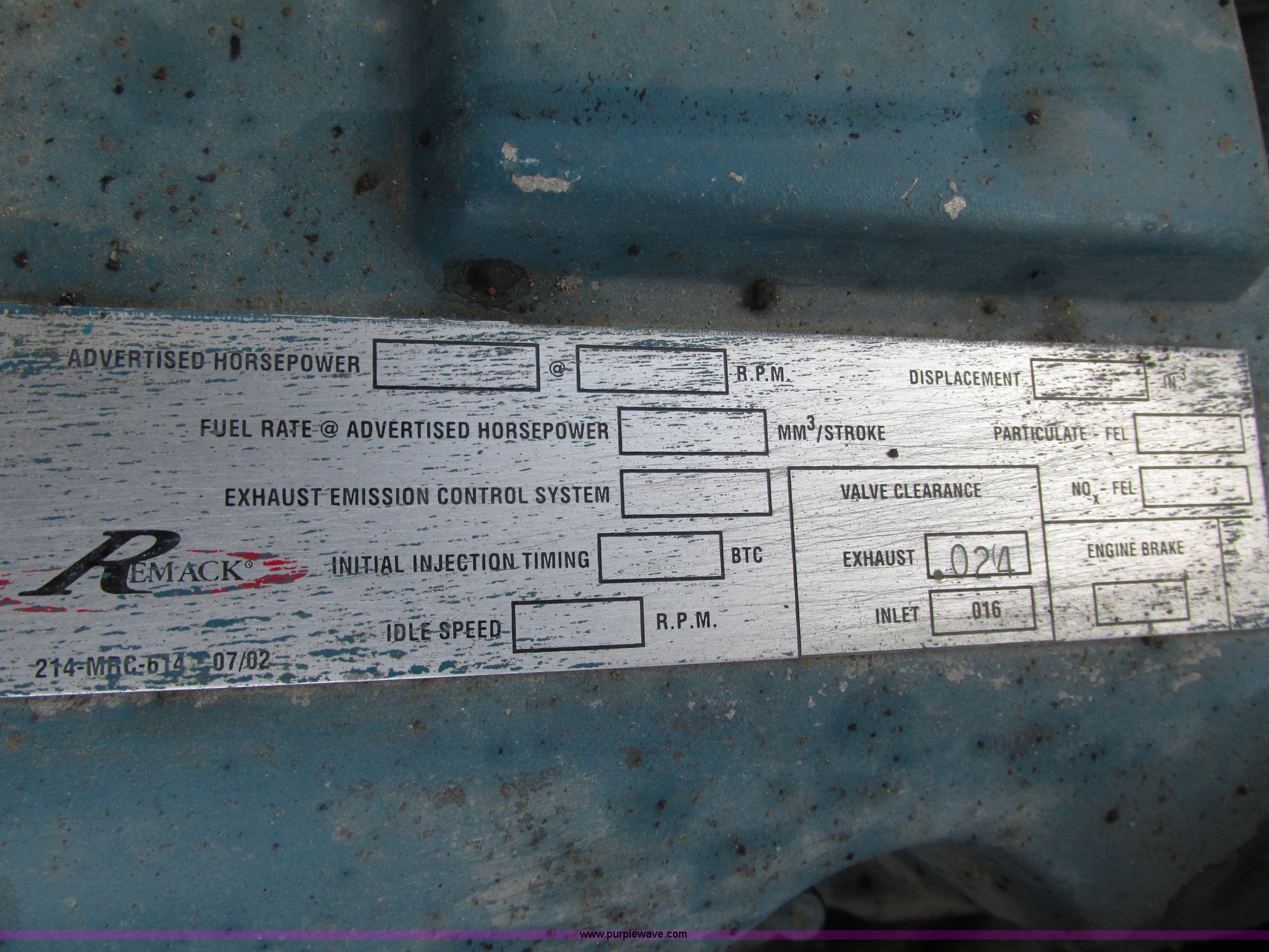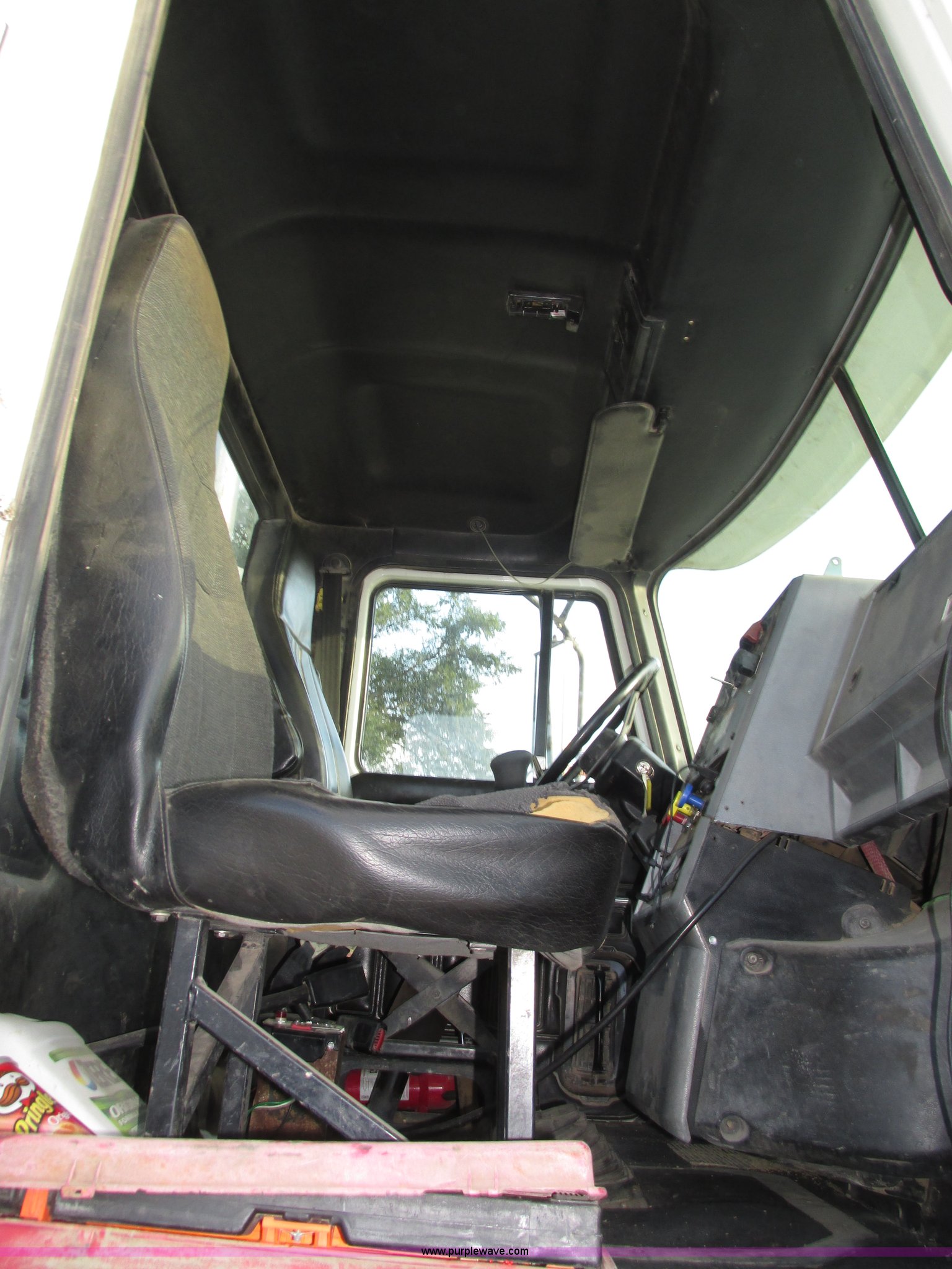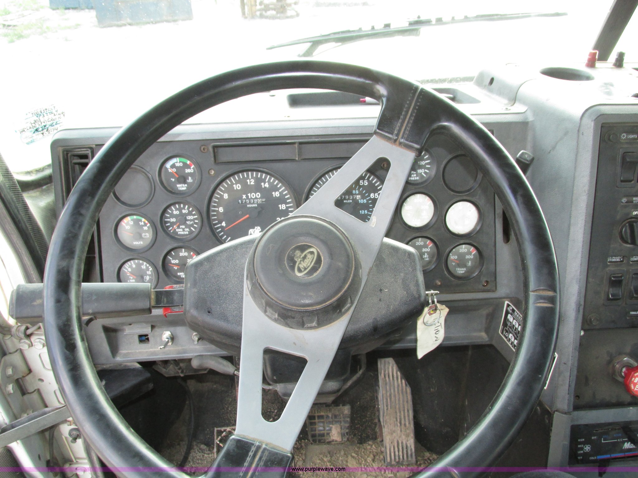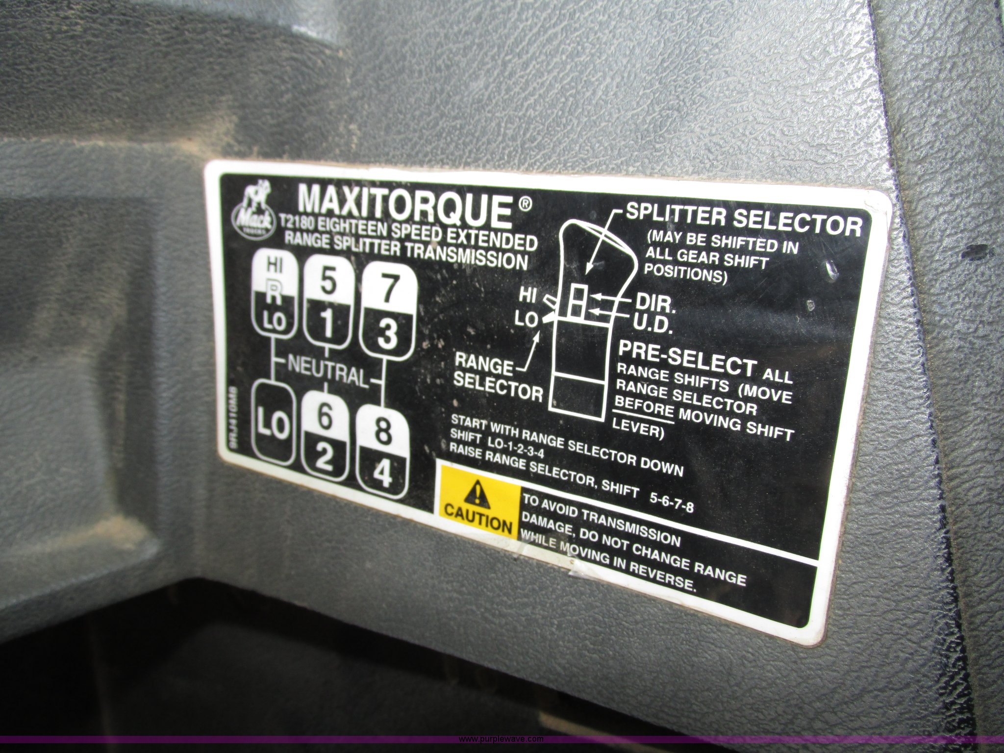 Purple Wave is selling a used Truck Tractor in Nebraska. This item is a 2001 Mack CL713 semi truck with the following: 387,937 miles on odometer, 17,532 hours on meter, Miles and hours may vary, vehicle is still in use, Mack E7 12.0L L6 diesel engine, Remanufactured engine installed 2013, Serial BRF3689, Maxitorque T2180 18 speed manual transmission, Locking power divider, AC and heat, Tilt, Cruise, Panasonic 2100B AM/FM/cassette/weatherband, Heated mirrors, Air ride cab, Block heater, Exterior visor, Muncie PTO, Wet kit, Dump valves, Headache rack, Window, Chain hanger, Storage, Lights, Air operated sliding fifth wheel plate, Dual rear exhaust stacks, Dual fuel tanks, Watson AC-220110-10 pusher axle, Serial 00-10-1-306, Air suspension, Air brakes, Engine brake, Aluminum front wheels, 385/65R22.5 front tires, 285/75R24.5 pusher axle tires, 11R24.5 rear tires, 2013 Remack E7460, Wet kit installed 2015, Interior/exterior cosmetic damage, Broken hi/low trans switch, high side only, Unit# 1212