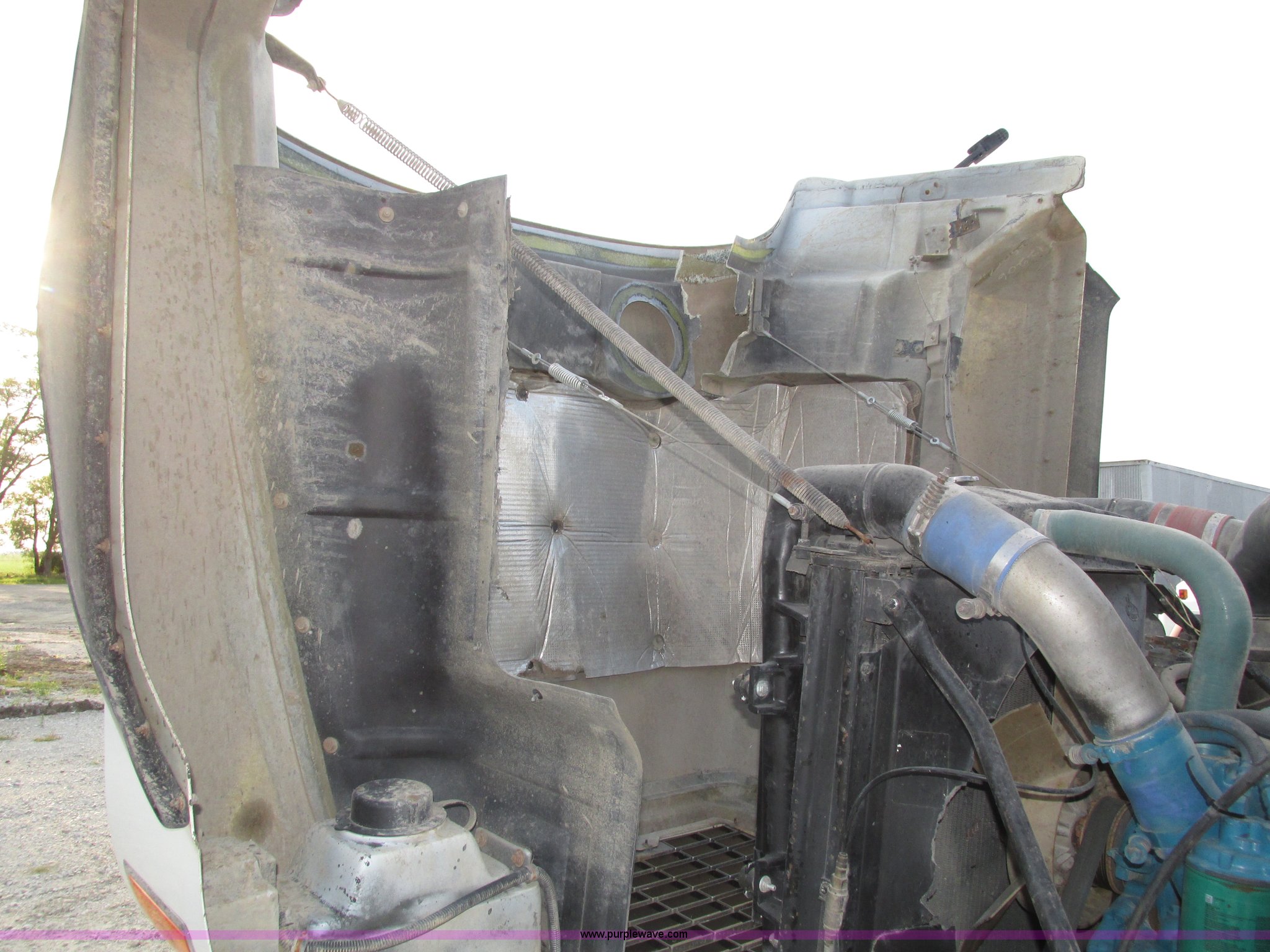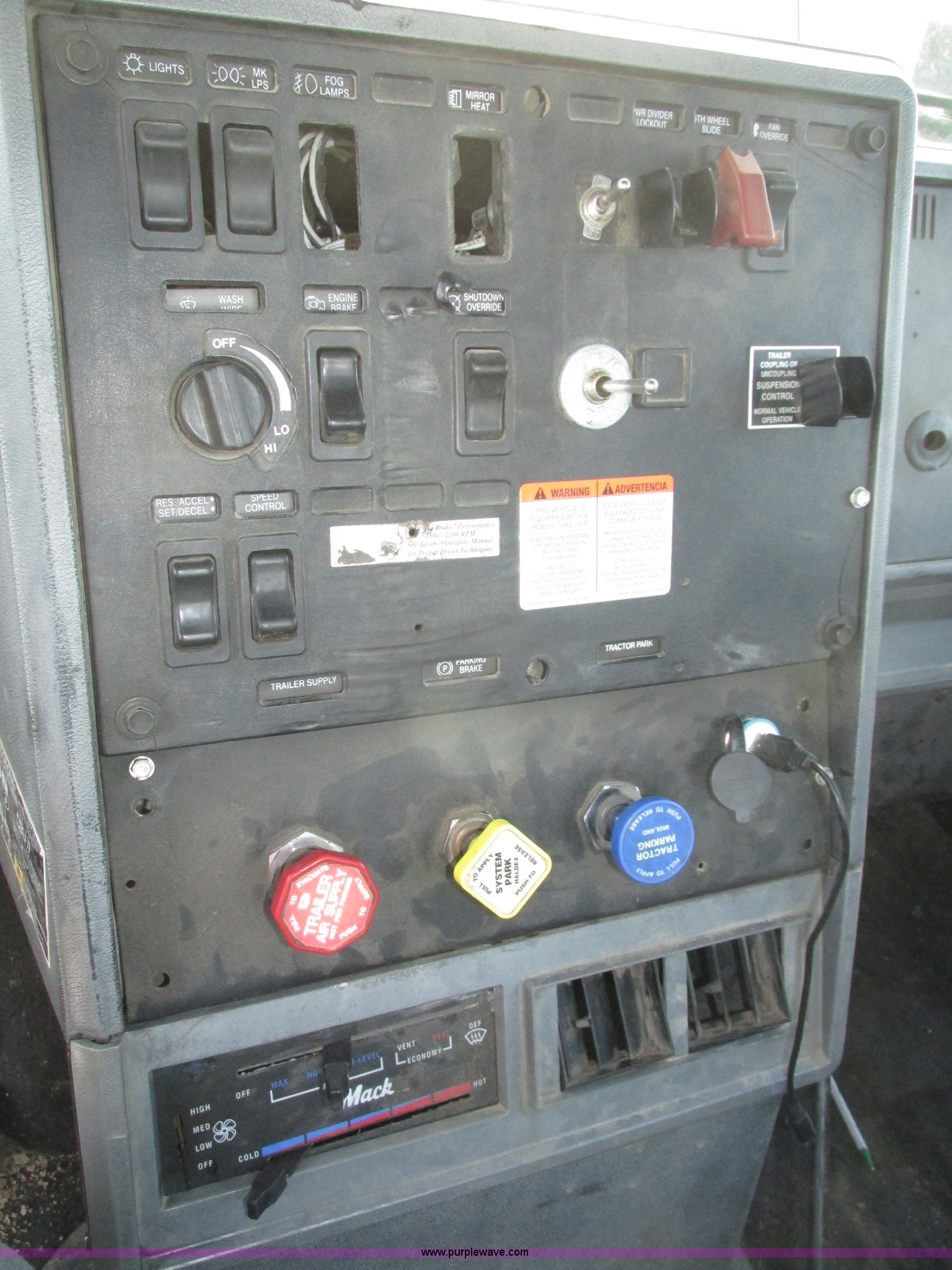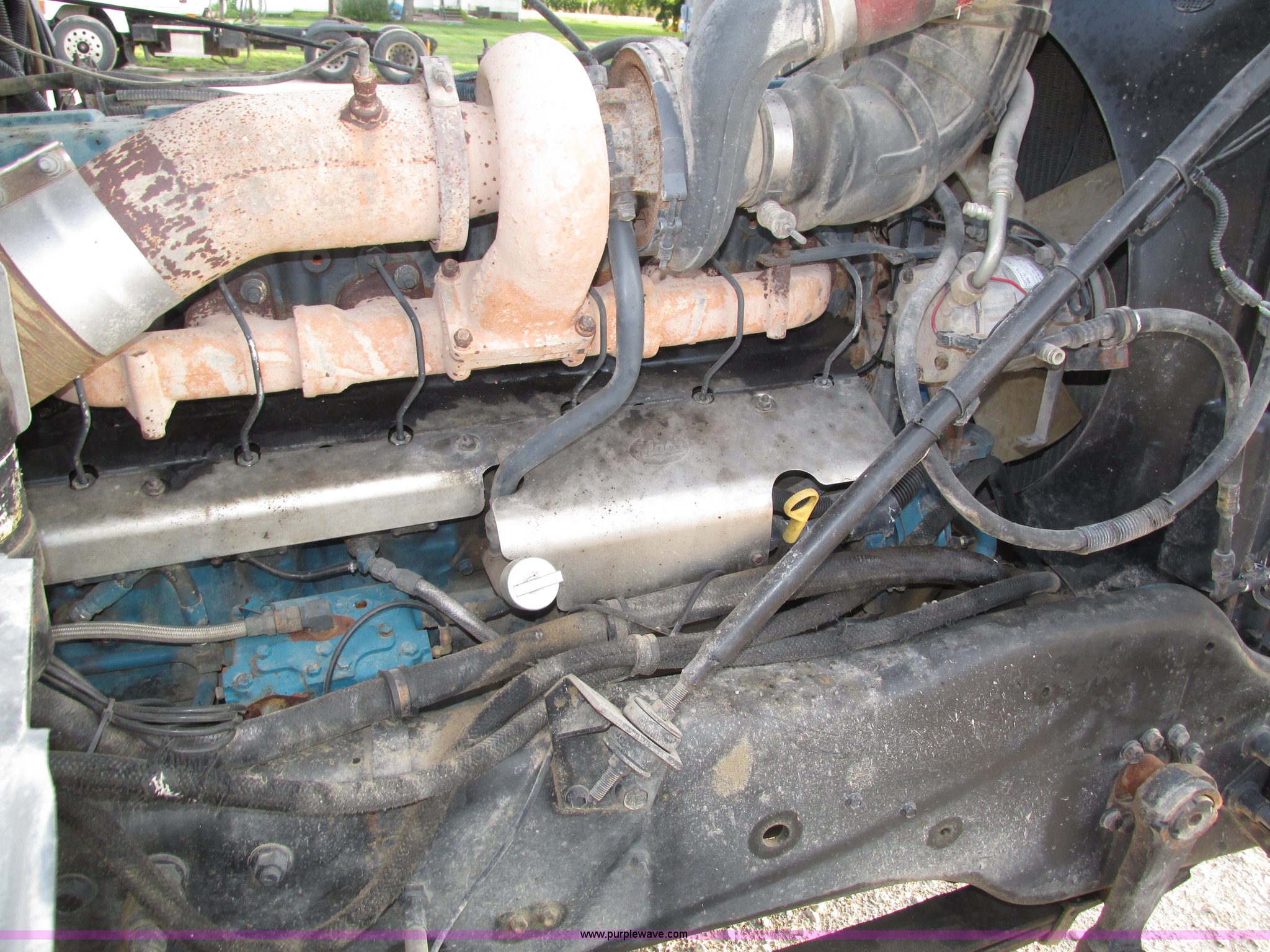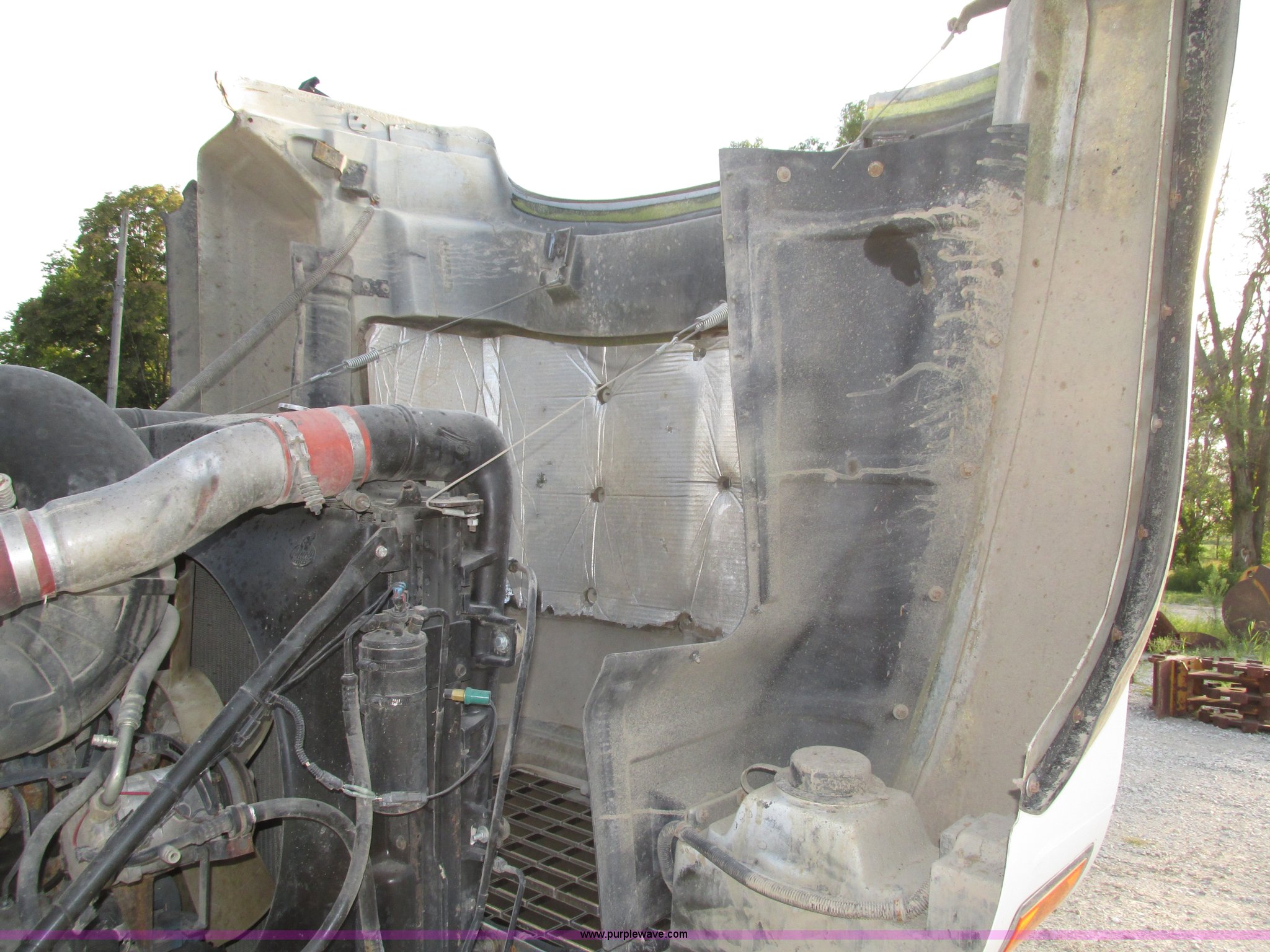 Purple Wave is selling a used Truck Tractor in Nebraska. This item is a 2001 Mack CL713 semi truck with the following: 387,937 miles on odometer, 17,532 hours on meter, Miles and hours may vary, vehicle is still in use, Mack E7 12.0L L6 diesel engine, Remanufactured engine installed 2013, Serial BRF3689, Maxitorque T2180 18 speed manual transmission, Locking power divider, AC and heat, Tilt, Cruise, Panasonic 2100B AM/FM/cassette/weatherband, Heated mirrors, Air ride cab, Block heater, Exterior visor, Muncie PTO, Wet kit, Dump valves, Headache rack, Window, Chain hanger, Storage, Lights, Air operated sliding fifth wheel plate, Dual rear exhaust stacks, Dual fuel tanks, Watson AC-220110-10 pusher axle, Serial 00-10-1-306, Air suspension, Air brakes, Engine brake, Aluminum front wheels, 385/65R22.5 front tires, 285/75R24.5 pusher axle tires, 11R24.5 rear tires, 2013 Remack E7460, Wet kit installed 2015, Interior/exterior cosmetic damage, Broken hi/low trans switch, high side only, Unit# 1212