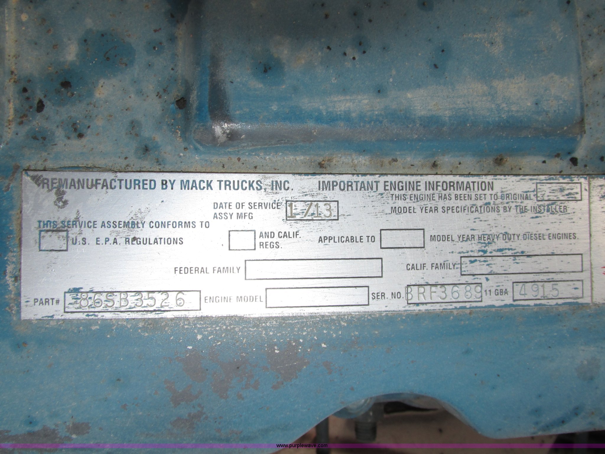 - Remanufactured engine installed 2013