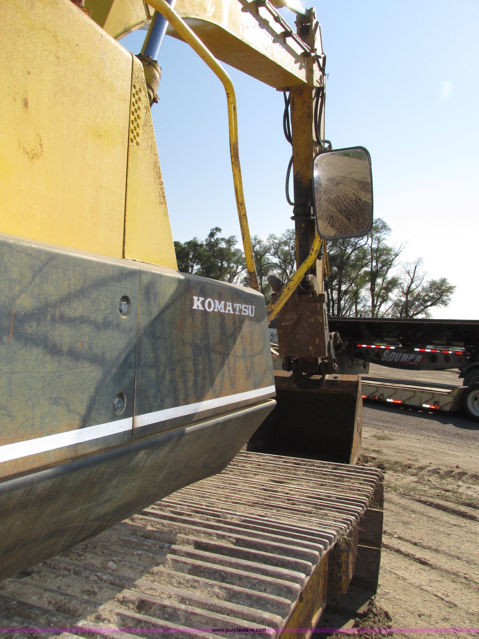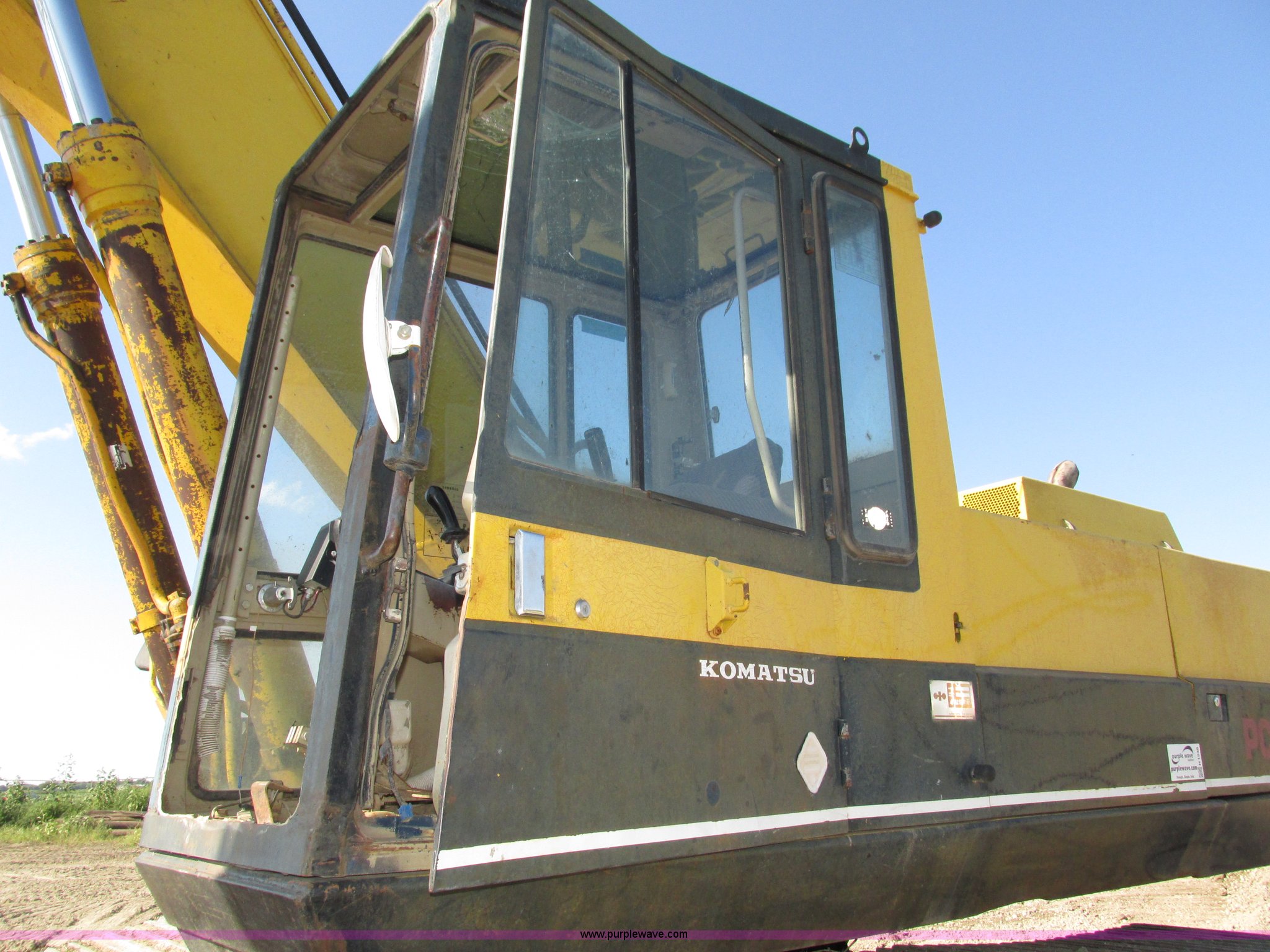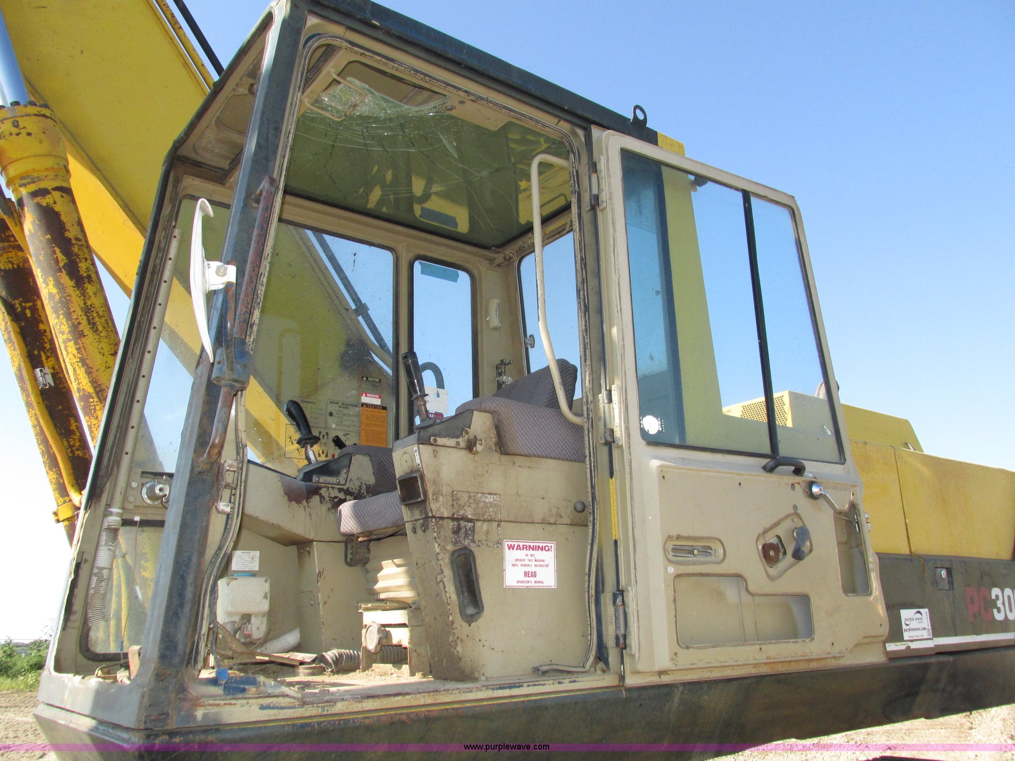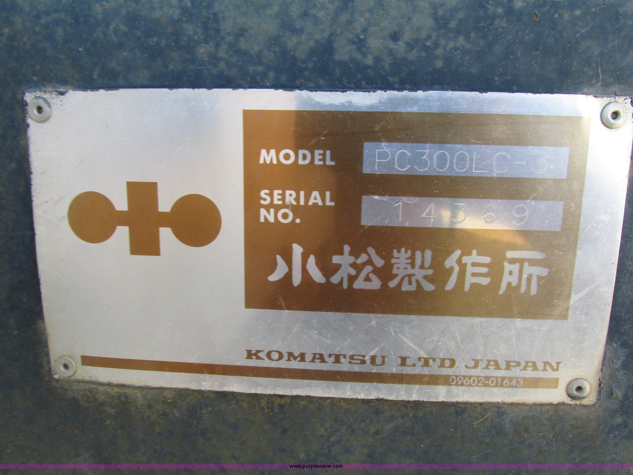 Purple Wave is selling a used Hydraulic Excavator in Nebraska. This item is a 1989 Komatsu PC300LC-3 excavator with the following: 22,722 hours on meter, Komatsu S6D125-1 six cylinder turbo diesel engine, Serial 29741, Two speed hydrostatic transmission, EROPS, Suspension seat, Front work lights, Standard boom, Approximately 14'8" stick length, CF 60"W bucket, (7) bolt-on teeth, Amulet hydraulic thumb, Two way auxiliary hydraulics, Eight bottom rollers, 34""W steel triple grouser track pads, Sticks on pedals missing, CB radio is not included, Left side mirror broken, Windshield broken, Serial 14369