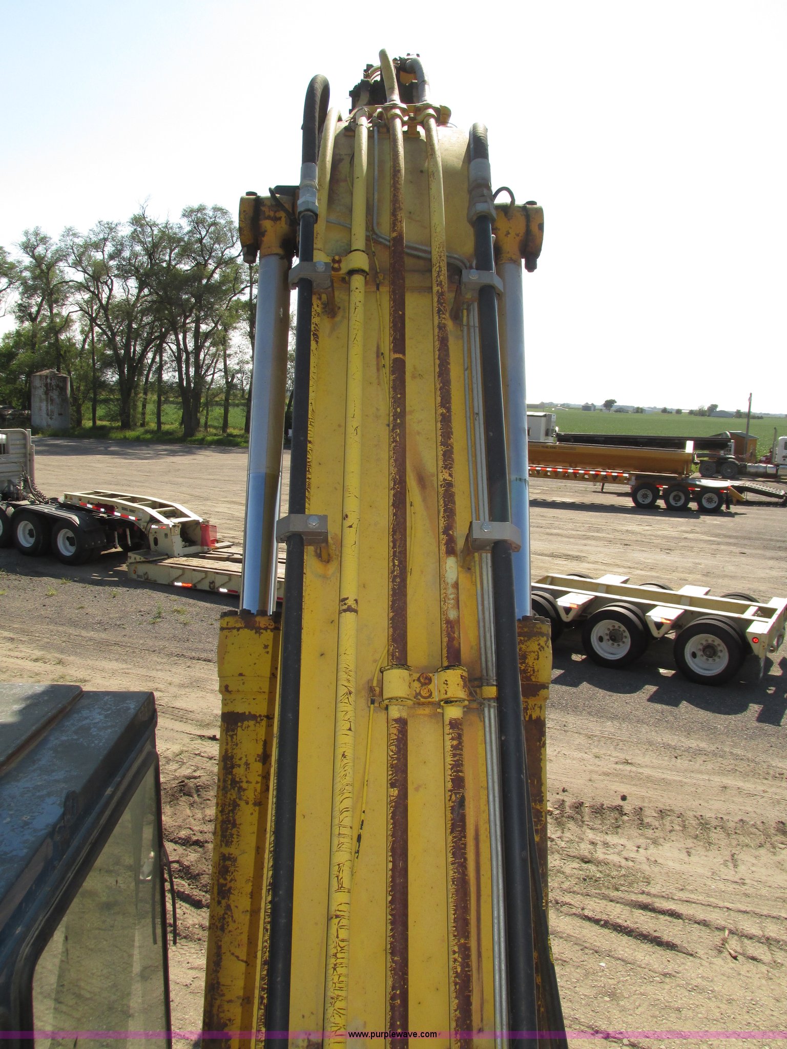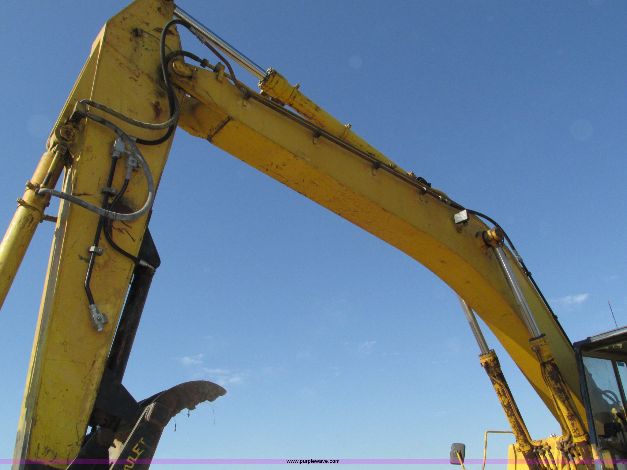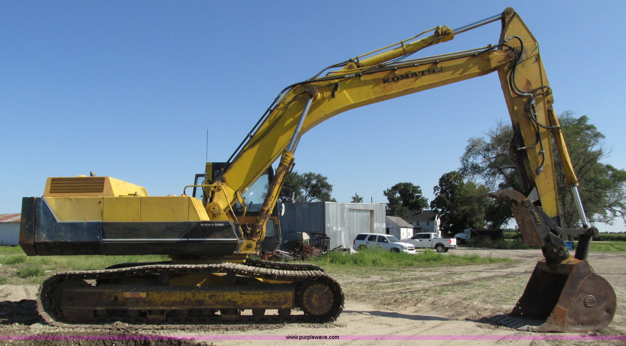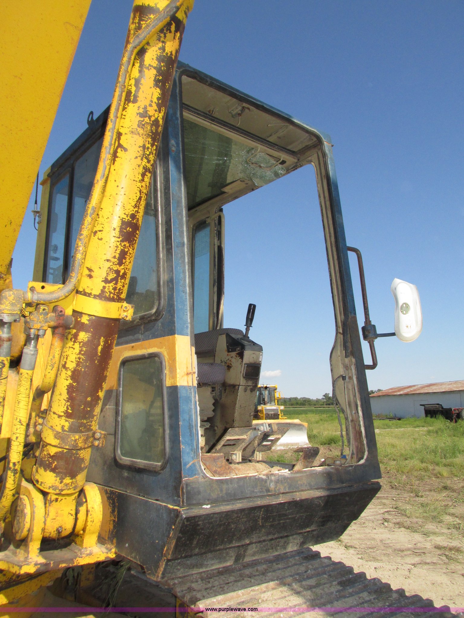 Purple Wave is selling a used Hydraulic Excavator in Nebraska. This item is a 1989 Komatsu PC300LC-3 excavator with the following: 22,722 hours on meter, Komatsu S6D125-1 six cylinder turbo diesel engine, Serial 29741, Two speed hydrostatic transmission, EROPS, Suspension seat, Front work lights, Standard boom, Approximately 14'8" stick length, CF 60"W bucket, (7) bolt-on teeth, Amulet hydraulic thumb, Two way auxiliary hydraulics, Eight bottom rollers, 34""W steel triple grouser track pads, Sticks on pedals missing, CB radio is not included, Left side mirror broken, Windshield broken, Serial 14369