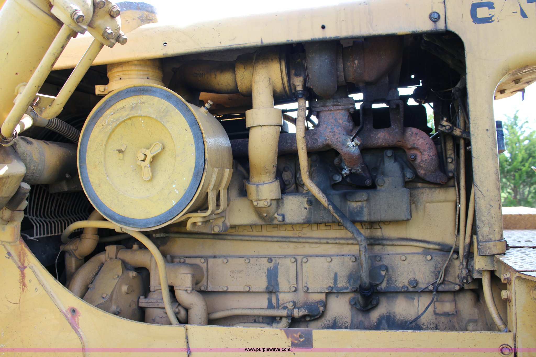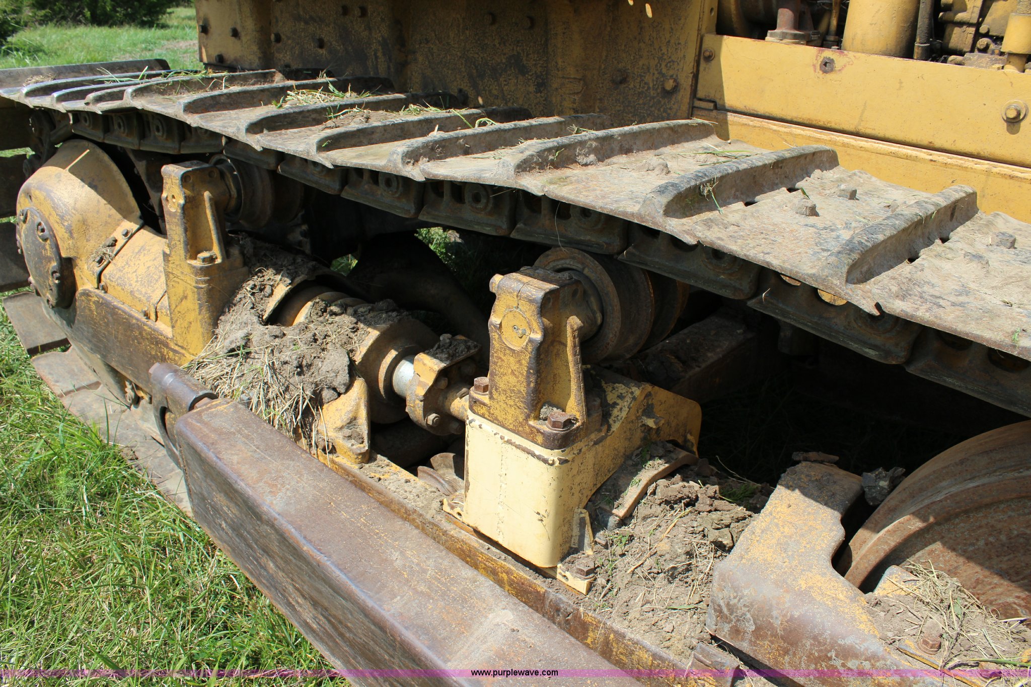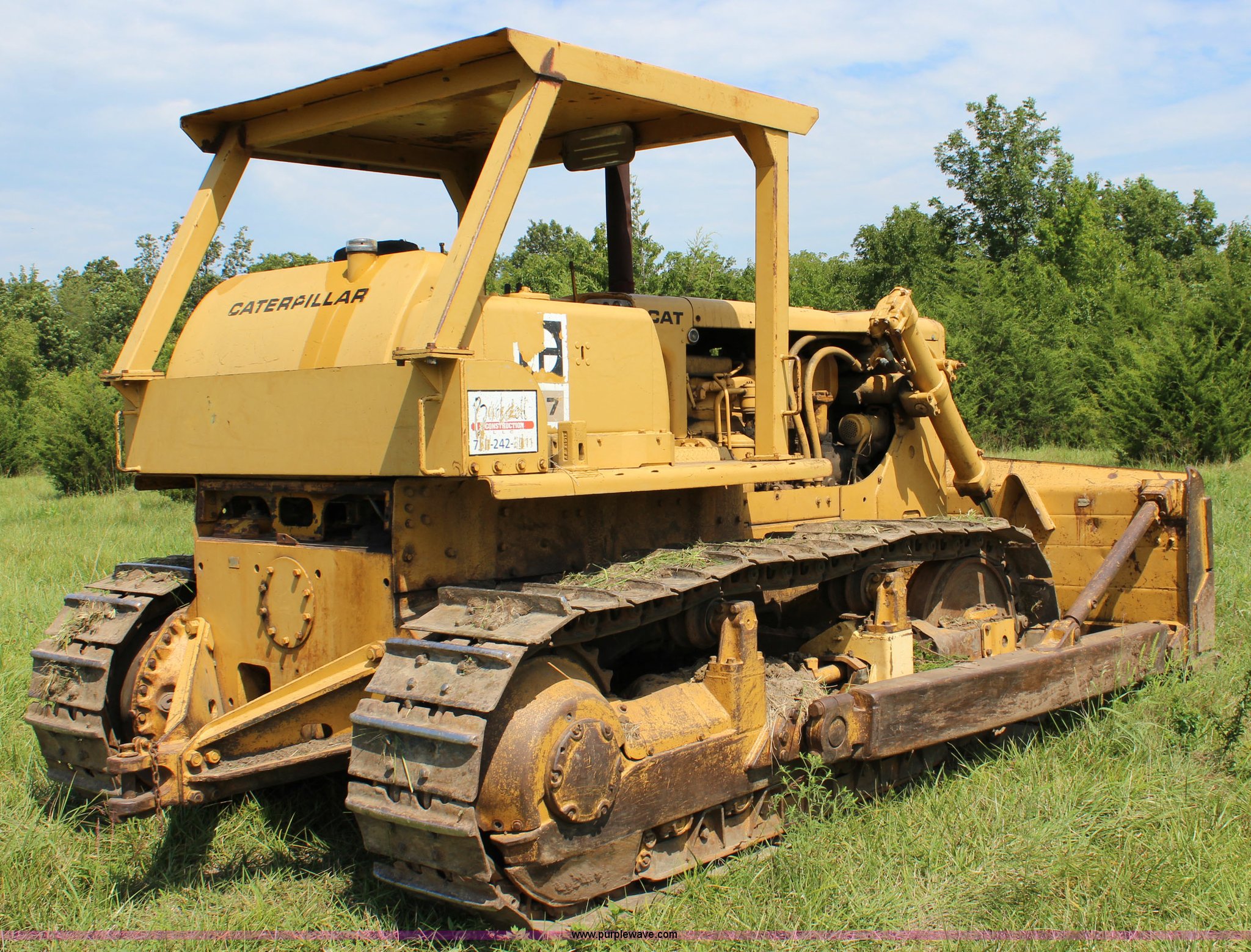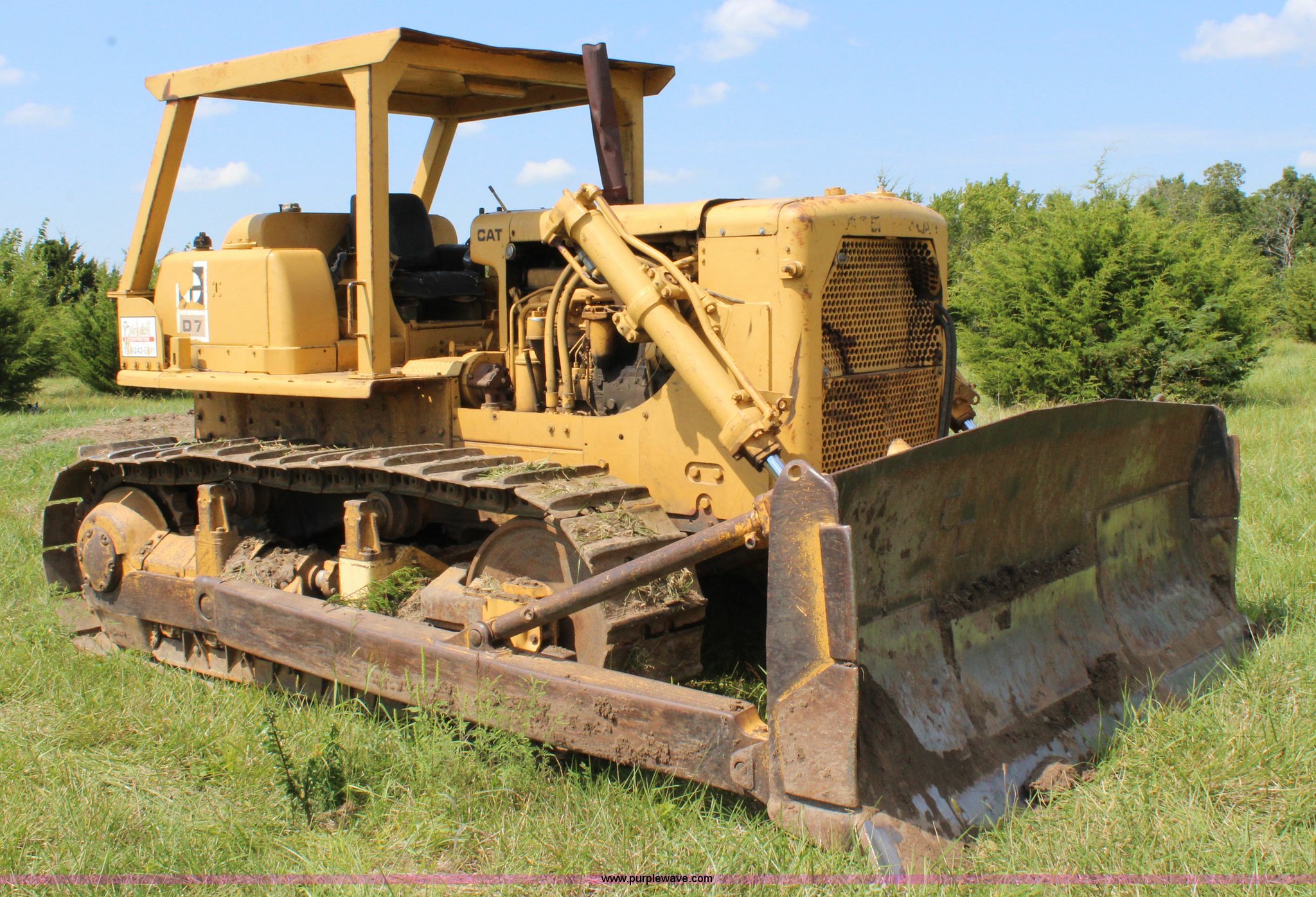 Purple Wave is selling a used Crawler Dozer in Kansas. This item is a 1968 Caterpillar D7E dozer with the following: 207 hours on meter, Caterpillar four cylinder turbo diesel engine, 180 HP, Powershift transmission, 3F-3R gears, Canopy, Clutch brake steering, 12'W straight dozer blade, Single tilt, Rear draw bar, Six bottom rollers, 22"W single grouser track pads, 56,669 lbs. base operating weight, Carrier roller needs replaced, Serial 48A11594