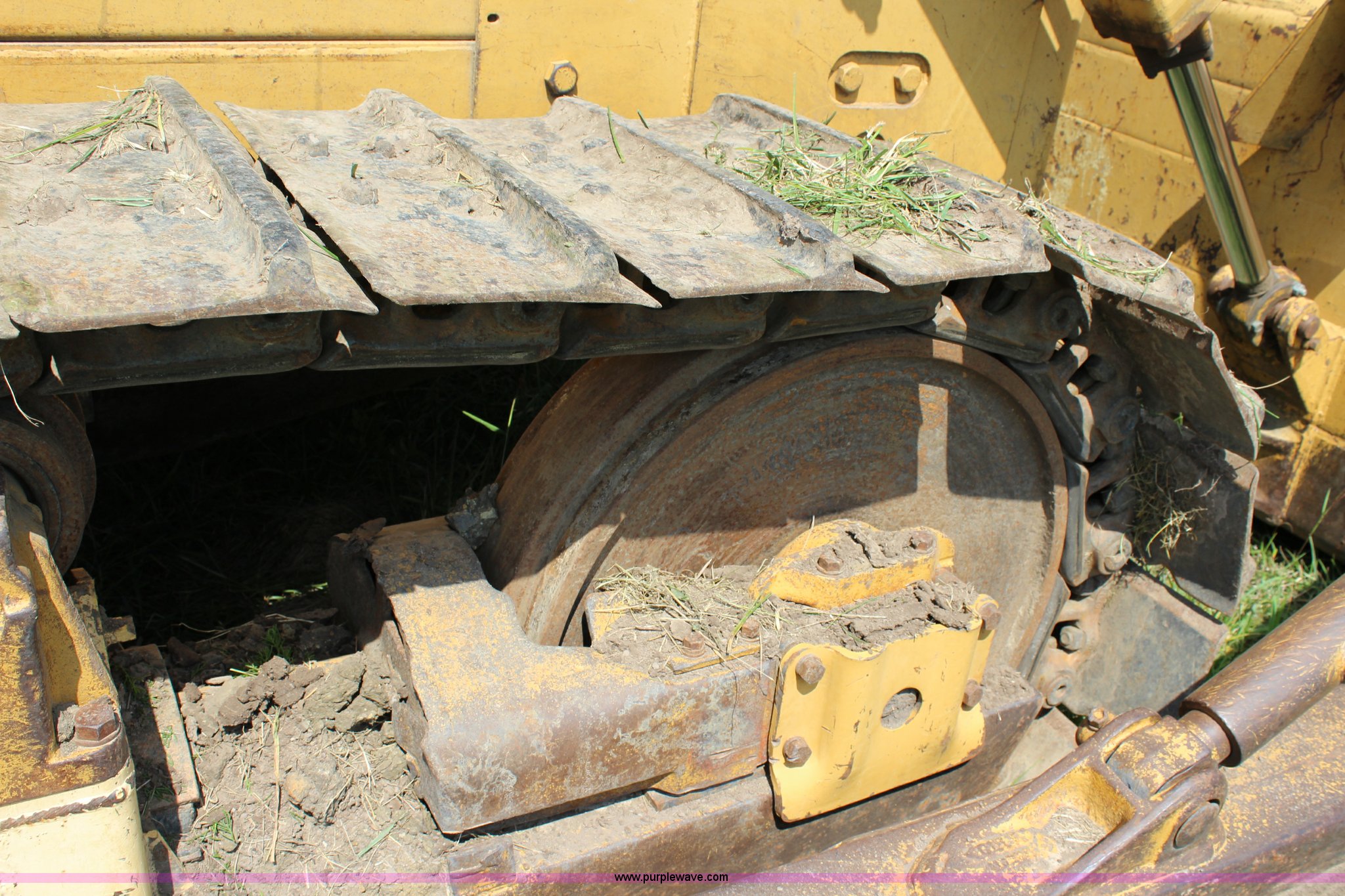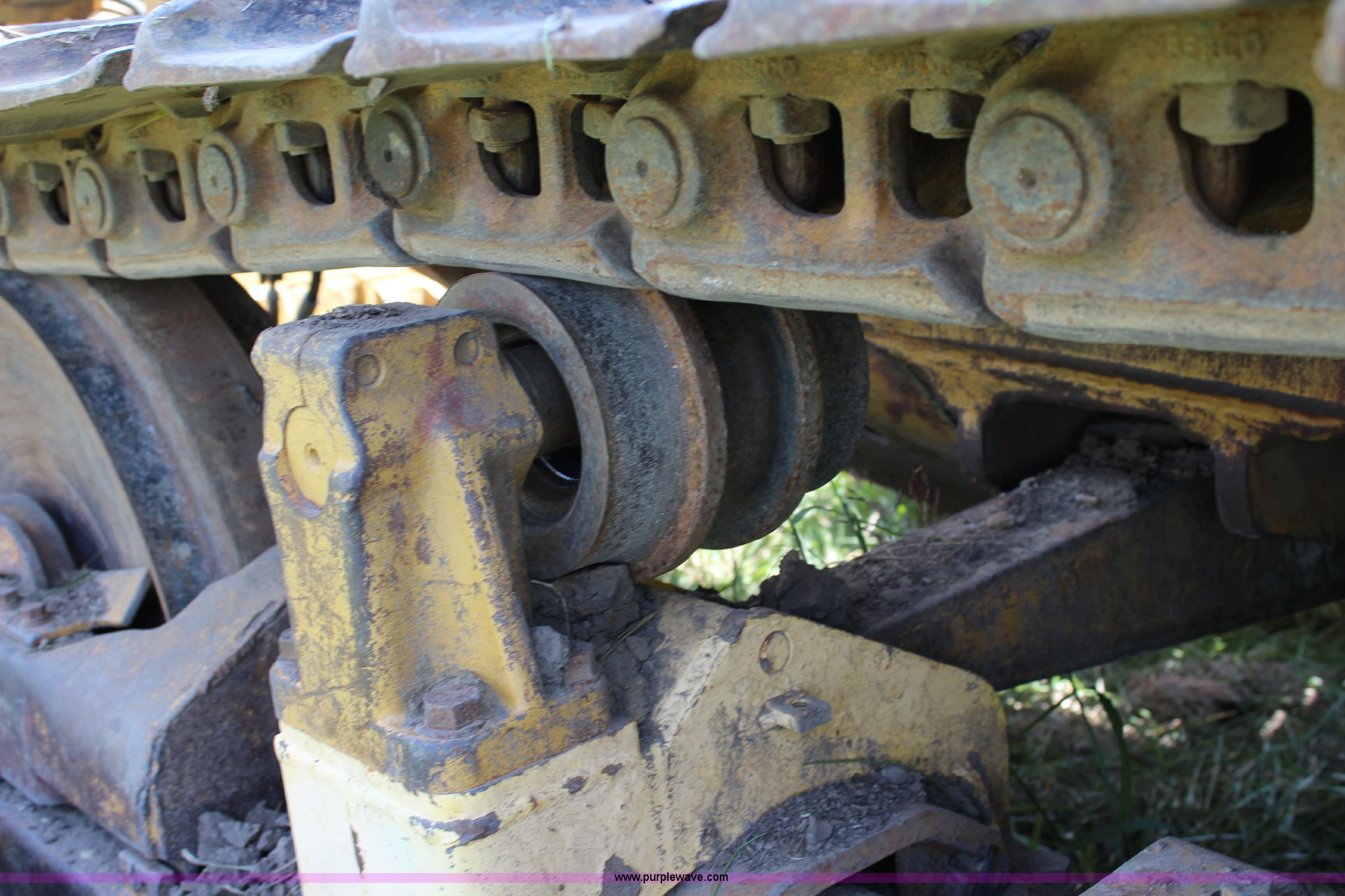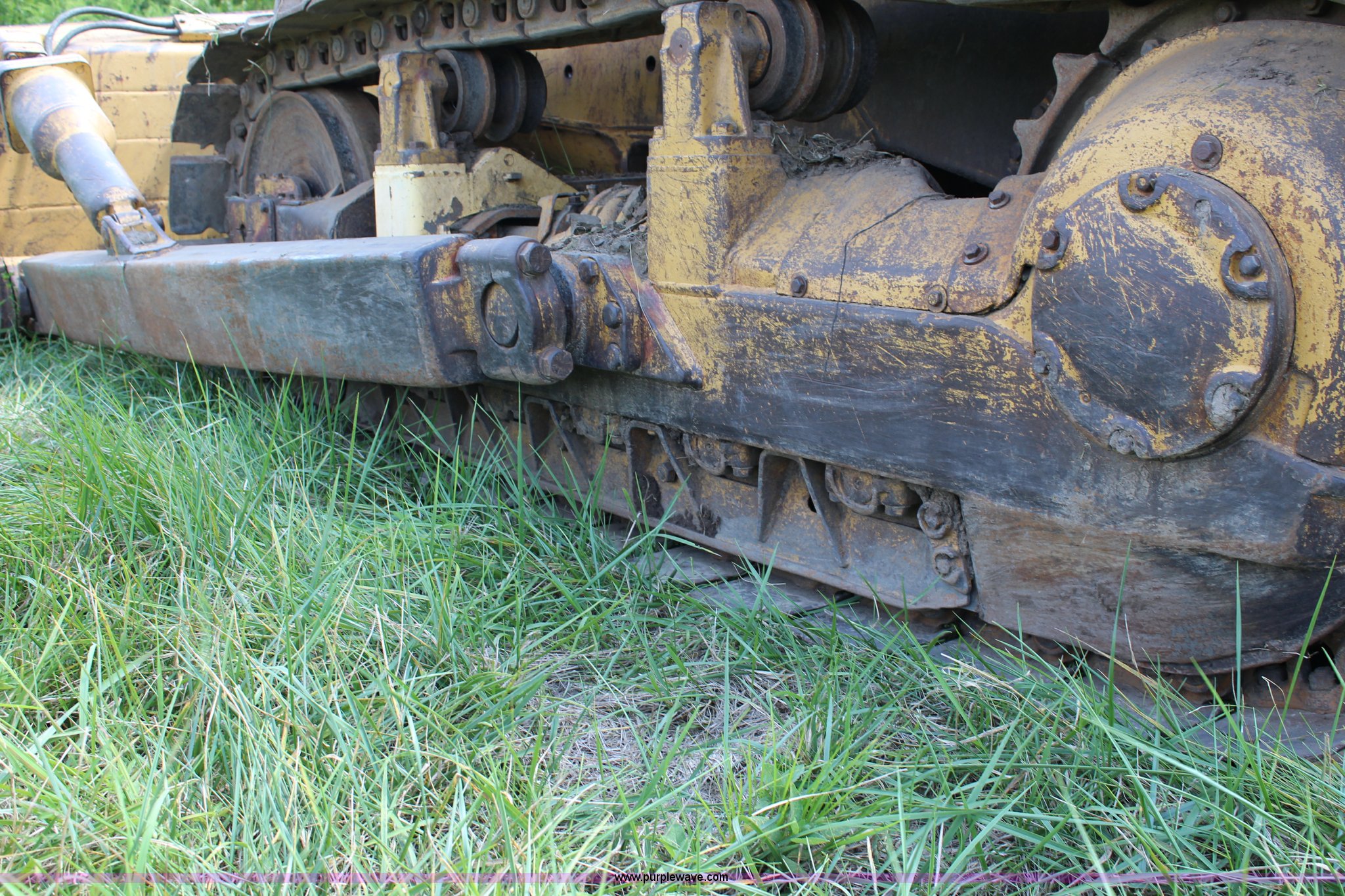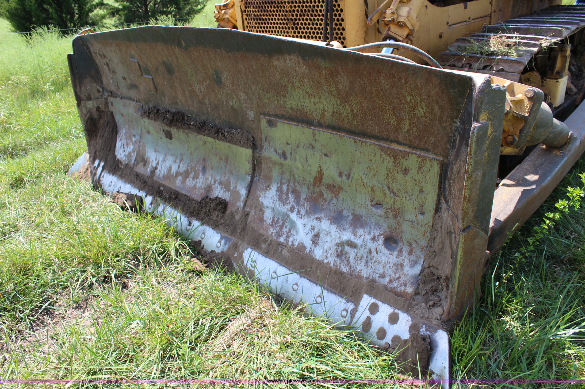 Purple Wave is selling a used Crawler Dozer in Kansas. This item is a 1968 Caterpillar D7E dozer with the following: 207 hours on meter, Caterpillar four cylinder turbo diesel engine, 180 HP, Powershift transmission, 3F-3R gears, Canopy, Clutch brake steering, 12'W straight dozer blade, Single tilt, Rear draw bar, Six bottom rollers, 22"W single grouser track pads, 56,669 lbs. base operating weight, Carrier roller needs replaced, Serial 48A11594