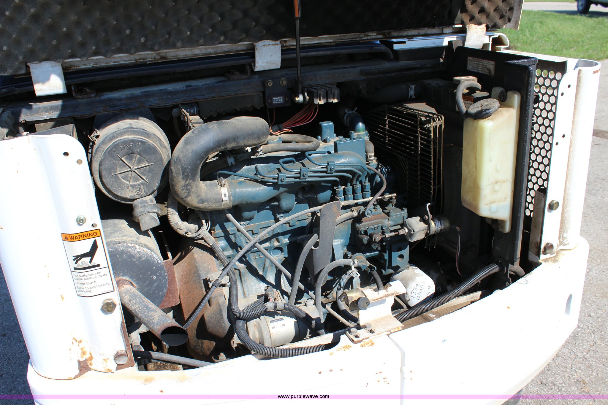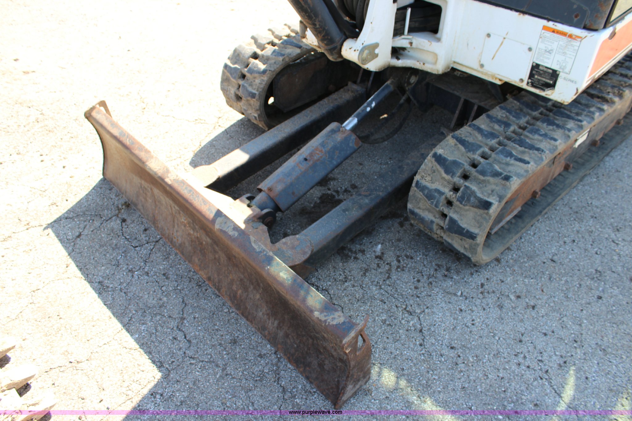 Purple Wave is selling a used Mini Excavator in Kansas. This item is a 1999 Bobcat X331 compact excavator with the following: 1,424 hours on meter, Kubota 2.2L diesel engine, 40 HP, Hydrostatic transmission, Enclosed cab, Heat, AM/FM, Suspension seat, Pattern changer, Front work lights, Standard boom, 48" stick length, 24"W bucket, (5) bolt-on teeth, Mechanical quick coupler, 60"W backfill blade, Additional 12" bucket, (3) bolt-on teeth, Four bottom rollers, 13"W rubber tracks, 7,756 lbs. base operating weight, Serial 512917297
