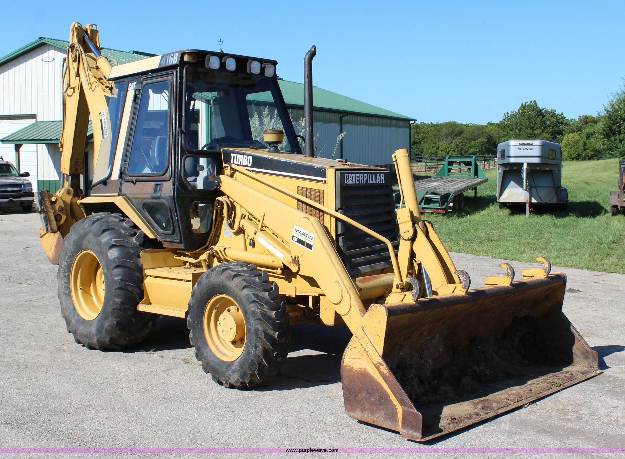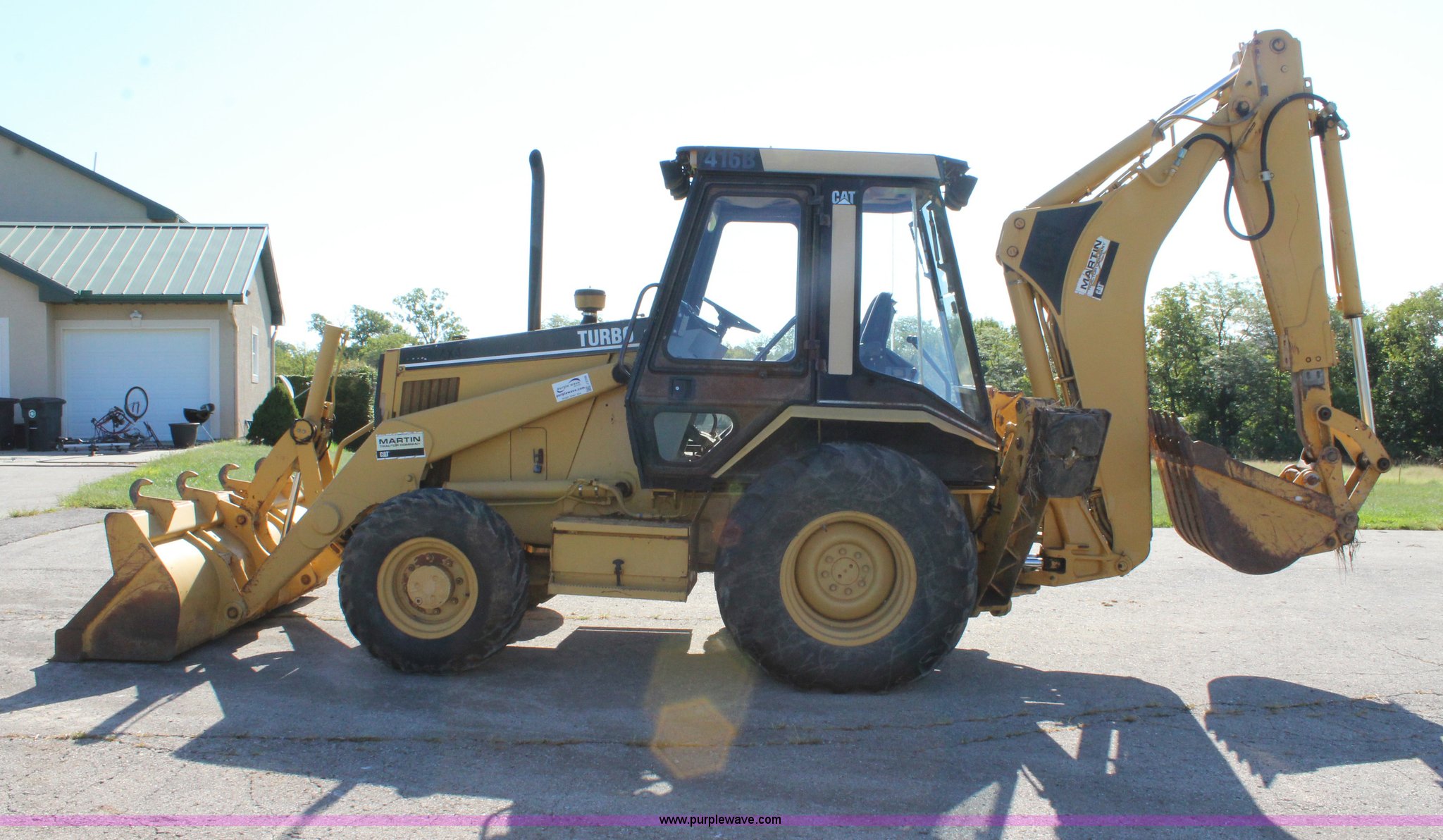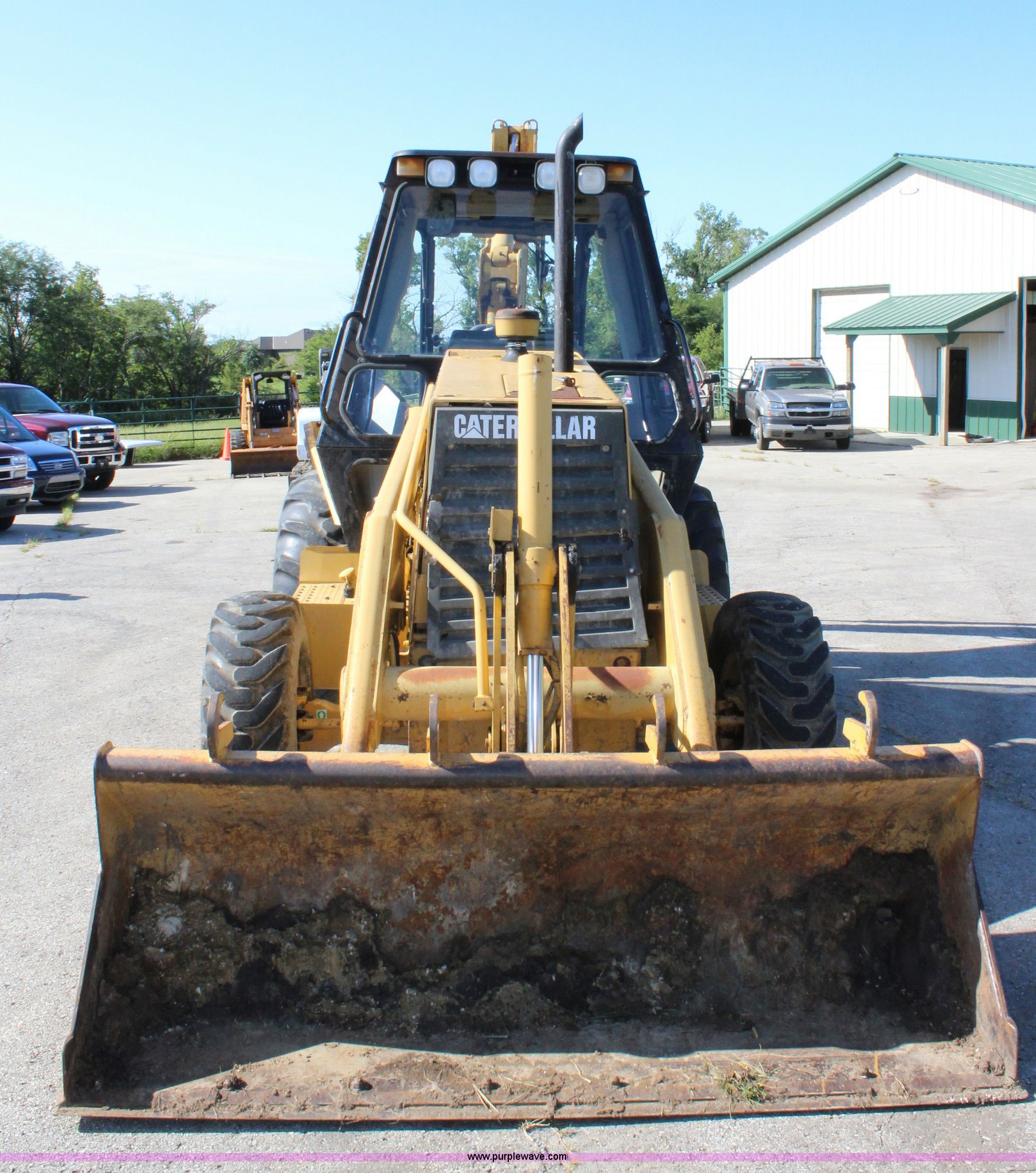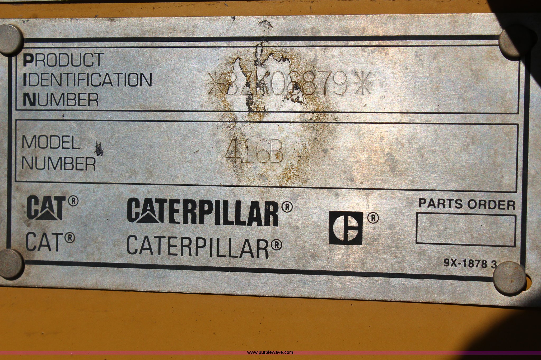 Purple Wave is selling a used Tractor Loader Backhoe in Kansas. This item is a 1999 Caterpillar 416B backhoe with the following: 1,572 hours on meter, Caterpillar 3054DIT four cylinder diesel engine, 74 HP, Serial 5HK06879, Shuttle shift transmission, 4F-4R gears, Four wheel drive, EROPS, AC and heat, Suspension seat, Wobble stick backhoe controls, Front and rear work lights, 90"W loader bucket, E-stick, 36"W backhoe bucket, Weld-on cutting edge, (6) teeth, Manual quick coupler, Front counter weights, 12.5/80-18 front tires, 19.5-24 rear tires, 13,700 lbs. base operating weight, Serial 8ZK06879
