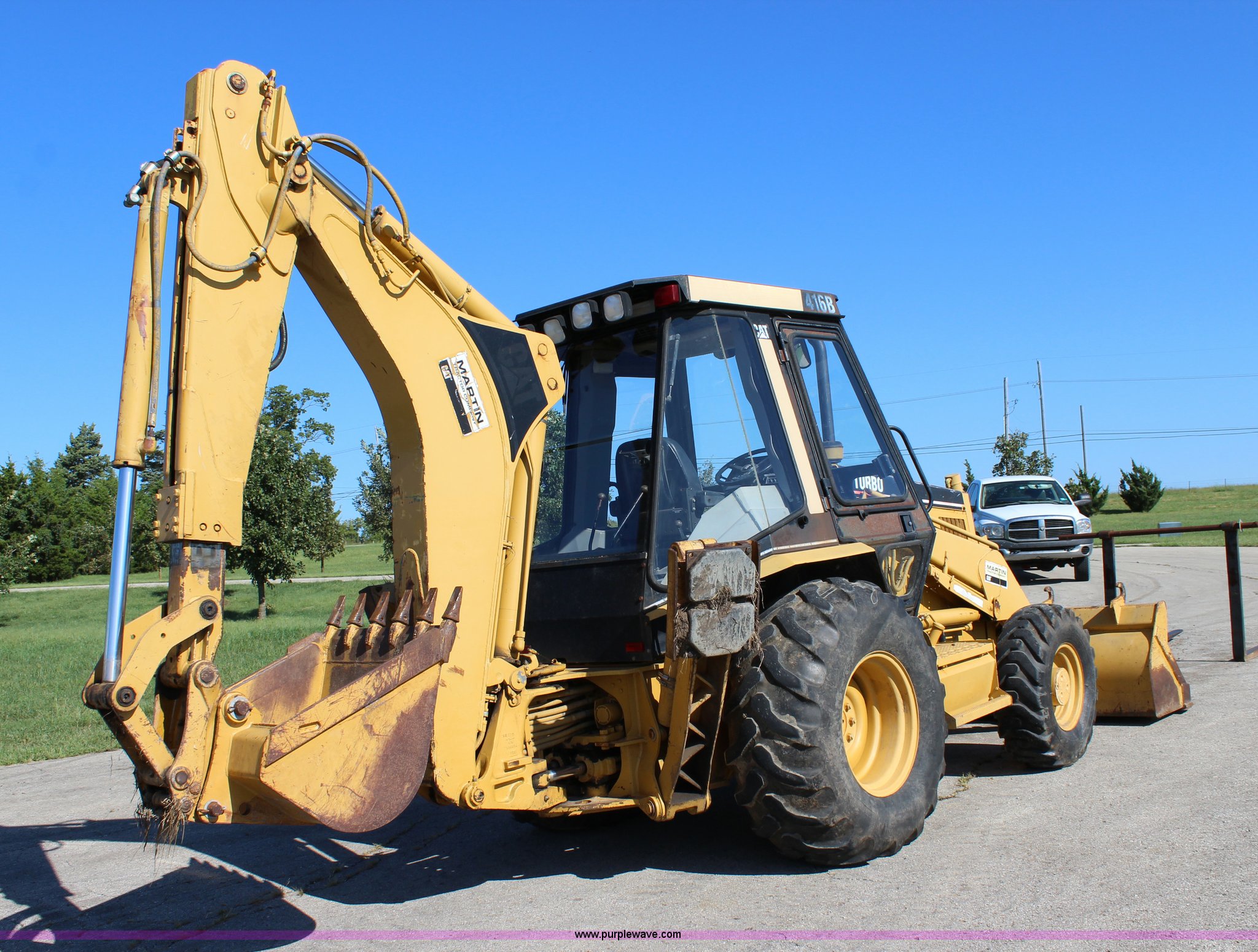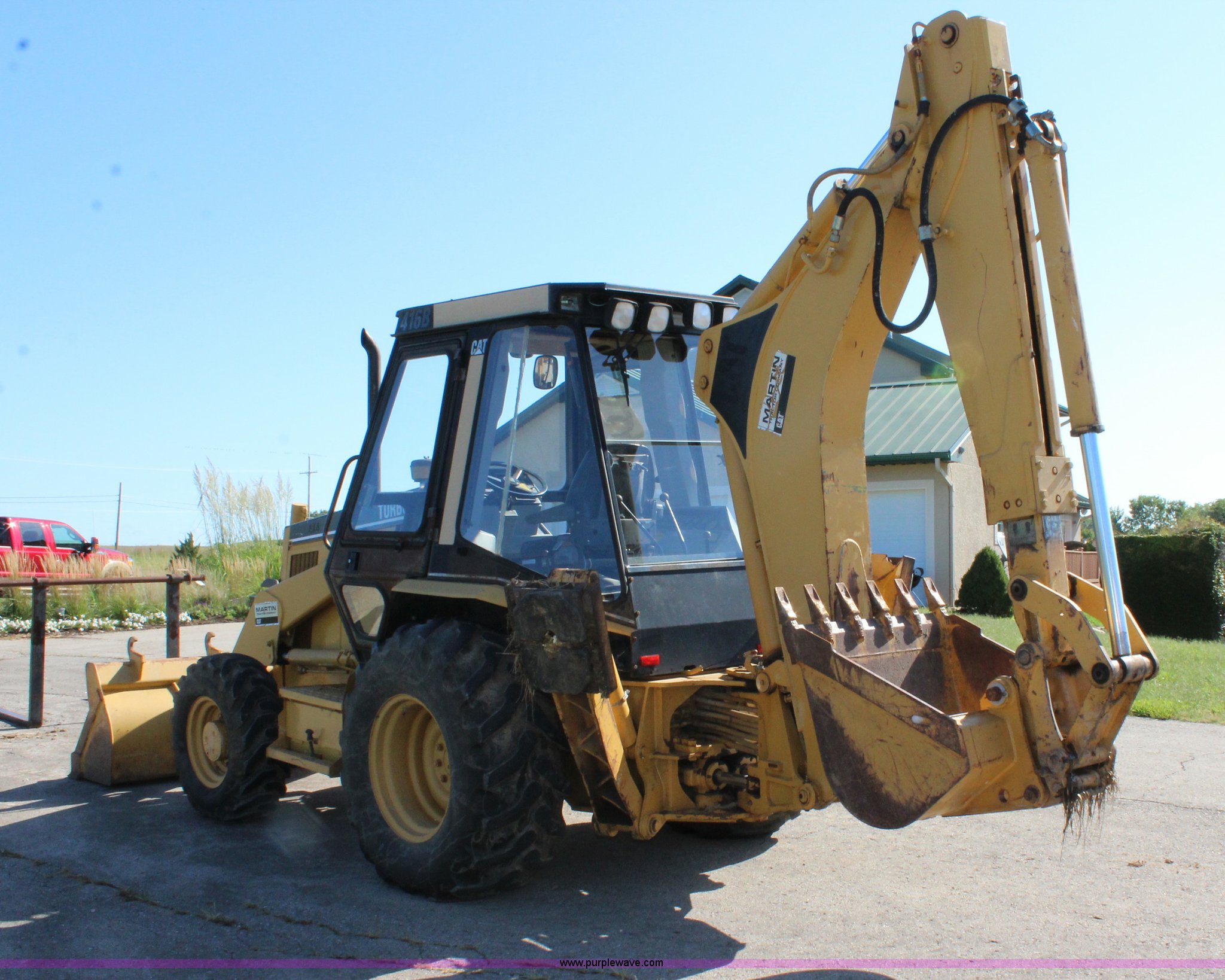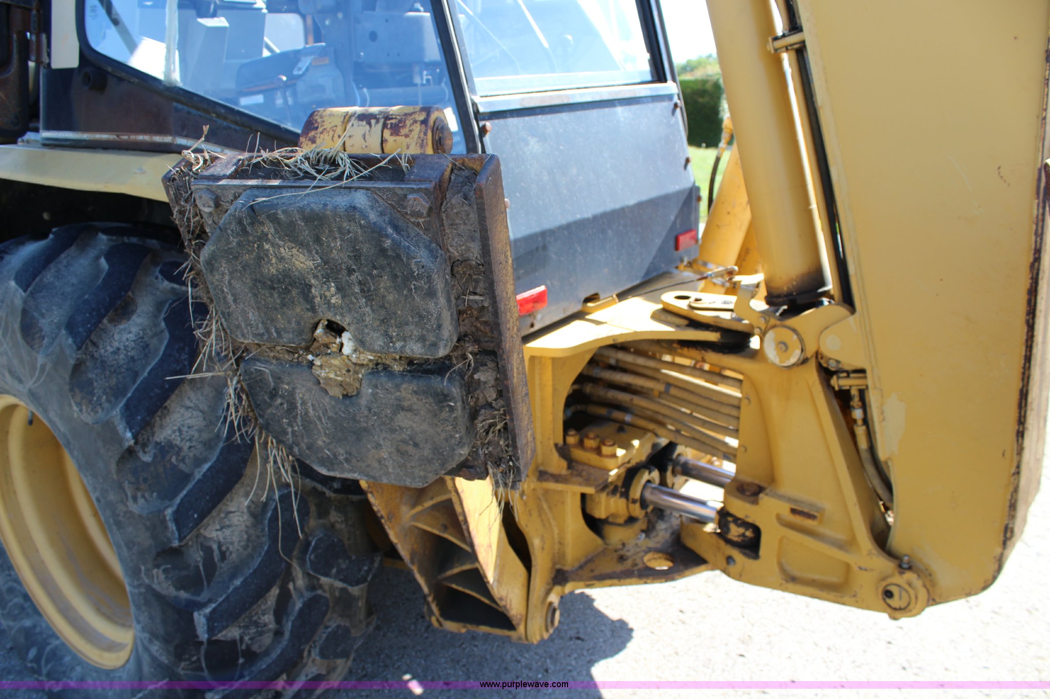 Purple Wave is selling a used Tractor Loader Backhoe in Kansas. This item is a 1999 Caterpillar 416B backhoe with the following: 1,572 hours on meter, Caterpillar 3054DIT four cylinder diesel engine, 74 HP, Serial 5HK06879, Shuttle shift transmission, 4F-4R gears, Four wheel drive, EROPS, AC and heat, Suspension seat, Wobble stick backhoe controls, Front and rear work lights, 90"W loader bucket, E-stick, 36"W backhoe bucket, Weld-on cutting edge, (6) teeth, Manual quick coupler, Front counter weights, 12.5/80-18 front tires, 19.5-24 rear tires, 13,700 lbs. base operating weight, Serial 8ZK06879