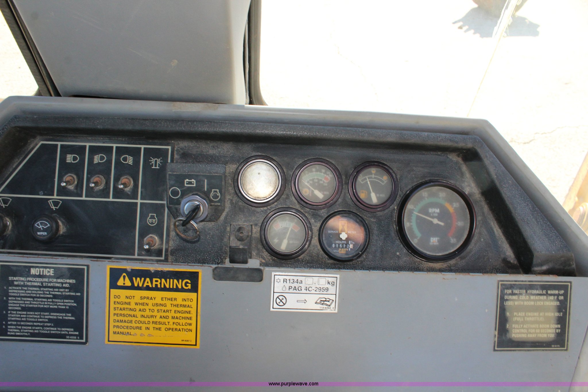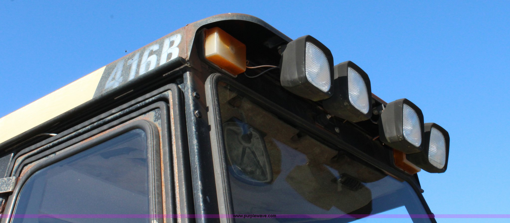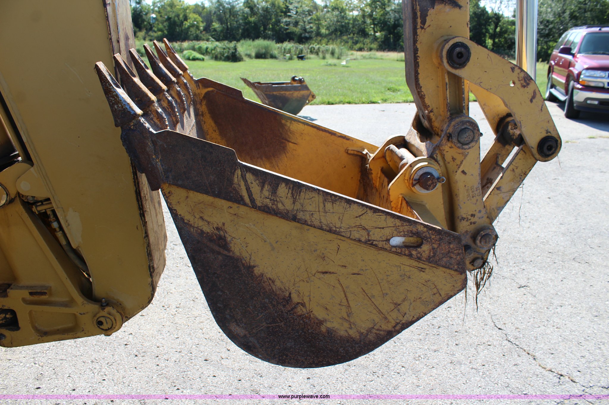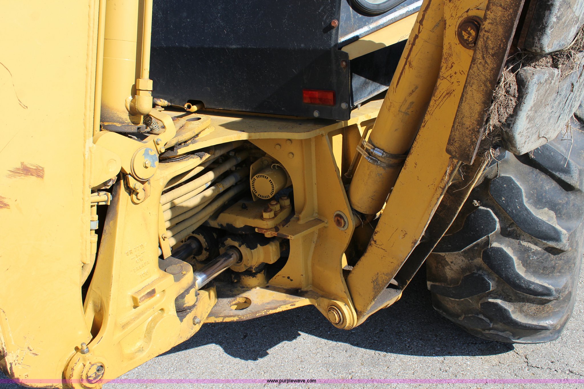 Purple Wave is selling a used Tractor Loader Backhoe in Kansas. This item is a 1999 Caterpillar 416B backhoe with the following: 1,572 hours on meter, Caterpillar 3054DIT four cylinder diesel engine, 74 HP, Serial 5HK06879, Shuttle shift transmission, 4F-4R gears, Four wheel drive, EROPS, AC and heat, Suspension seat, Wobble stick backhoe controls, Front and rear work lights, 90"W loader bucket, E-stick, 36"W backhoe bucket, Weld-on cutting edge, (6) teeth, Manual quick coupler, Front counter weights, 12.5/80-18 front tires, 19.5-24 rear tires, 13,700 lbs. base operating weight, Serial 8ZK06879