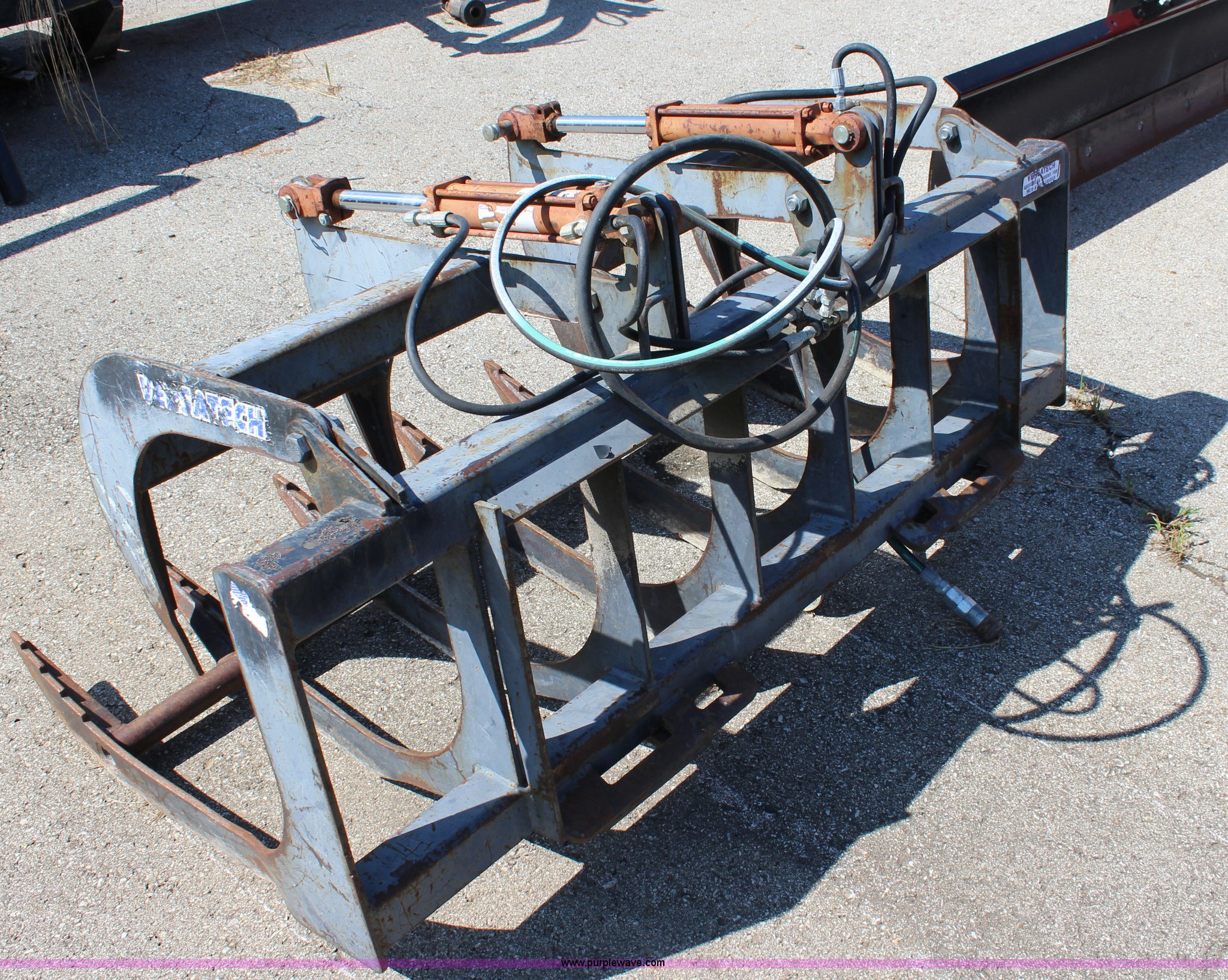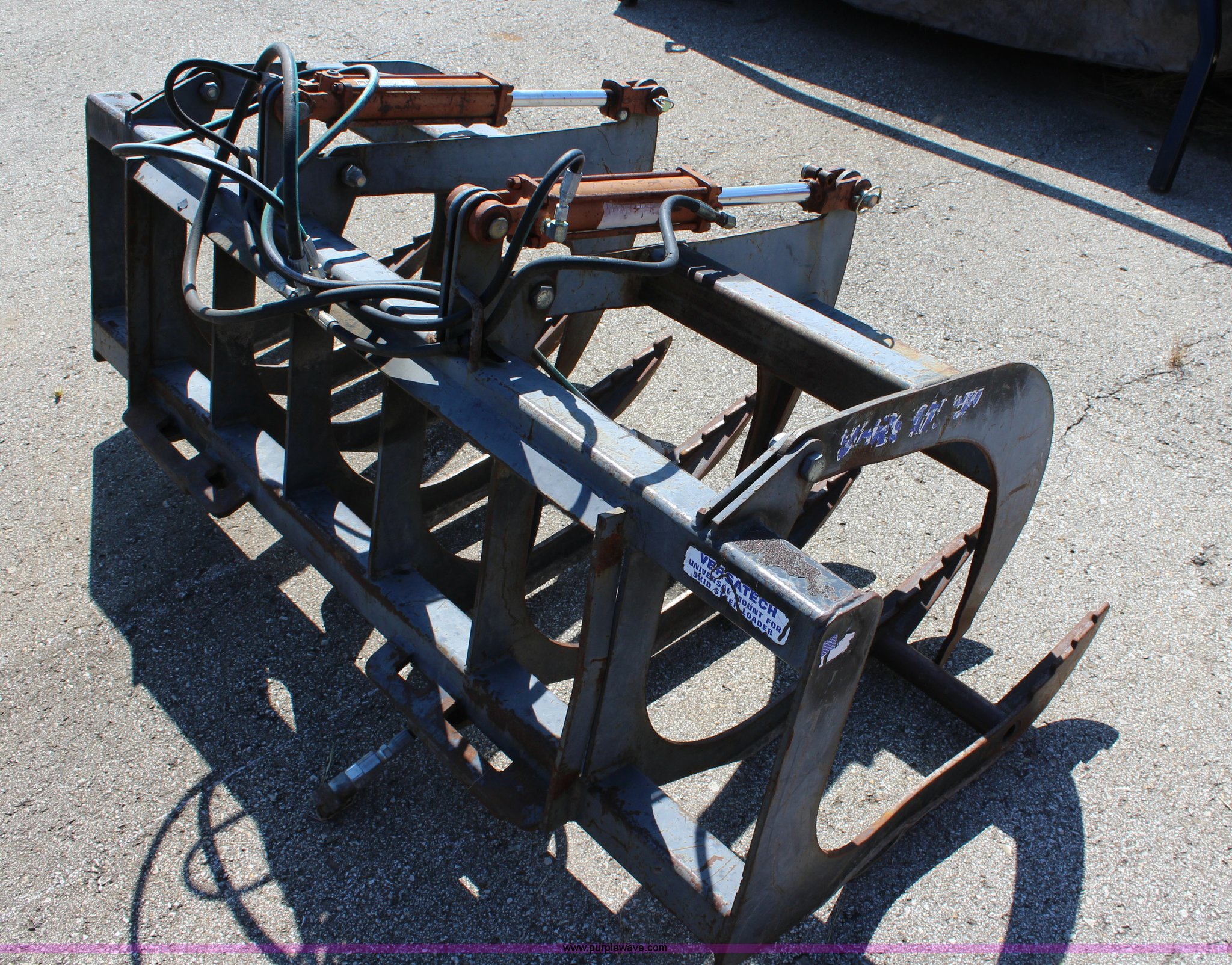 Purple Wave is selling a used Skid Steer Attach. in Kansas. This item is a Versatech skid steer grapple bucket with the following: 66"W
