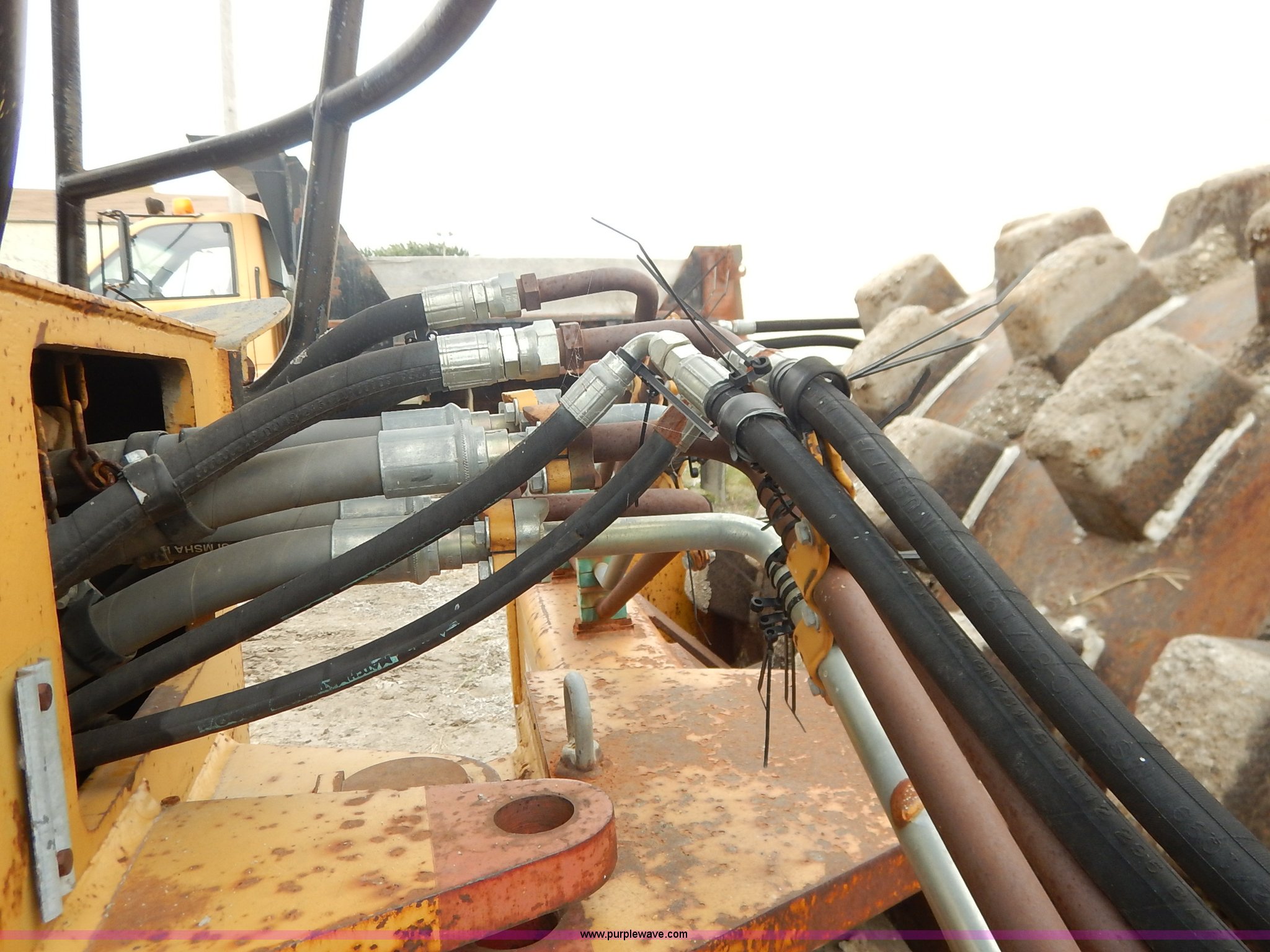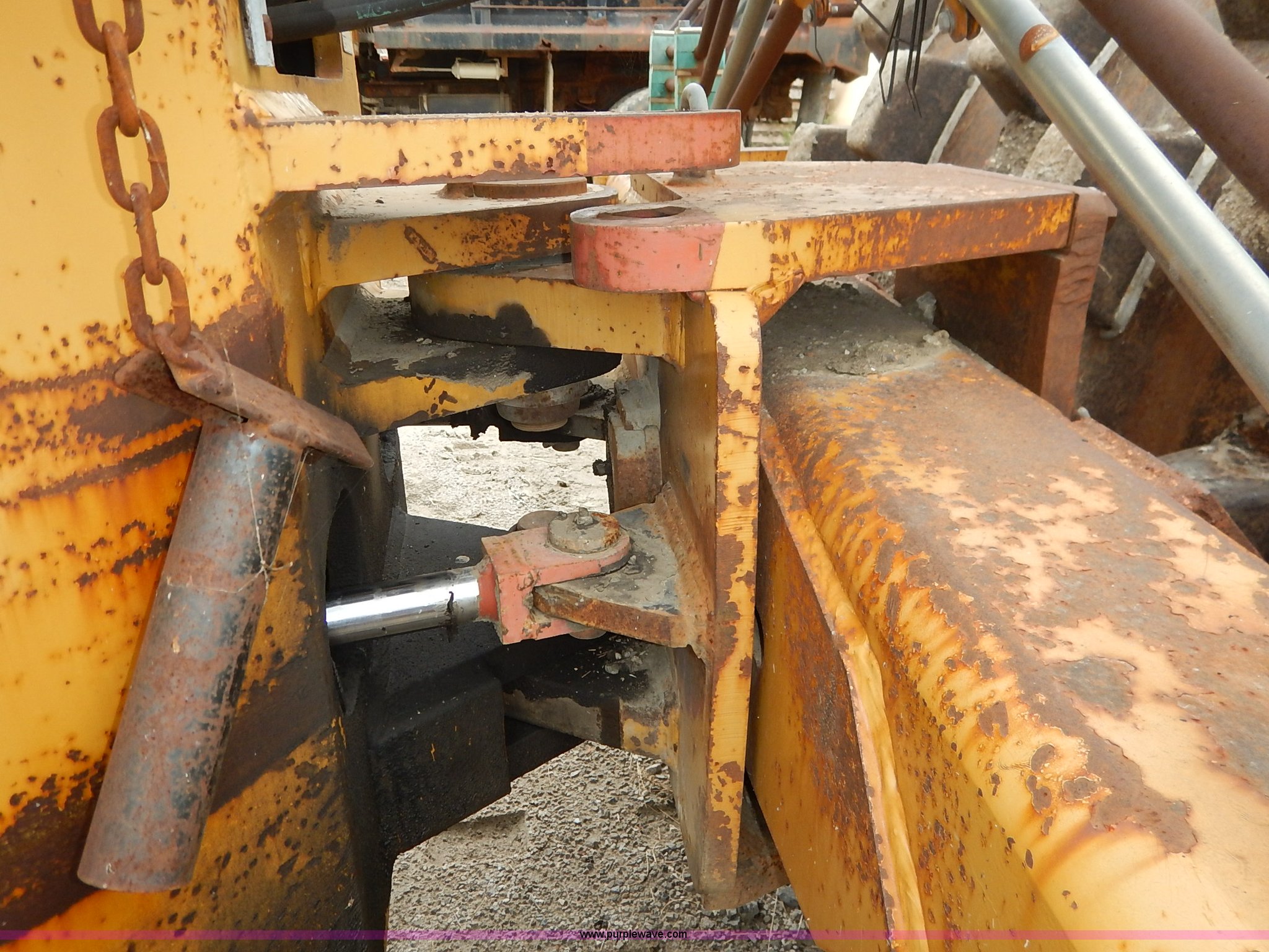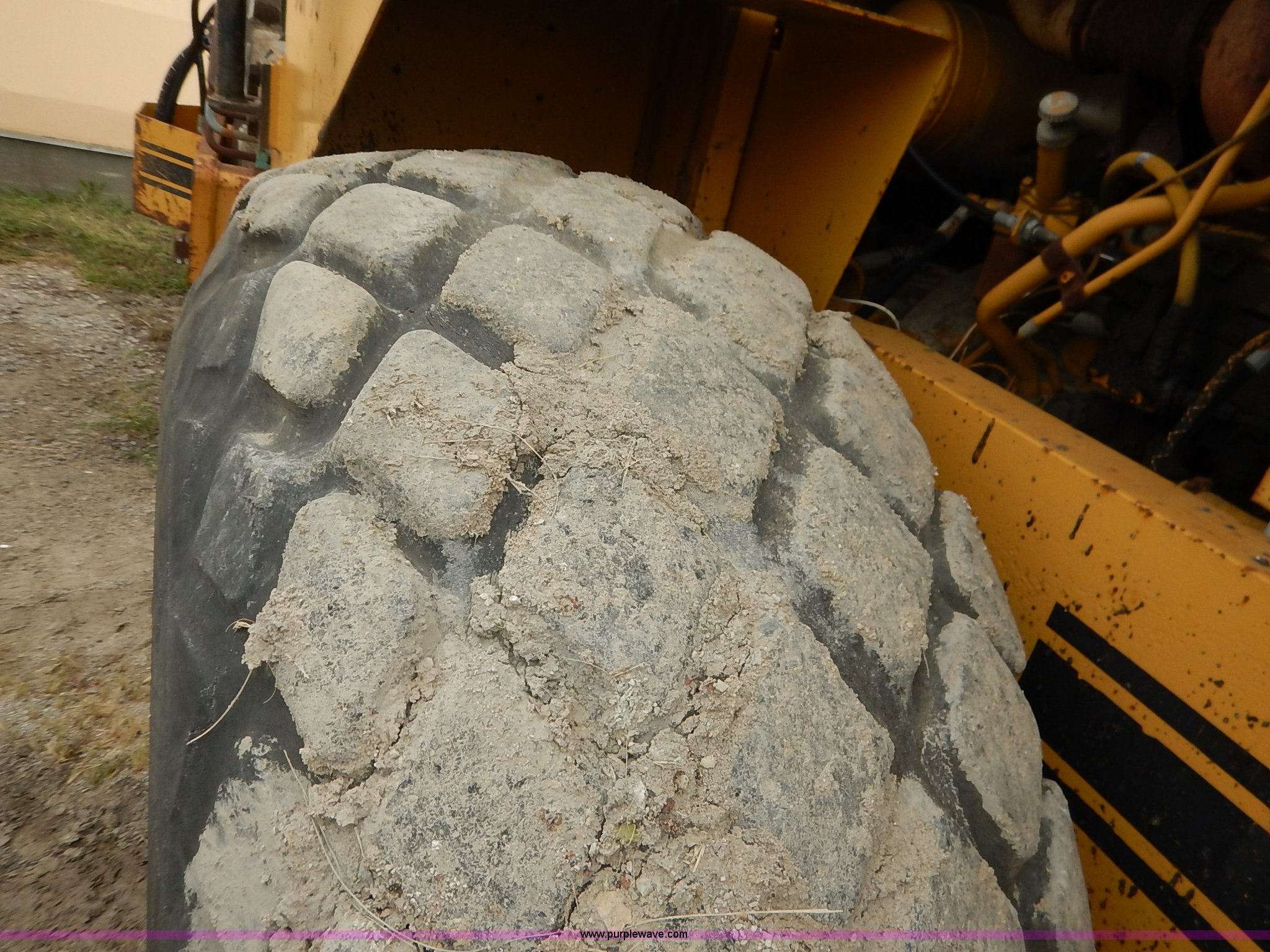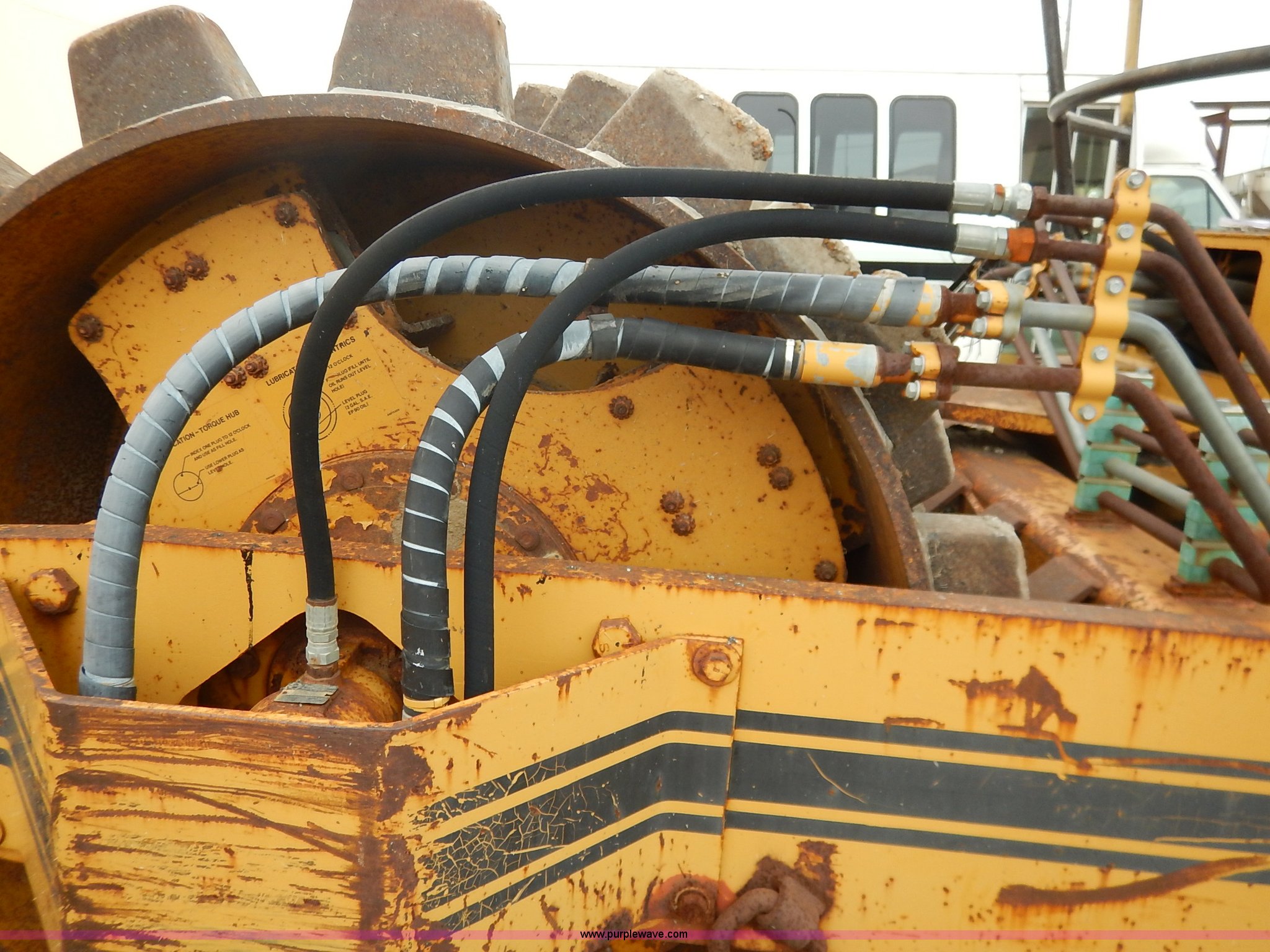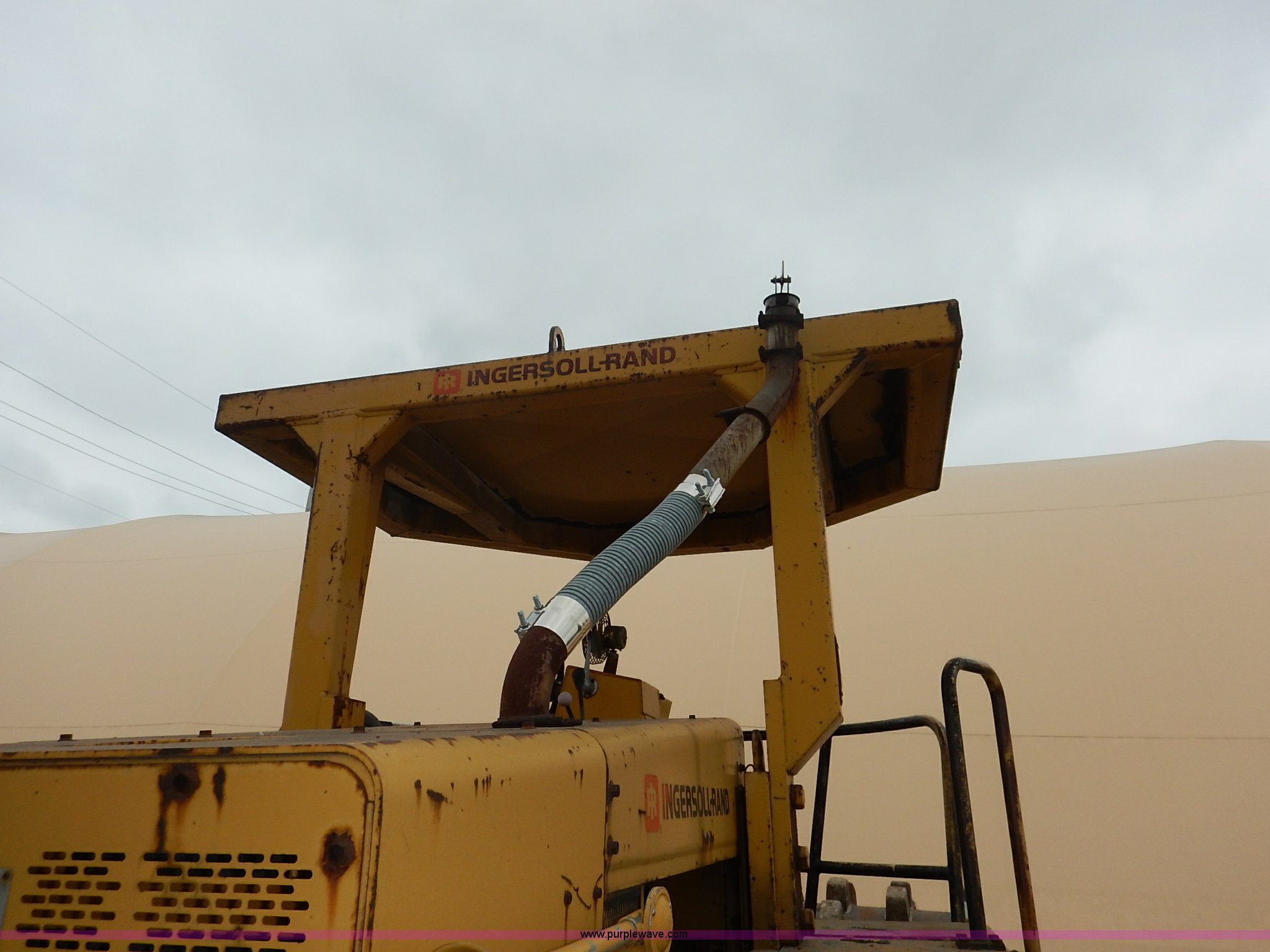 Purple Wave is selling a used Single Drum Roller Compactor in Missouri. This item is a 1985 Ingersoll Rand SPF-56B articulated single drum vibratory compactor with the following: Caterpillar 3204DI four cylinder turbo diesel engine, Serial PC00390, ROPS, Serial 20398, Vinyl seat, 85"W x 53" diameter pad foot drum, 102" front blade, Weld-on cutting edge, Travel hitch, Air horns, Air brakes, Goodyear 23.1-26 tires, 25,450 lbs. base operating weight, Serial 7376-S