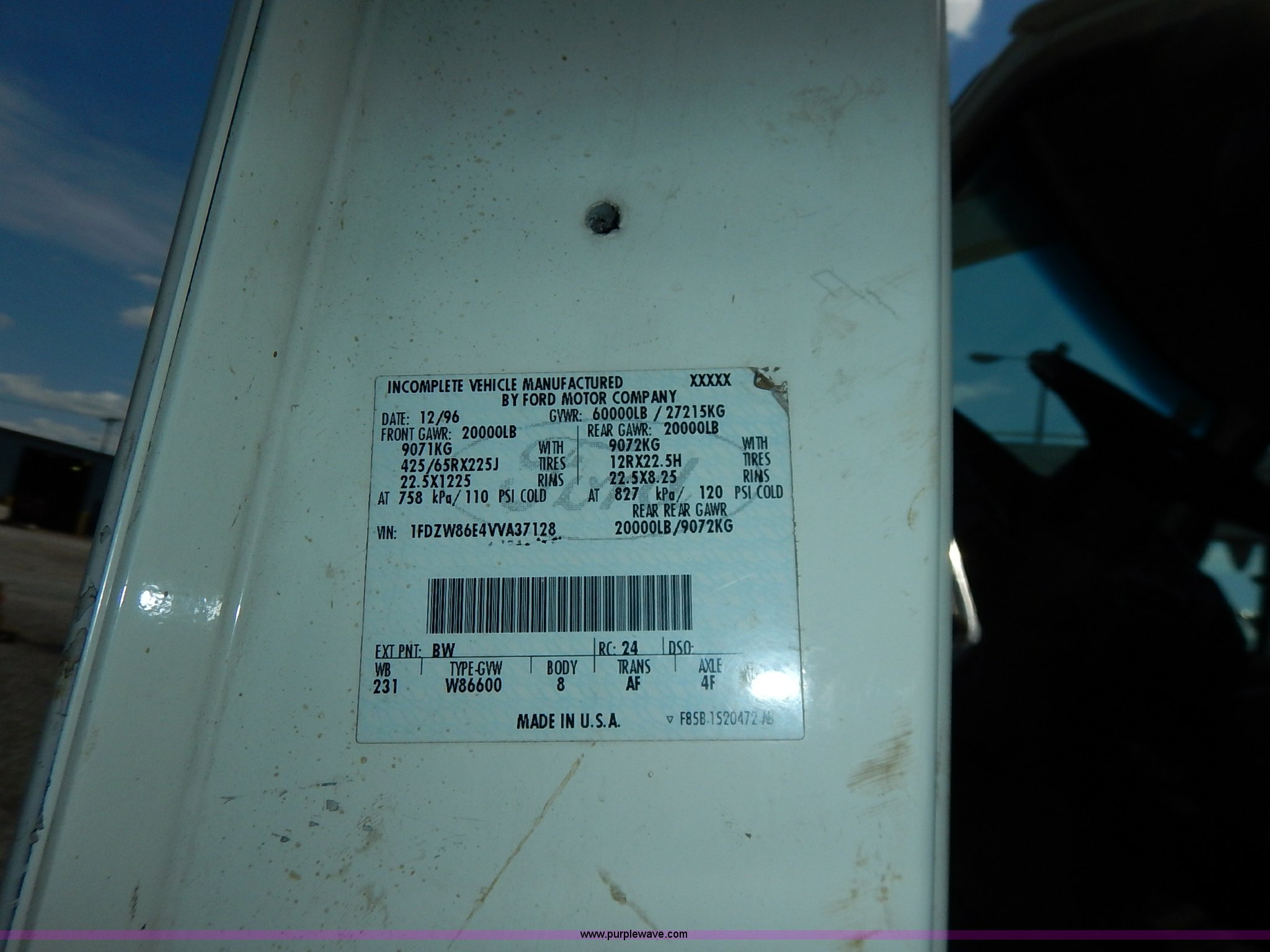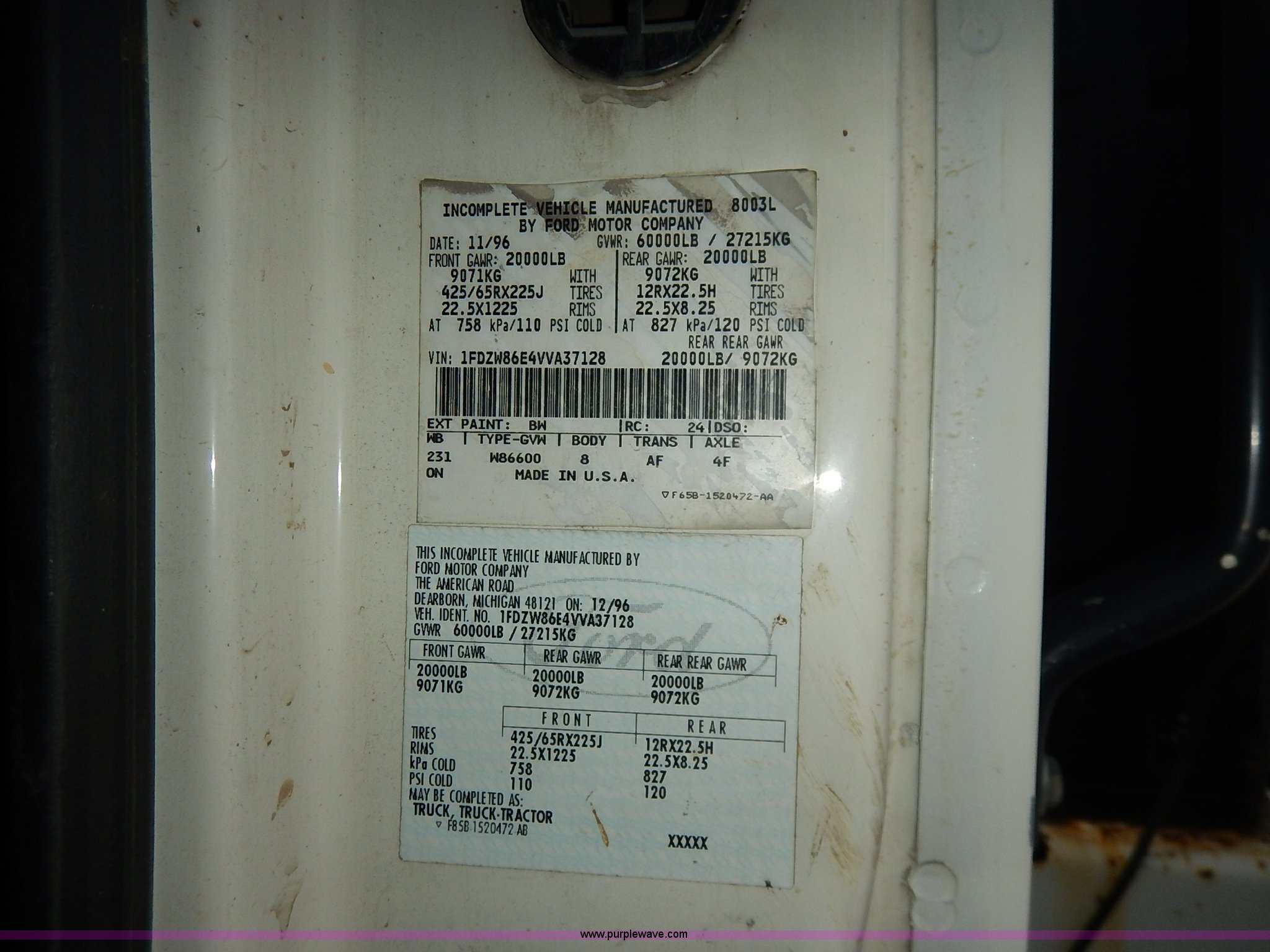 Purple Wave is selling a used Vacuum Truck in Kansas. This item is a 1997 Ford LT8501 Louisville sewer rodder and vacuum excavation truck with the following: 129,017 miles on odometer, 9,171 hours on meter, Cummins ISC 8.3L L6 diesel engine, Automatic transmission, AC and heat, AM/FM, Chelsea PTO, Split shaft, Chelsea PTO, Blower, Inter-axle differential lock, Vac-Con V309TA vacuum system, Serial 01971582, Murphy four cylinder turbo diesel engine, 881 hours on meter, Front boom hose reel, 6,444 hours on meter, Manual reel swing, Bypass valve, Dual fuel tanks, Exterior storage, Single rear exhaust stack, Mud flaps, Spring suspension, Air brakes, 234" wheelbase, Goodyear 425/65R22.5 front tires, 12R22.5 rear tires, GVWR 60,000 lbs, FAWR 20,000 lbs, IAWR 20,000 lbs, RAWR 20,000 lbs, Unit# 72