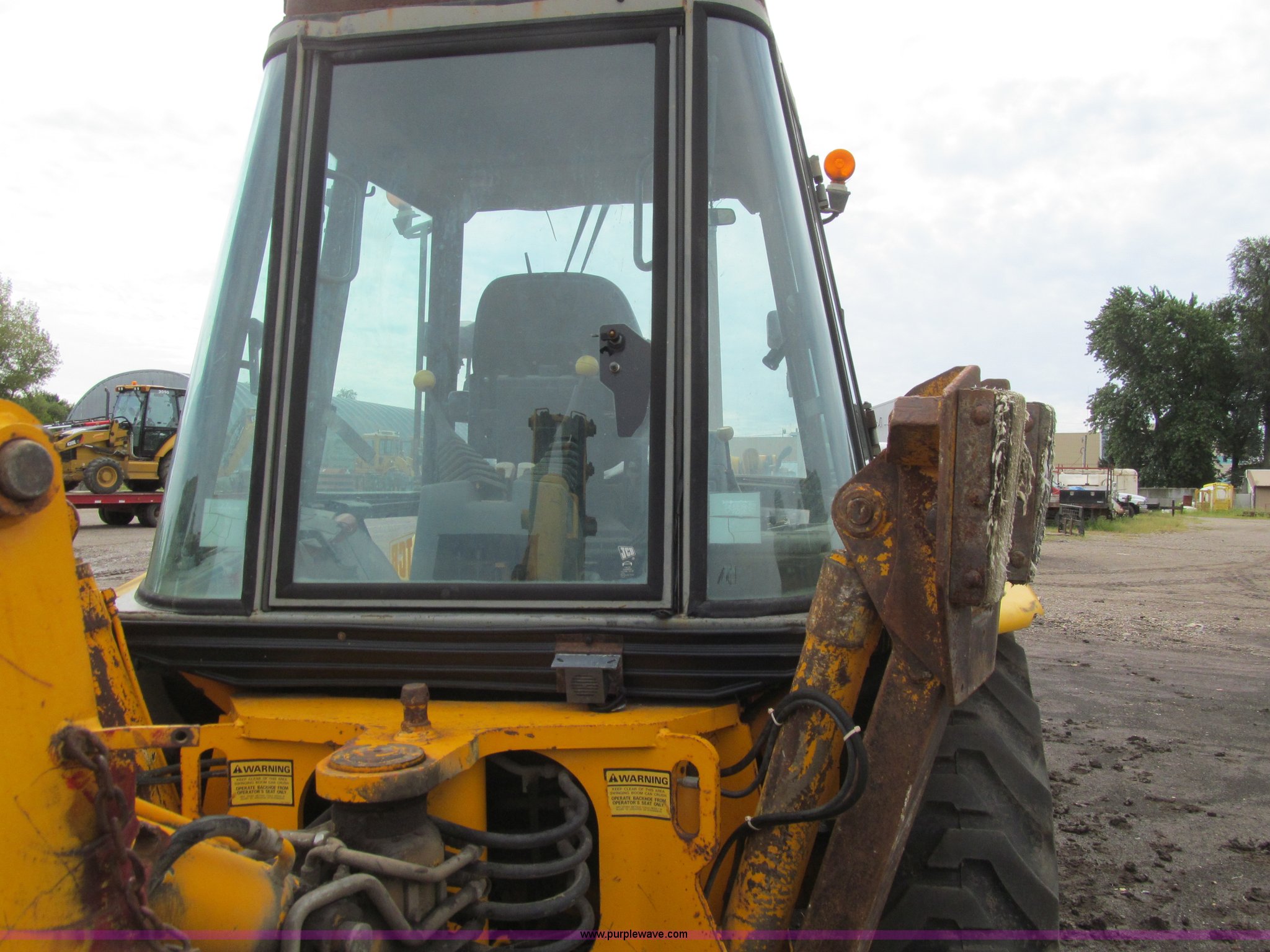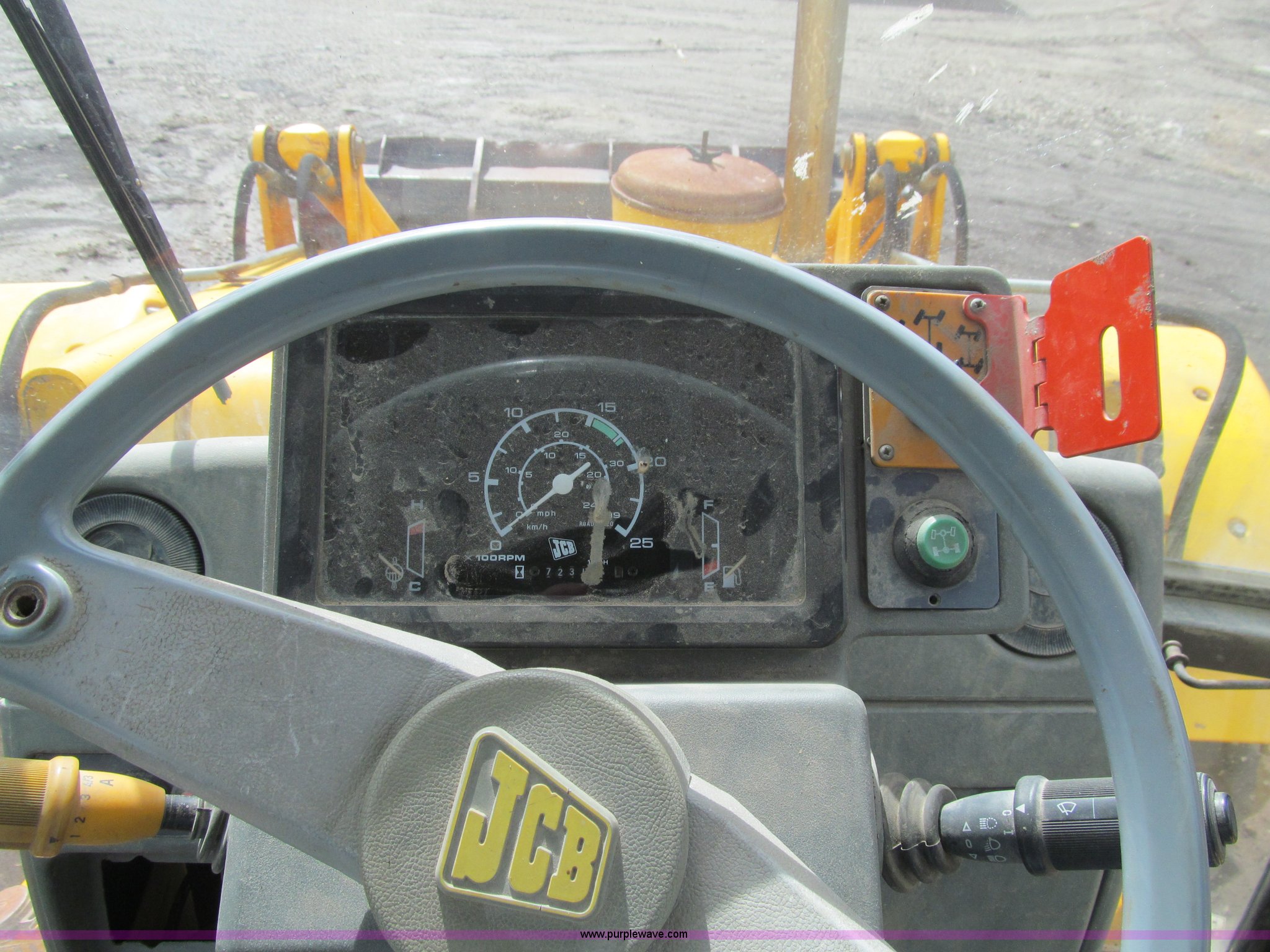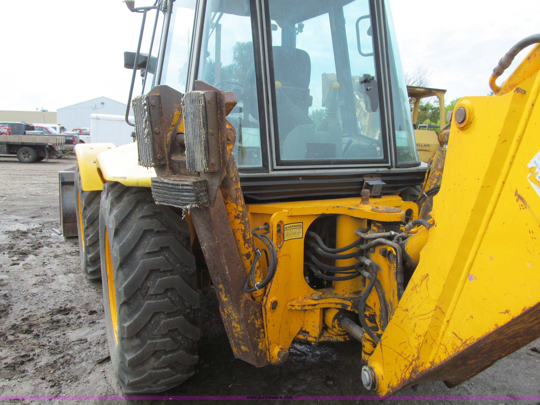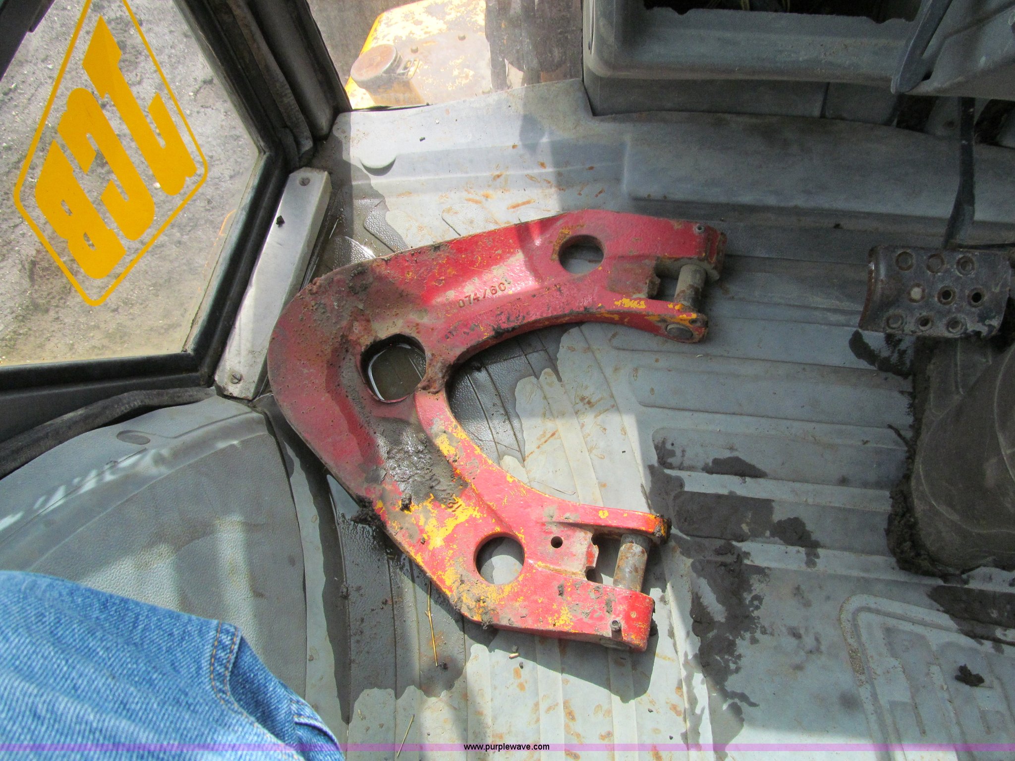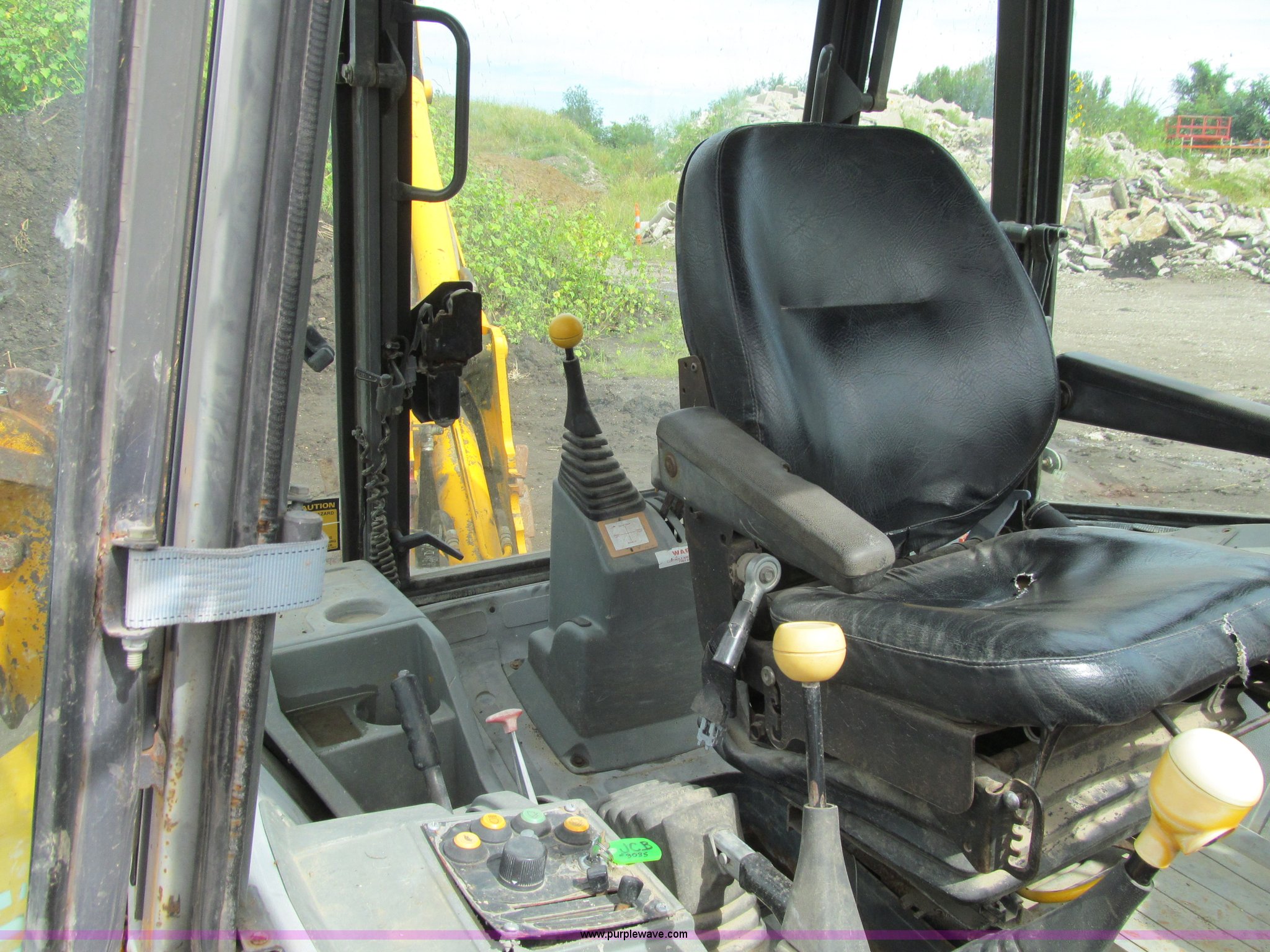 Purple Wave is selling a used Tractor Loader Backhoe in Iowa. This item is a 1992 JCB 215S backhoe with the following: 7,231 hours on meter, JCB 444 268 C.I.D. four cylinder turbo diesel engine, 97 HP, Powershift transmission, 4F-4R gears, Four wheel drive, Four wheel steer, Differential lock, EROPS, Heat, Suspension seat, Wobble stick backhoe controls, Wipers, Hydraulic quick coupler, E-stick, 28"W backhoe bucket, (5) teeth, Outriggers, Street pads, Pallet forks, 42"L, Adjustable width carriage, Firestone 16.9-28 front tires, Firestone 16.9-28 rear tires, 18,223 lbs. base operating weight, Left engine enclosure bent, Non-operational driver's side door latch, Serial 215SOCPE408027, Unit# 3035
