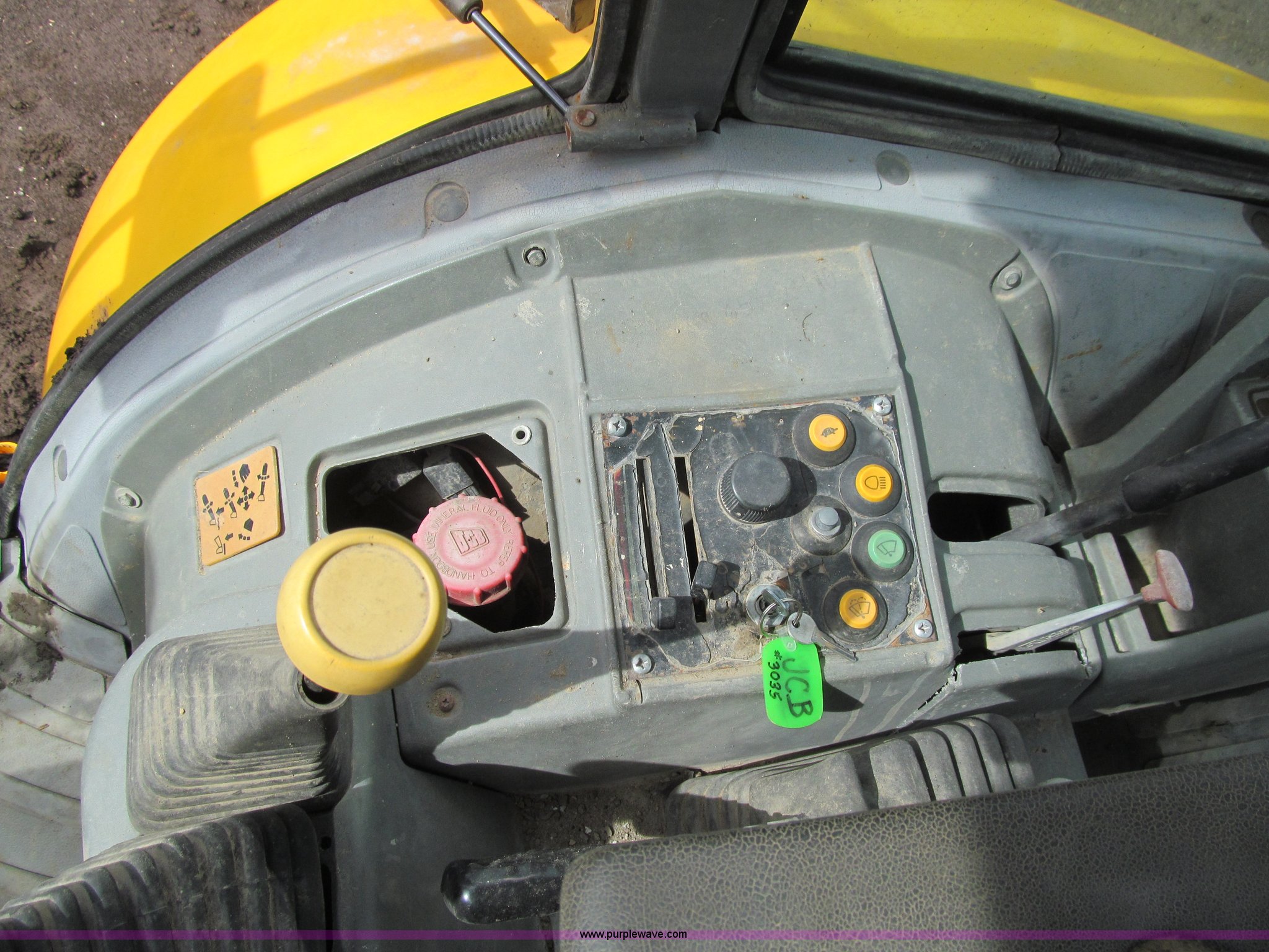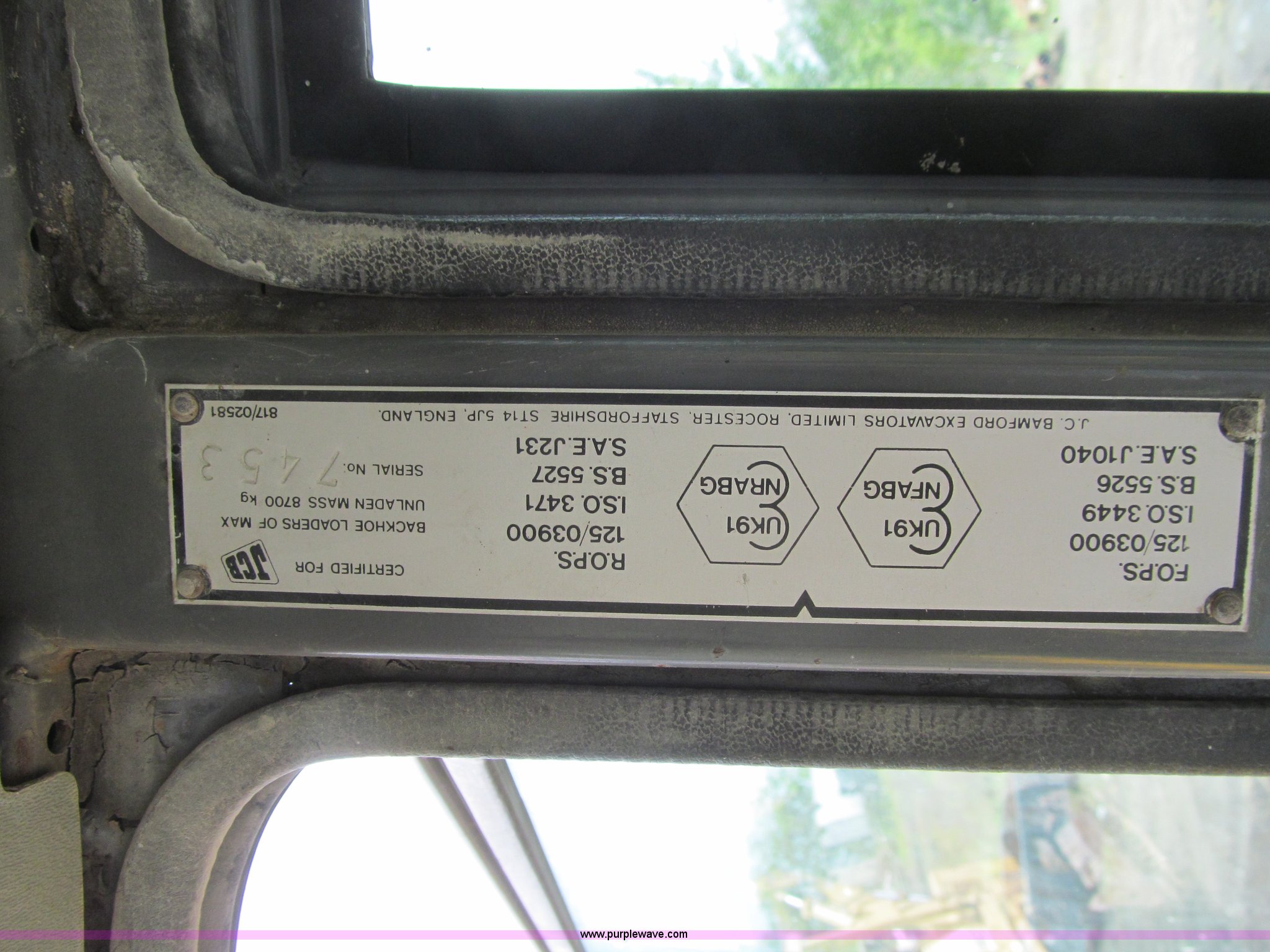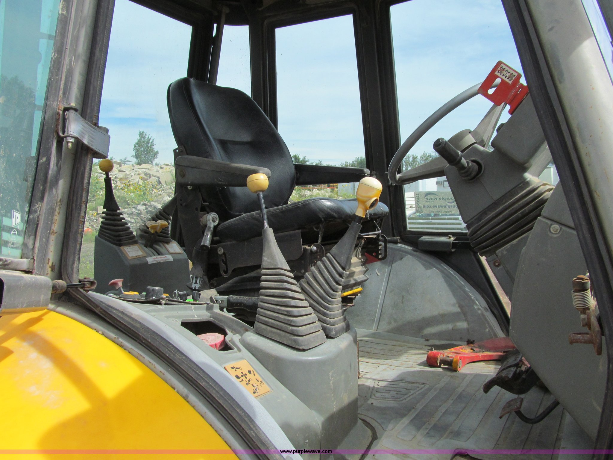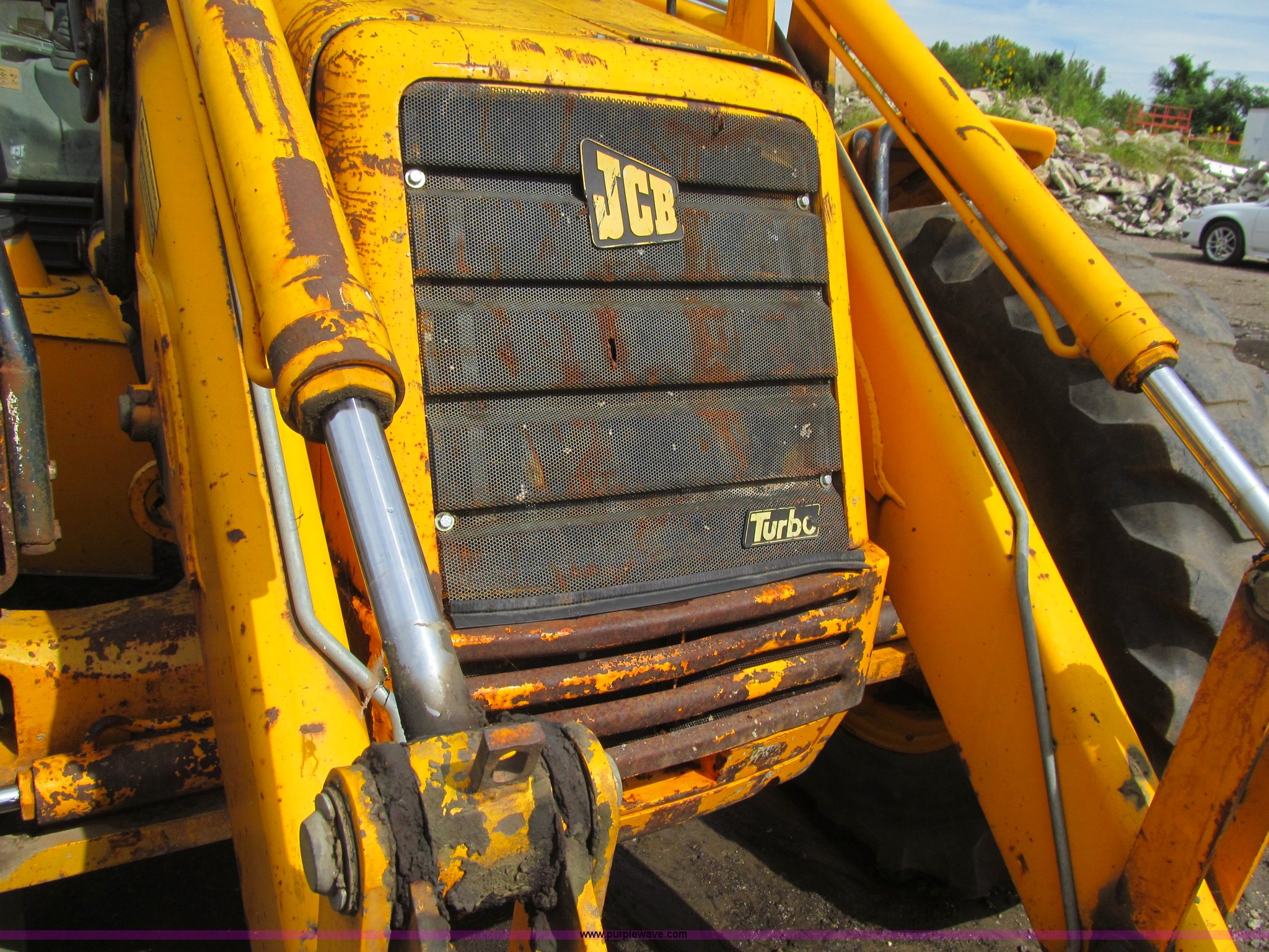 Purple Wave is selling a used Tractor Loader Backhoe in Iowa. This item is a 1992 JCB 215S backhoe with the following: 7,231 hours on meter, JCB 444 268 C.I.D. four cylinder turbo diesel engine, 97 HP, Powershift transmission, 4F-4R gears, Four wheel drive, Four wheel steer, Differential lock, EROPS, Heat, Suspension seat, Wobble stick backhoe controls, Wipers, Hydraulic quick coupler, E-stick, 28"W backhoe bucket, (5) teeth, Outriggers, Street pads, Pallet forks, 42"L, Adjustable width carriage, Firestone 16.9-28 front tires, Firestone 16.9-28 rear tires, 18,223 lbs. base operating weight, Left engine enclosure bent, Non-operational driver's side door latch, Serial 215SOCPE408027, Unit# 3035