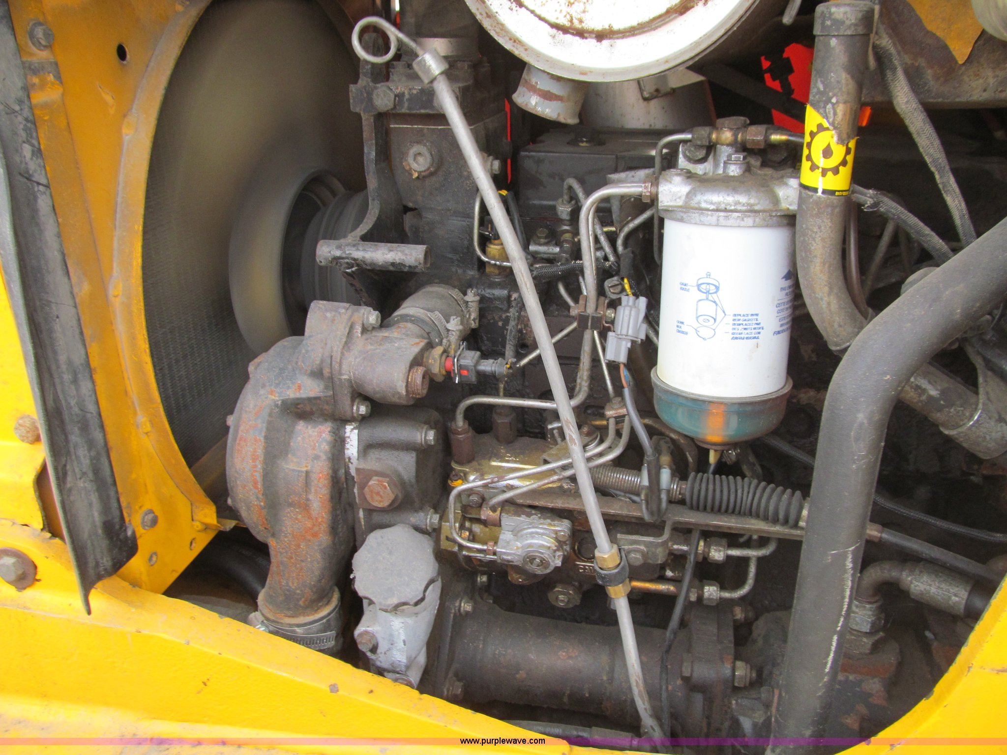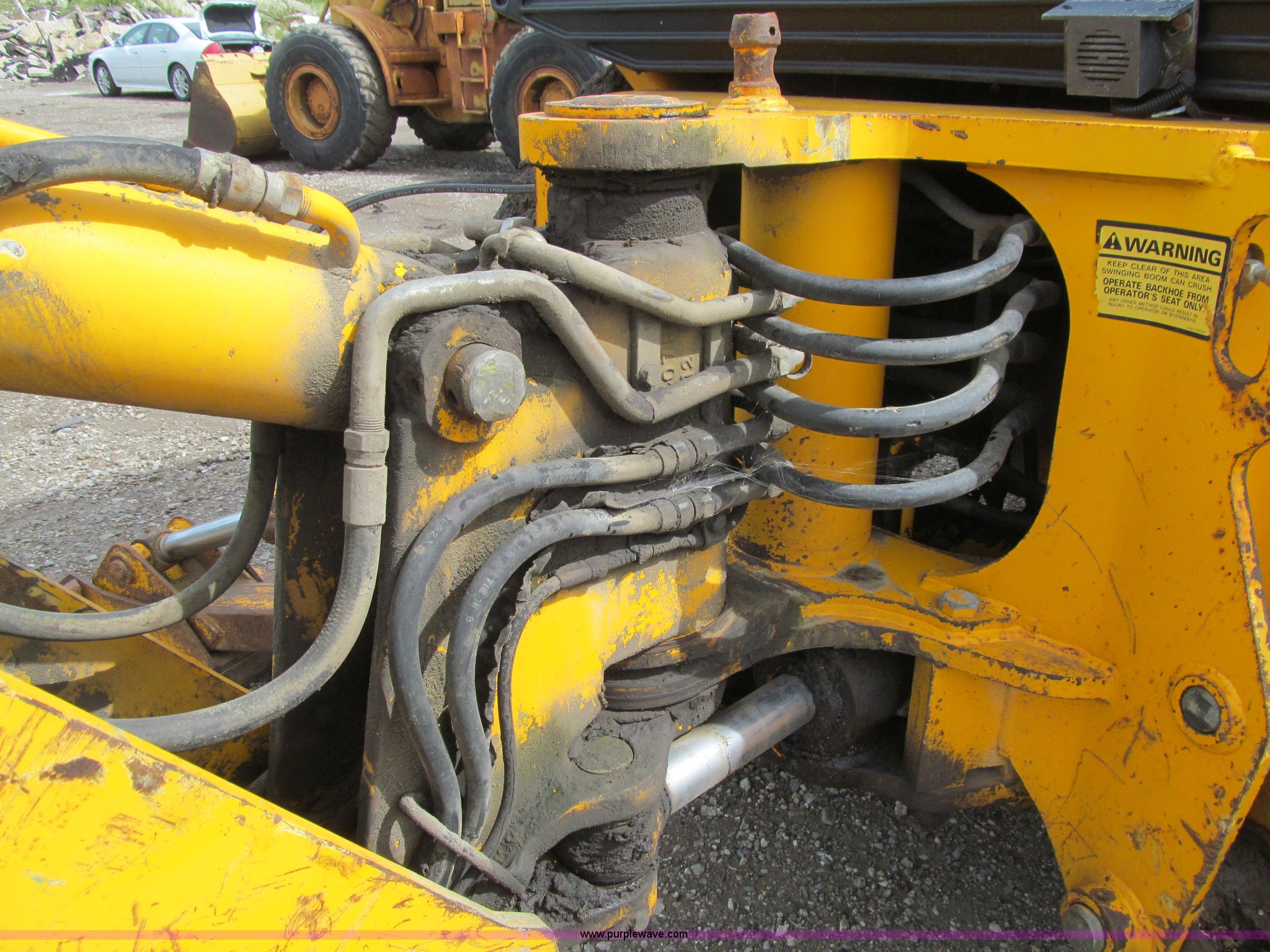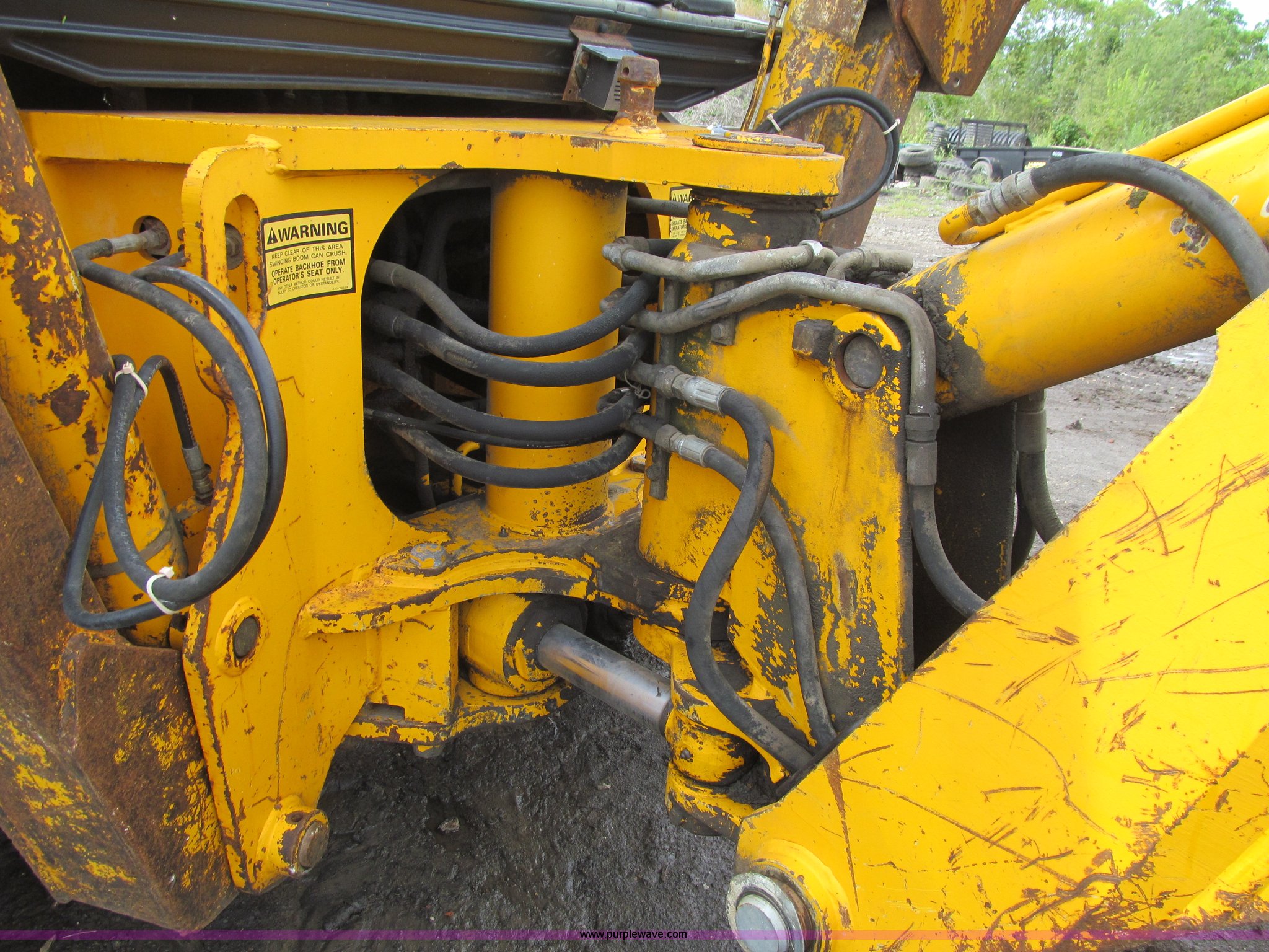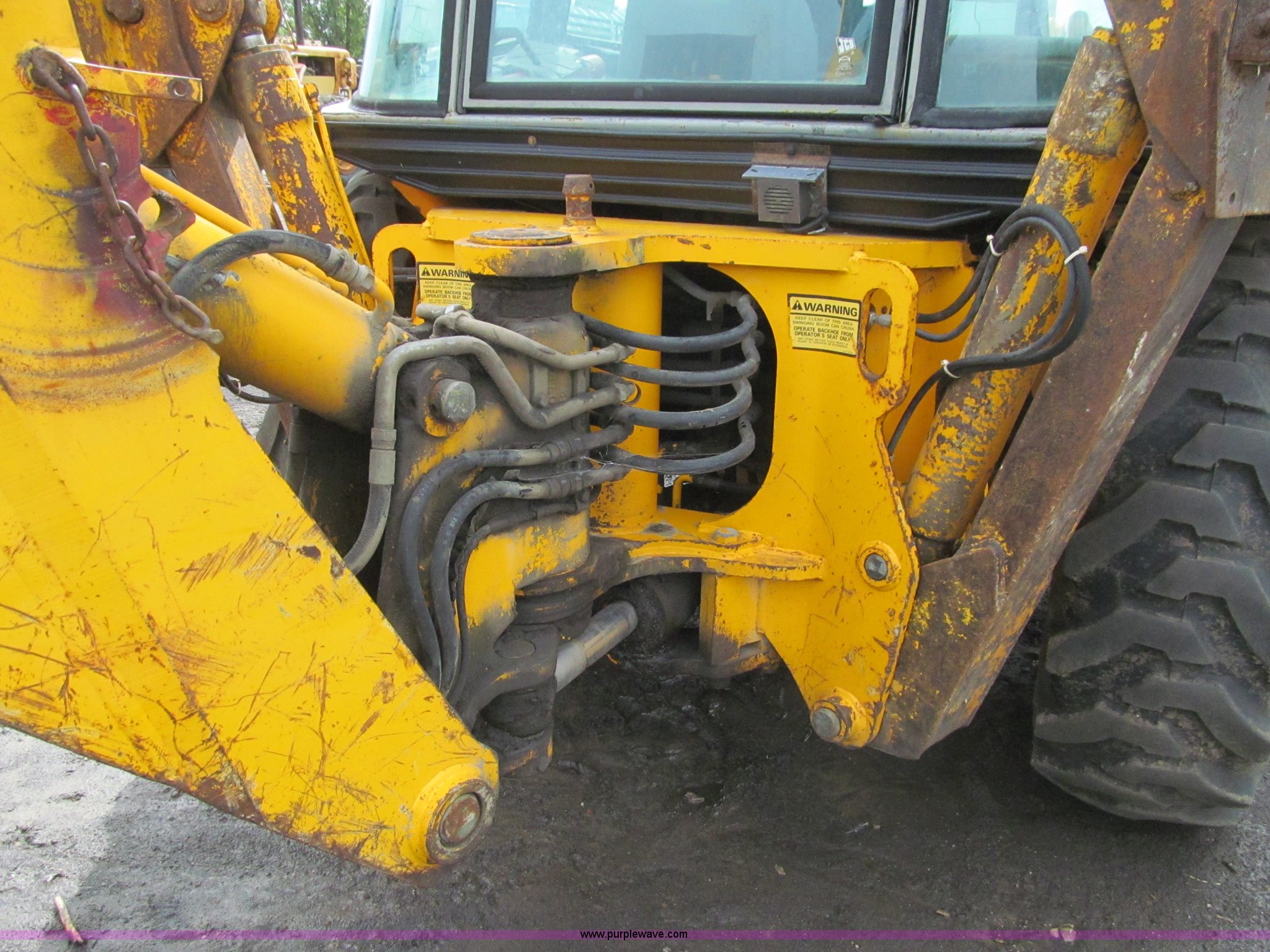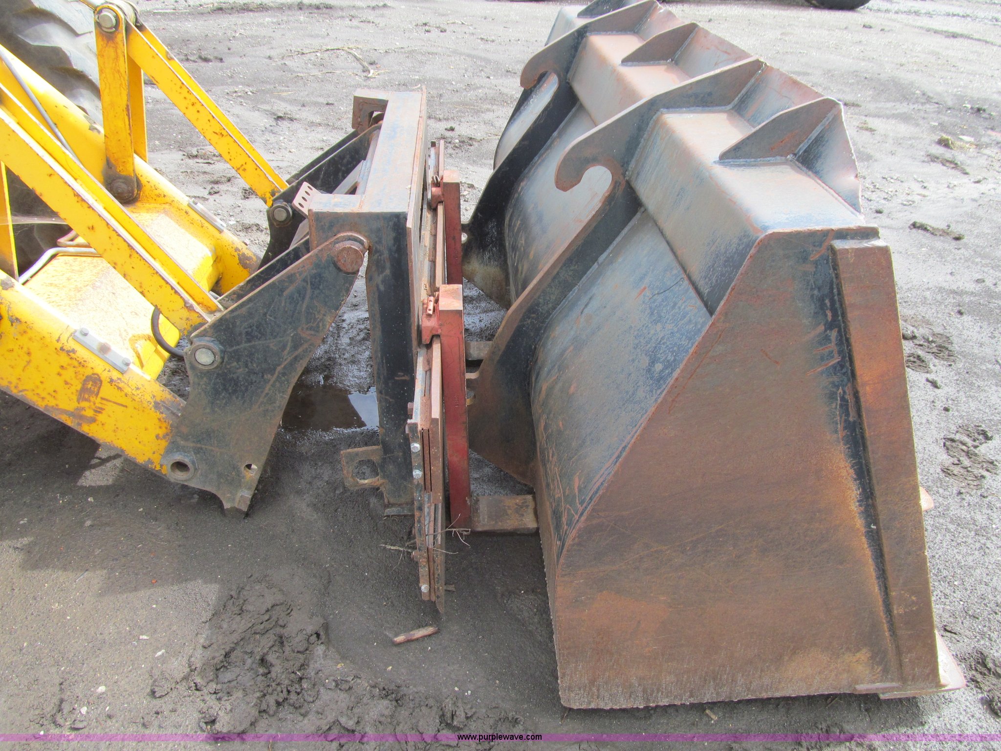 Purple Wave is selling a used Tractor Loader Backhoe in Iowa. This item is a 1992 JCB 215S backhoe with the following: 7,231 hours on meter, JCB 444 268 C.I.D. four cylinder turbo diesel engine, 97 HP, Powershift transmission, 4F-4R gears, Four wheel drive, Four wheel steer, Differential lock, EROPS, Heat, Suspension seat, Wobble stick backhoe controls, Wipers, Hydraulic quick coupler, E-stick, 28"W backhoe bucket, (5) teeth, Outriggers, Street pads, Pallet forks, 42"L, Adjustable width carriage, Firestone 16.9-28 front tires, Firestone 16.9-28 rear tires, 18,223 lbs. base operating weight, Left engine enclosure bent, Non-operational driver's side door latch, Serial 215SOCPE408027, Unit# 3035