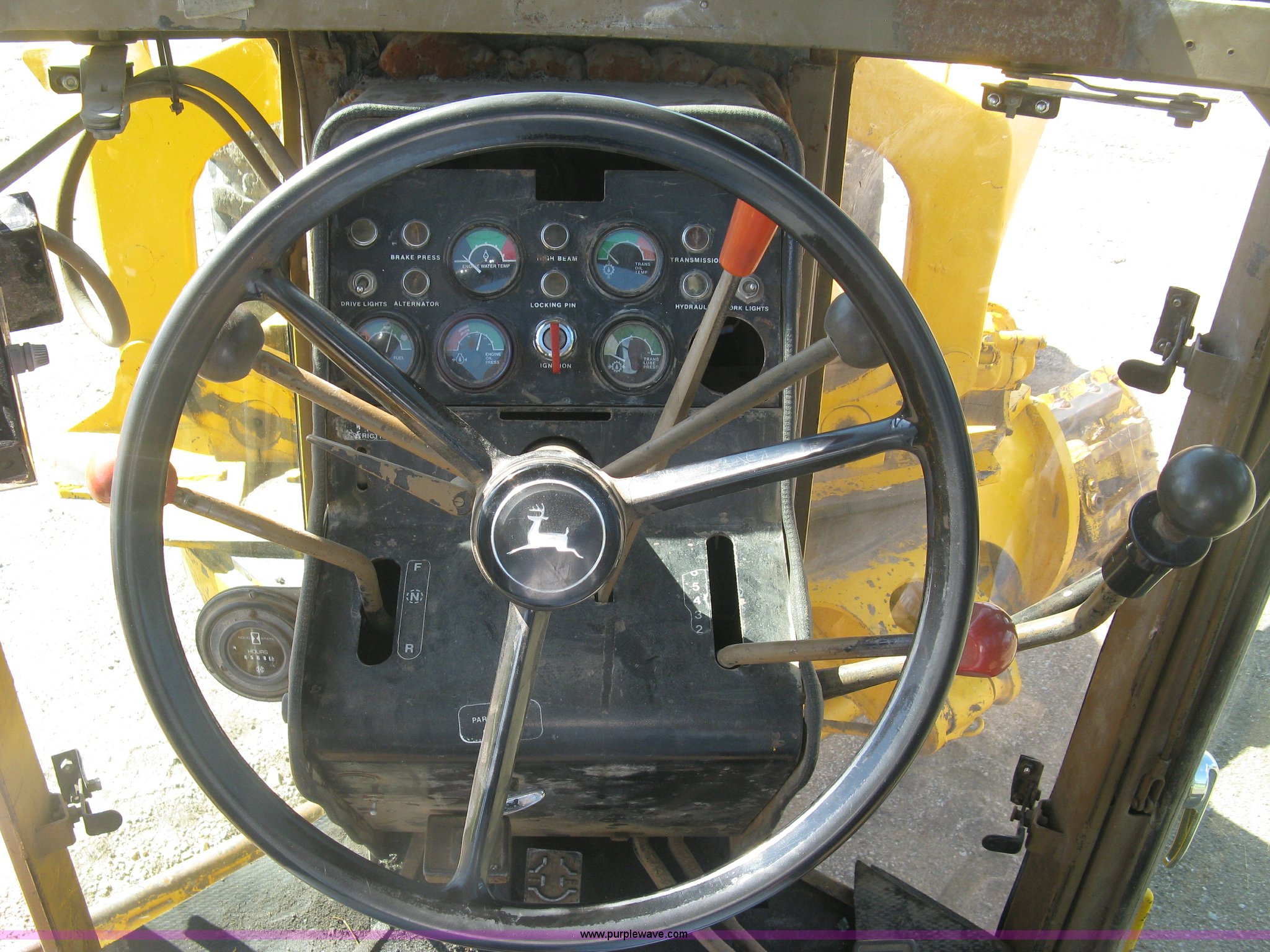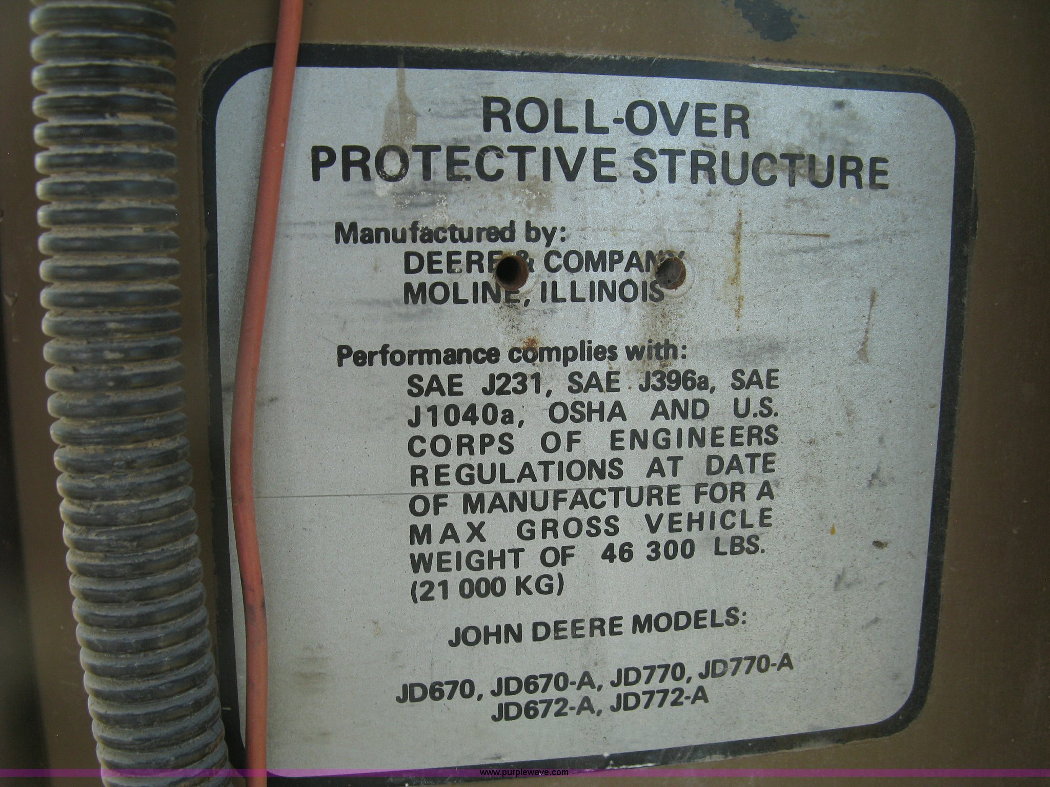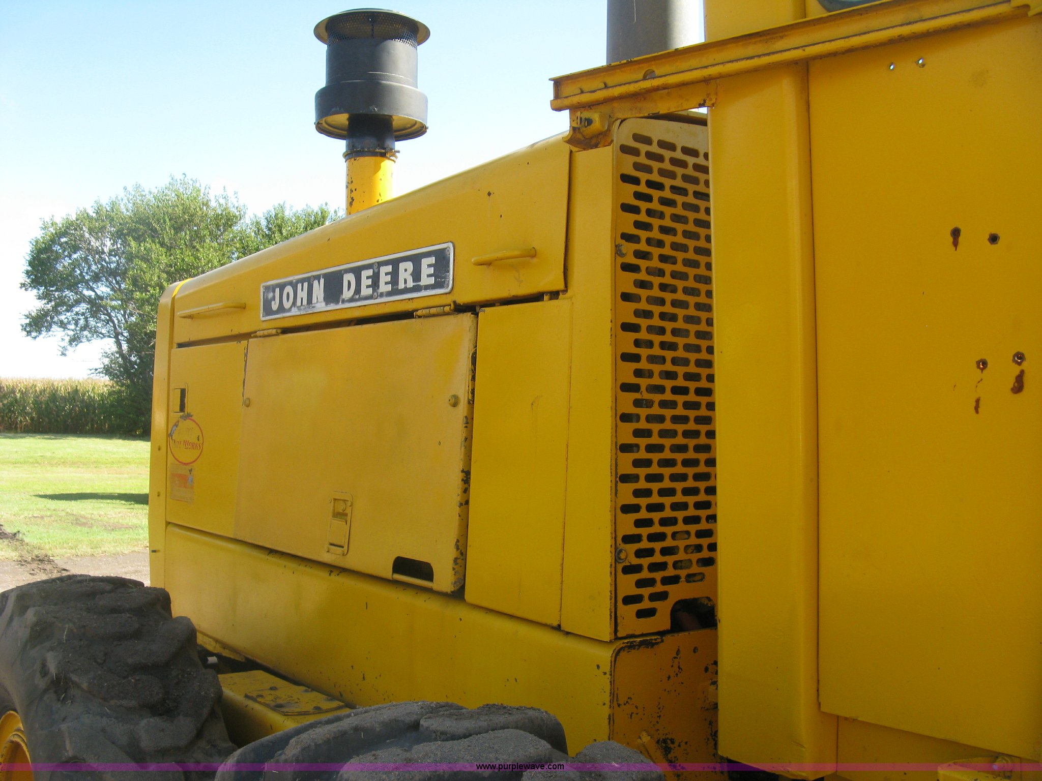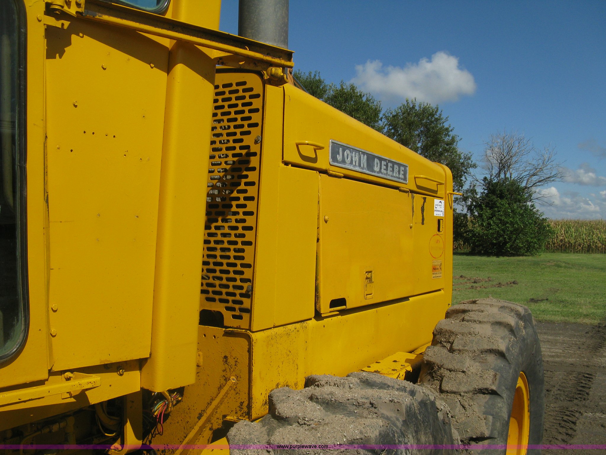 Purple Wave is selling a used Motor Grader in Kansas. This item is a 1979 John Deere 770 motor grader with the following: 8,568 hours on meter, John Deere 6531 six cylinder diesel engine, Powershift transmission, EROPS, AC and heat, AM/FM, Suspension seat, 14'W moldboard, Front mounted scarifier, (3) teeth, 14.00-24TG tires, Crankshaft and bearings replaced, Windshield cracked, AC need charged, Serial 770A-08998T