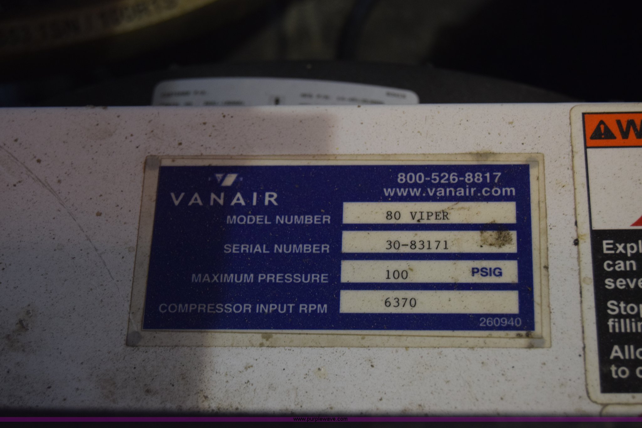 Vanair Viper air compressor has sold in Wichita, Kansas for $4510. Item BO9746 sold on October 14th, 2015.