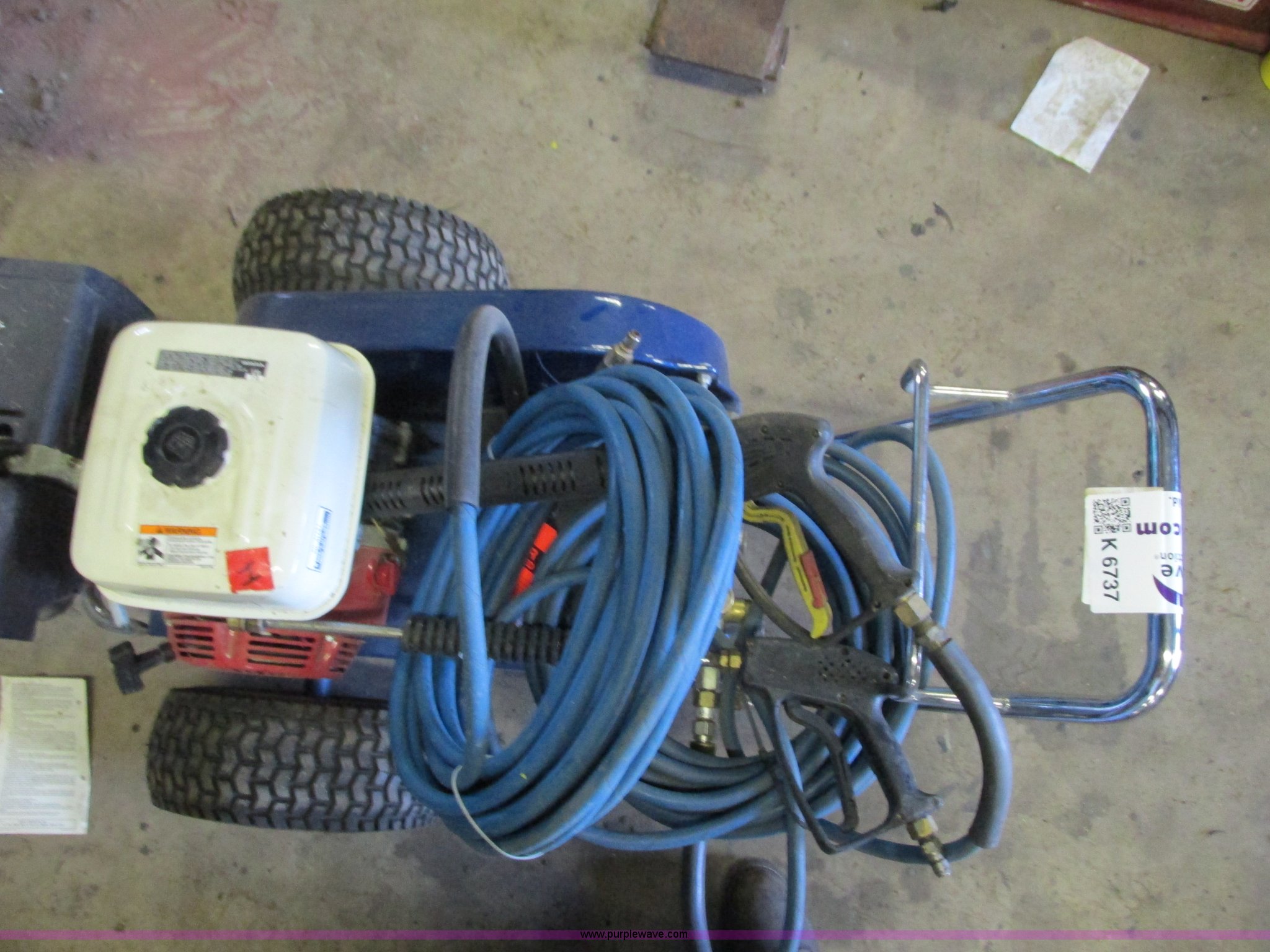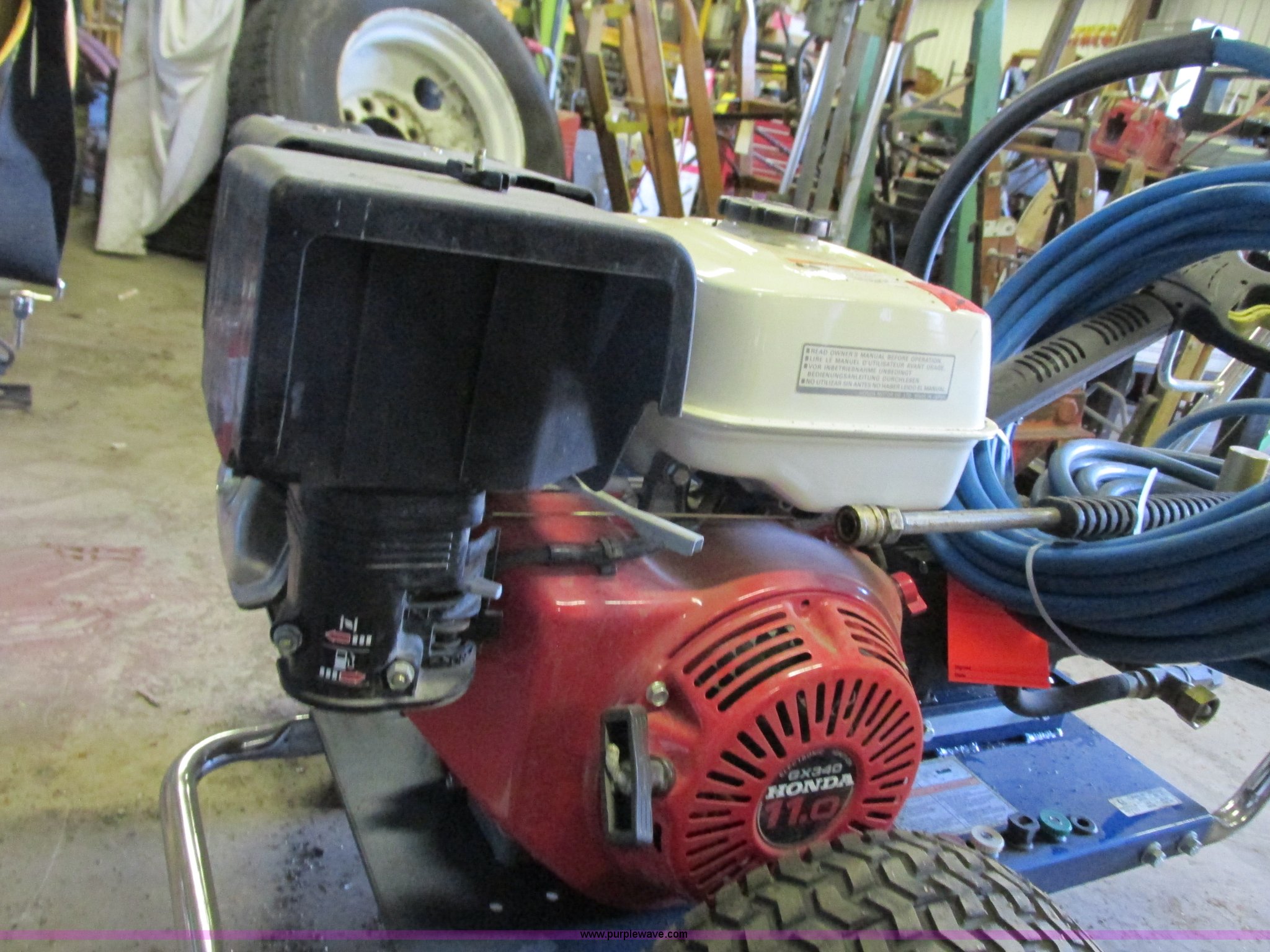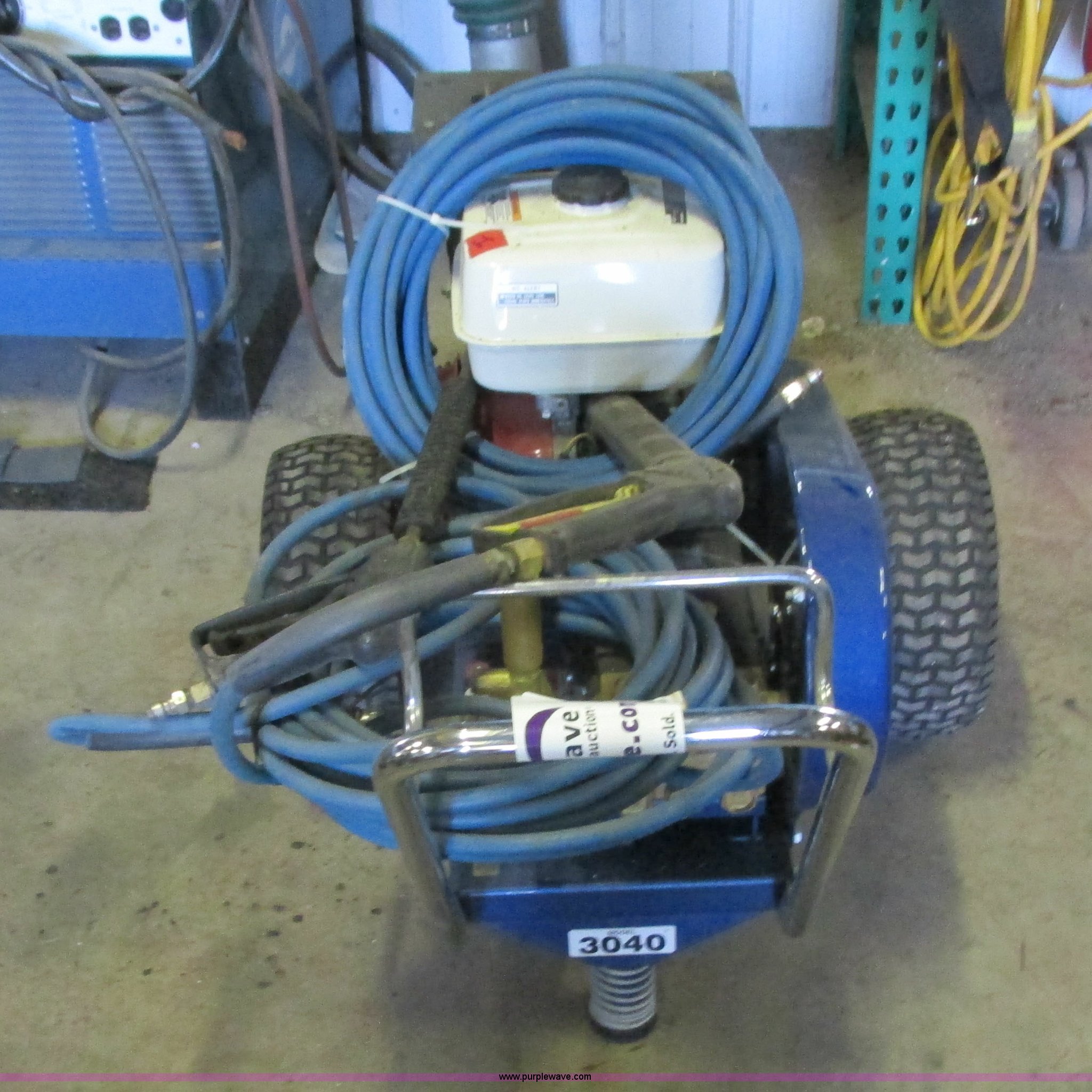 Purple Wave is selling a used Pressure Washer in Minnesota. This item is a Graco pressure washer with the following: Honda 11 HP gas engine, (2) guns, Hose, 3,000 psi, Additional nozzle tips