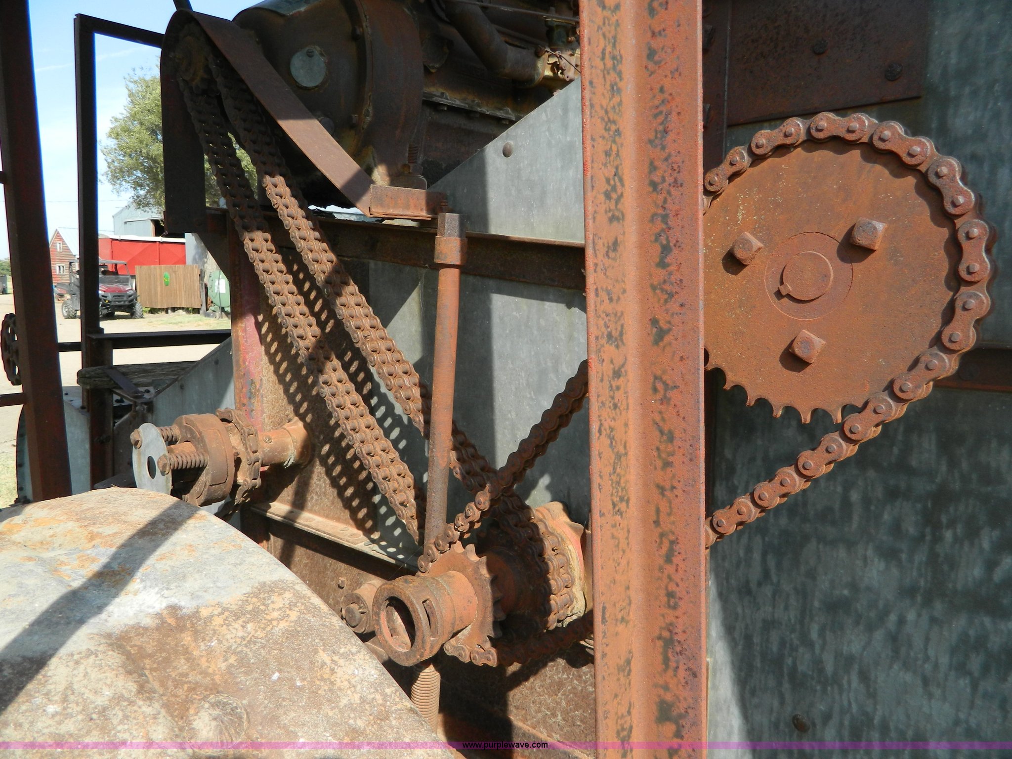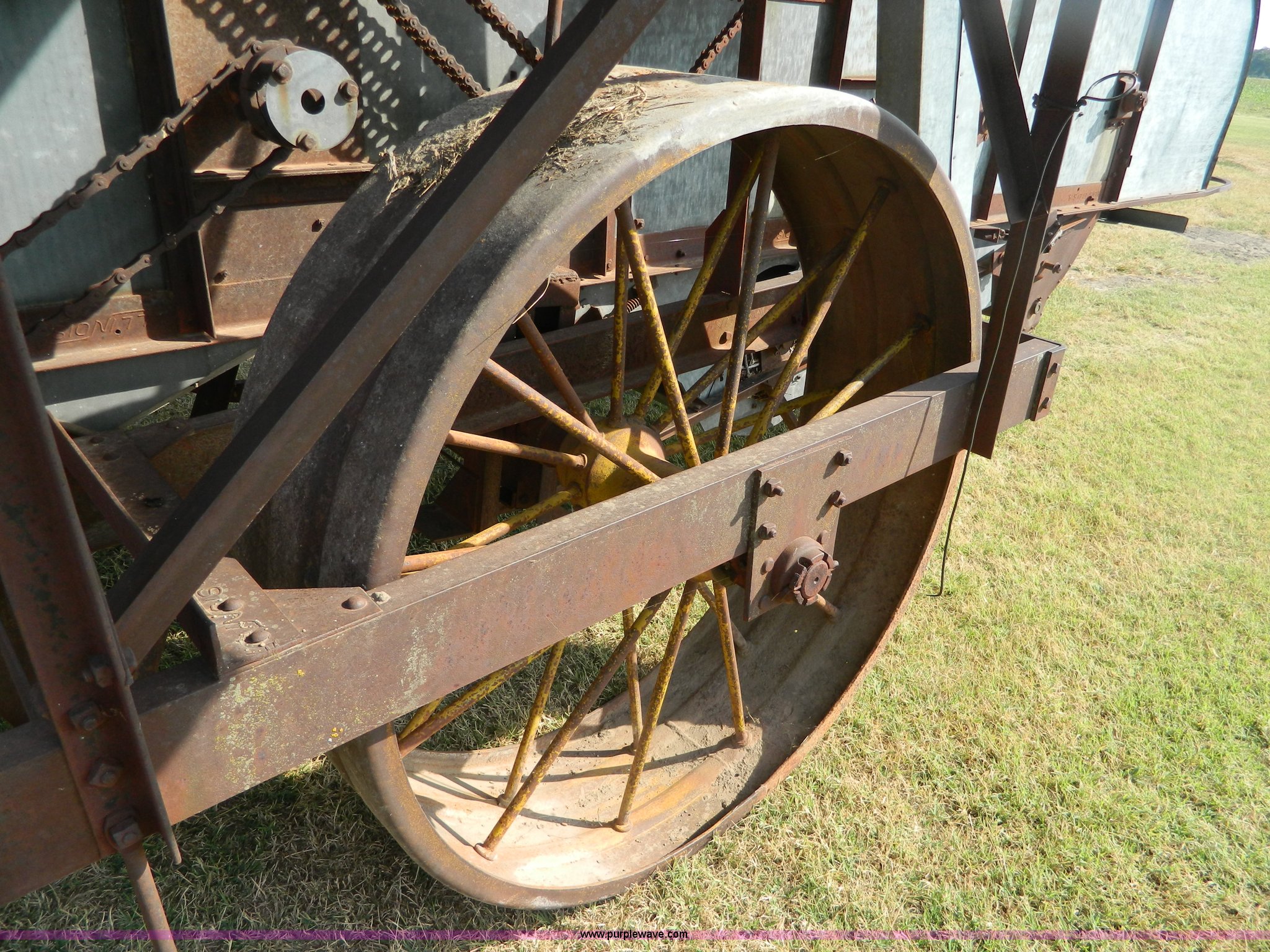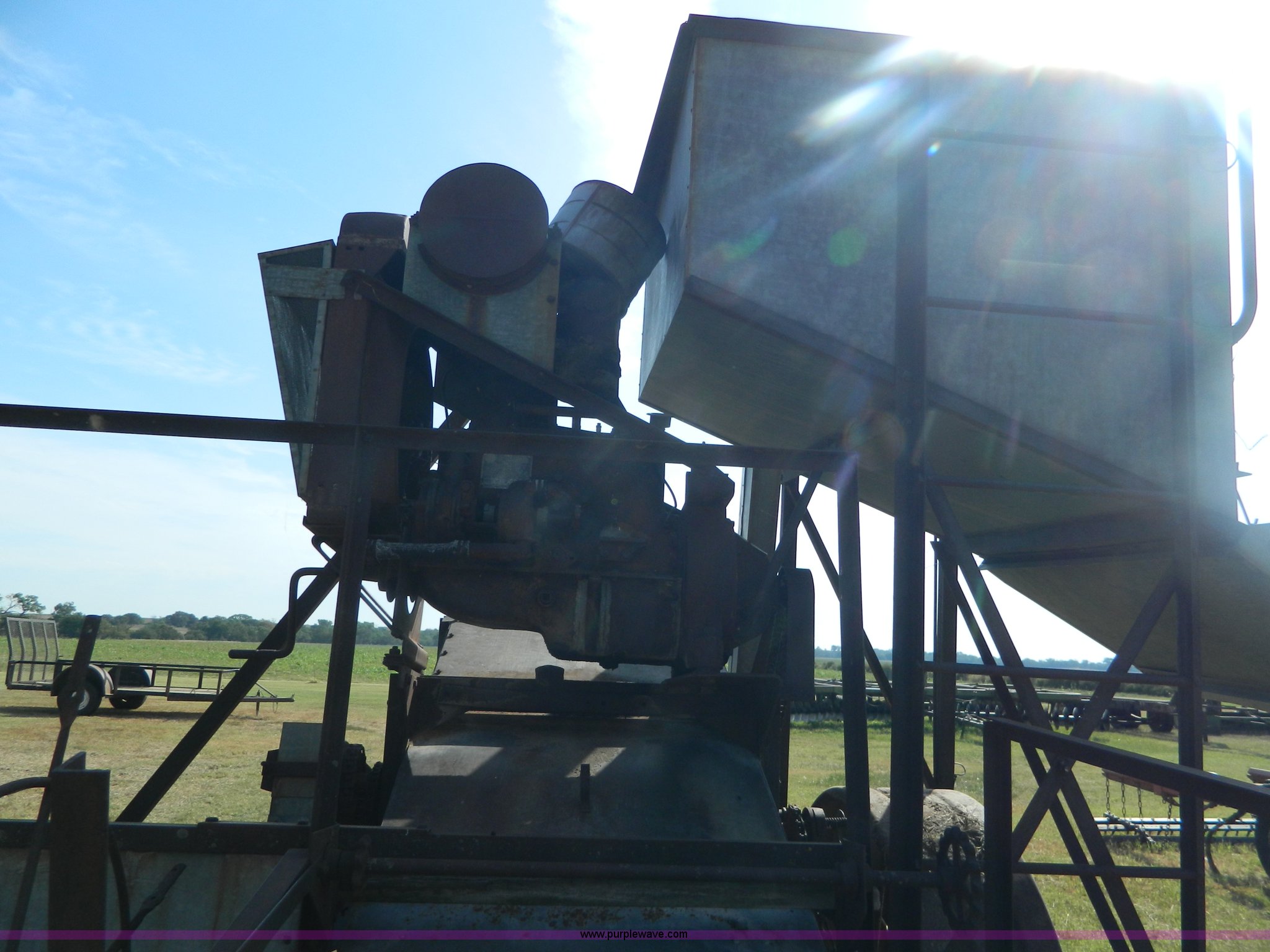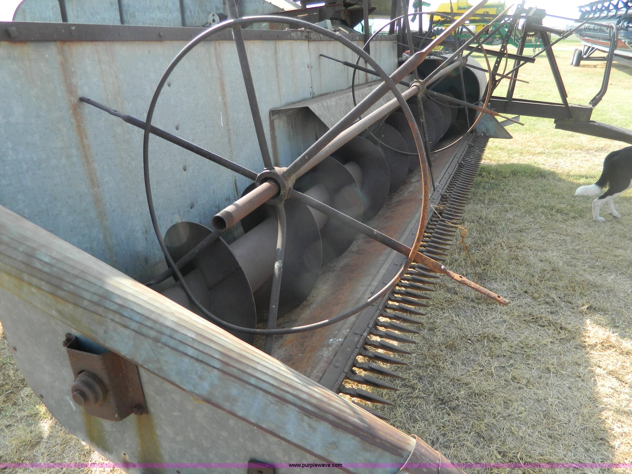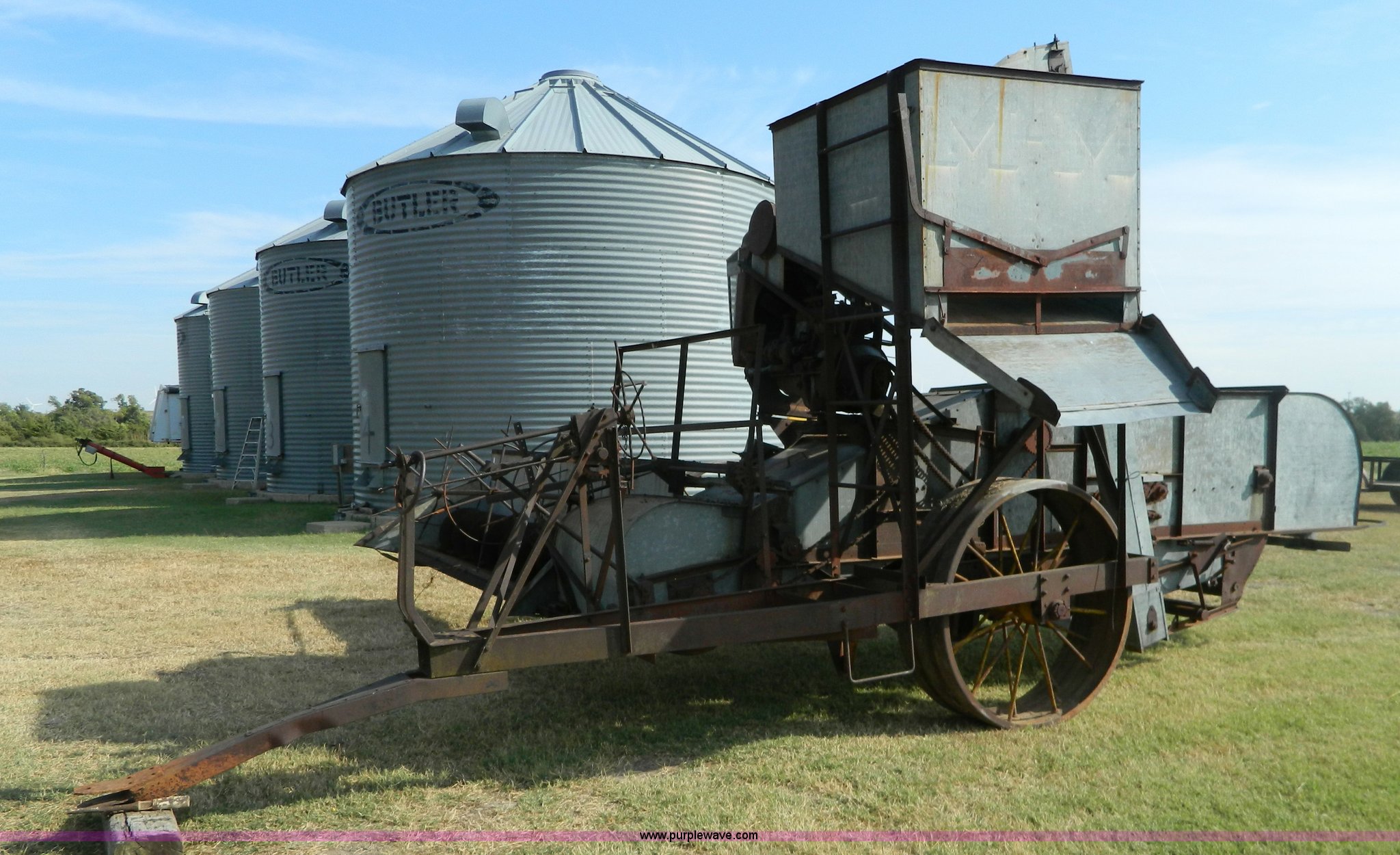 Purple Wave is selling a used Combine in Kansas. This item is a Minneapolis Moline G pull type harvester with the following: Hercules OOC gas engine, Serial 230094, 12' head, Pin hitch, Serial 75292