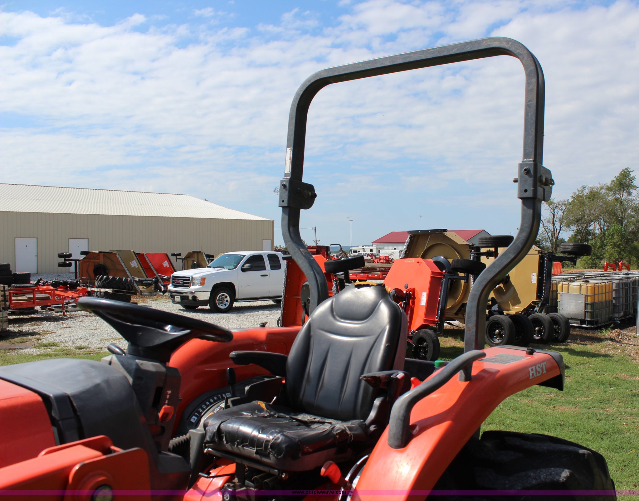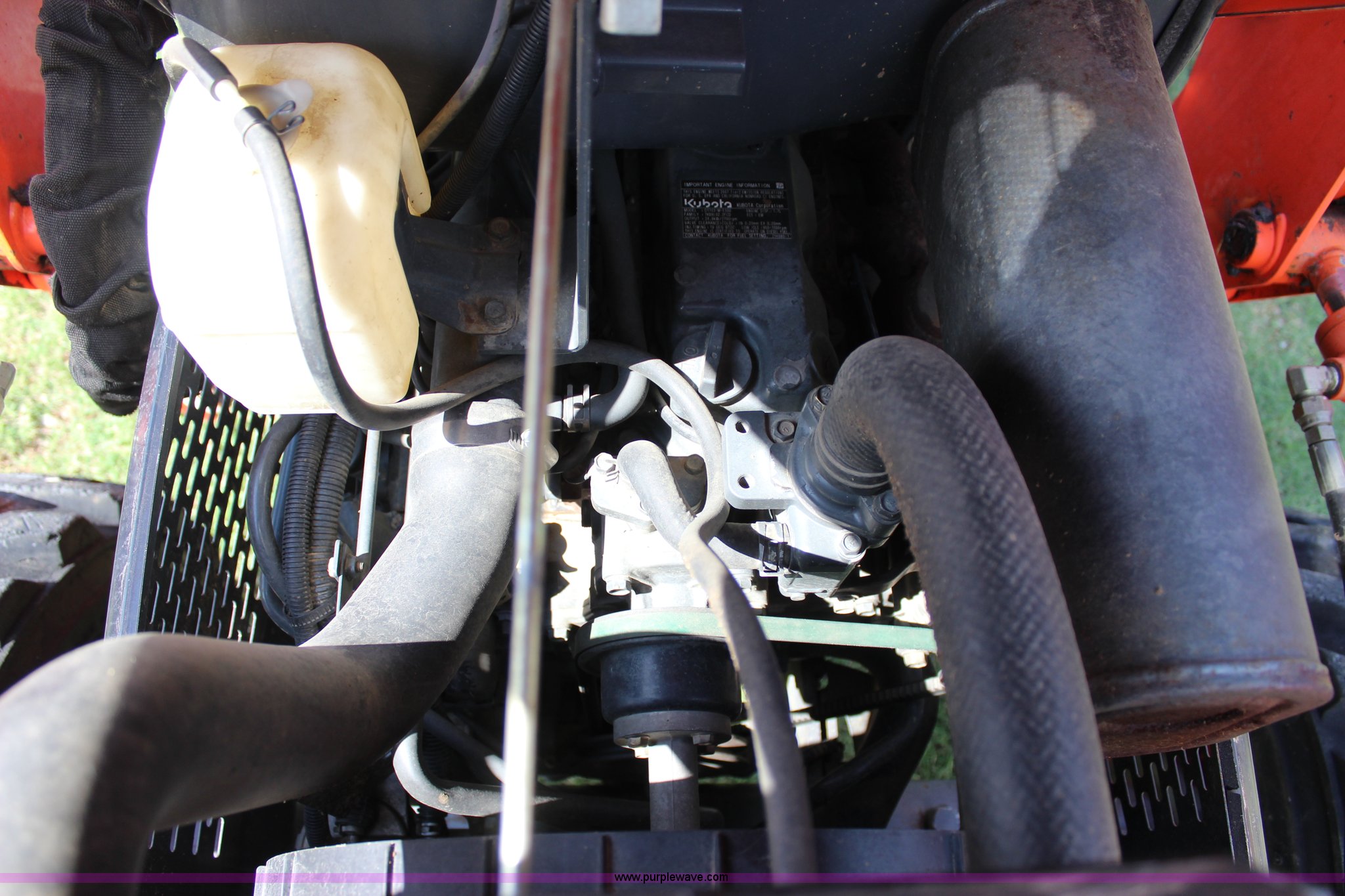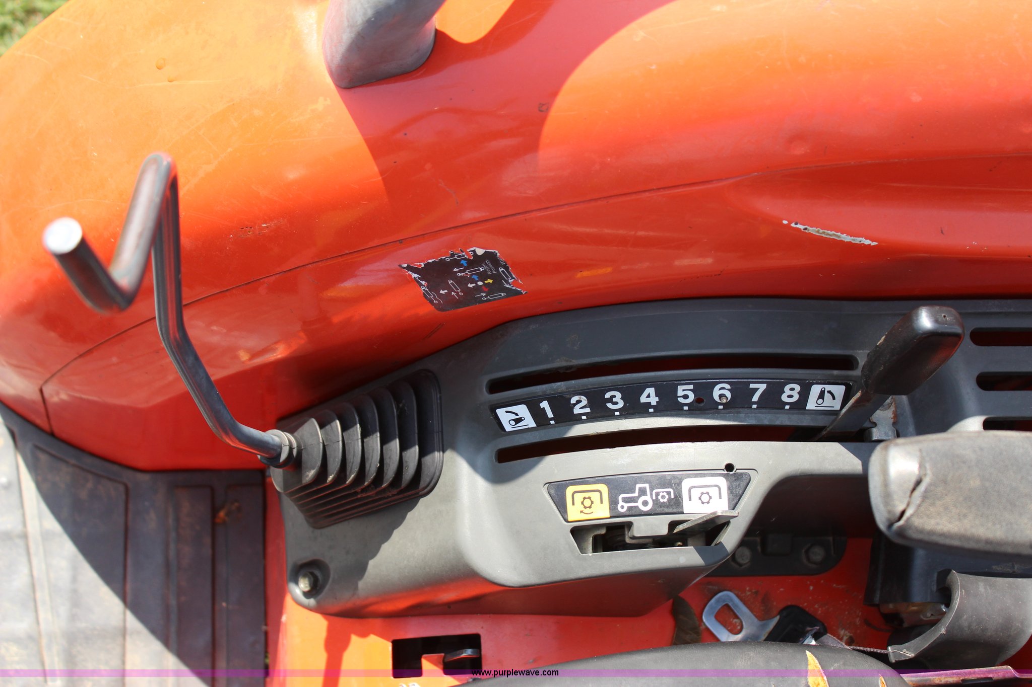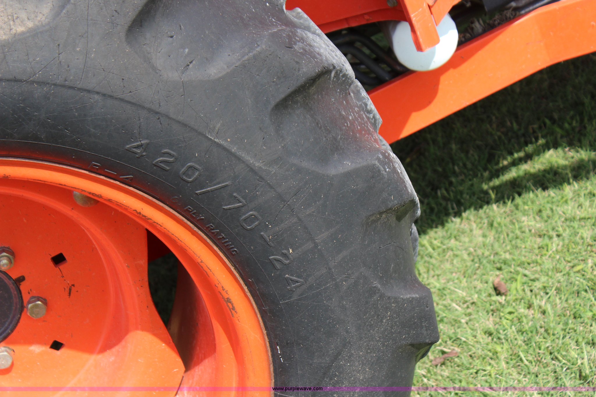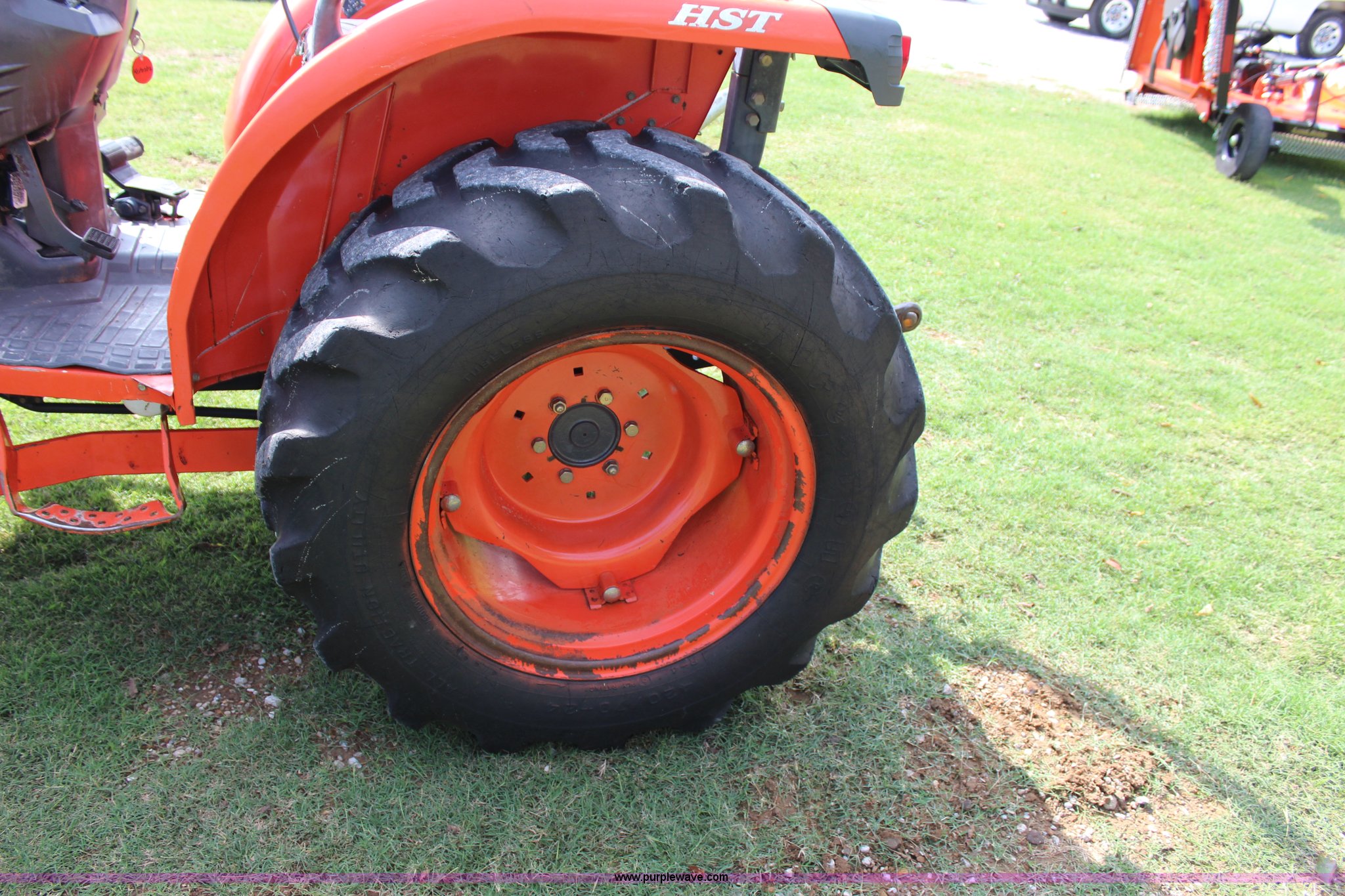Purple Wave is selling a used Tractor in Oklahoma. This item is a 2007 Kubota L3240 tractor with the following: 1,933 hours on meter, Kubota four cylinder diesel engine, 8F-8R gears, Differential lock, ROPS, Model SFL-F354, Serial 06192, Tilt steering wheel, Suspension seat, Kubota LA724 loader, 70"W bucket, Joystick loader controls, Serial A3841, Three point, 540 PTO, Front hydraulic remote sets, 10-16.5 NHS front tires, 420/70-24 rear tires, Serial 35300