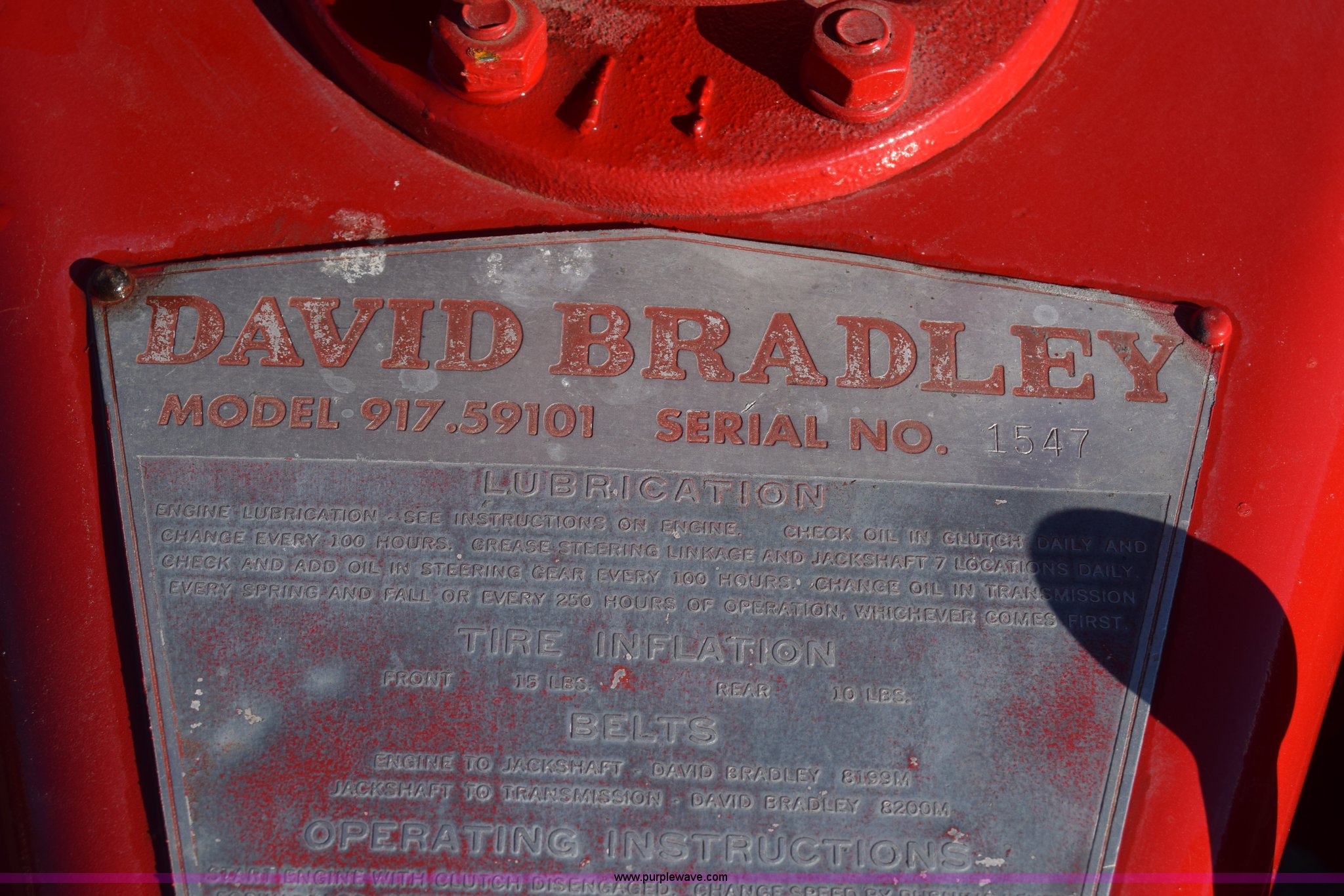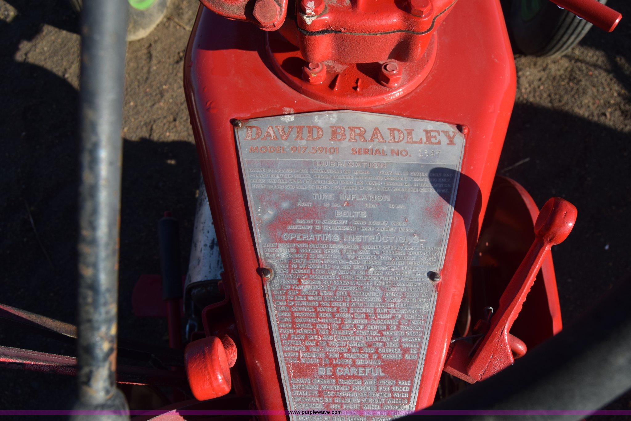 Purple Wave is selling a used Tractor in Kansas. This item is a David Bradley tractor with the following: Model 91759101, Gas engine, Manual transmission, Belt drive, Belts removed, 4.00-12 tires