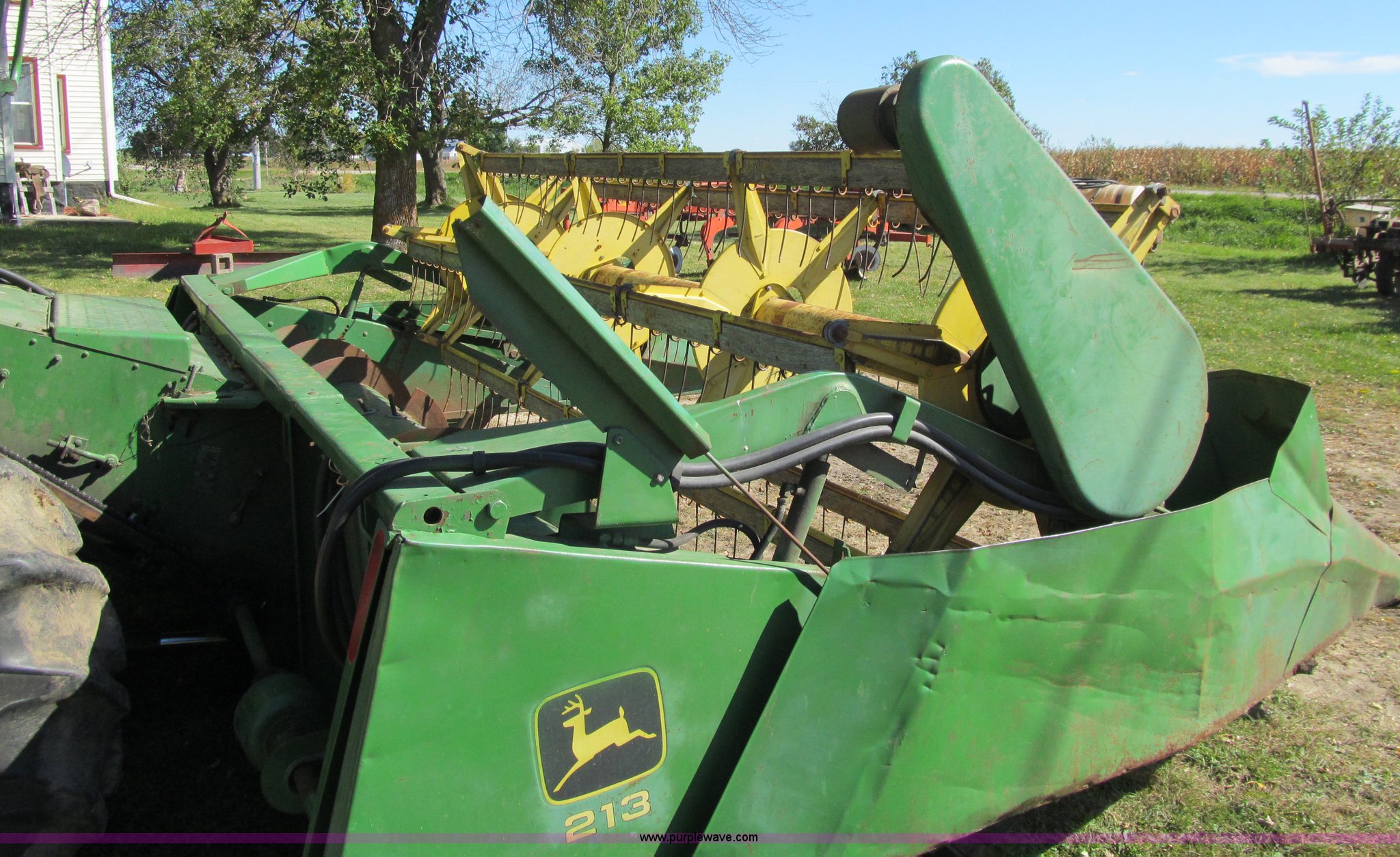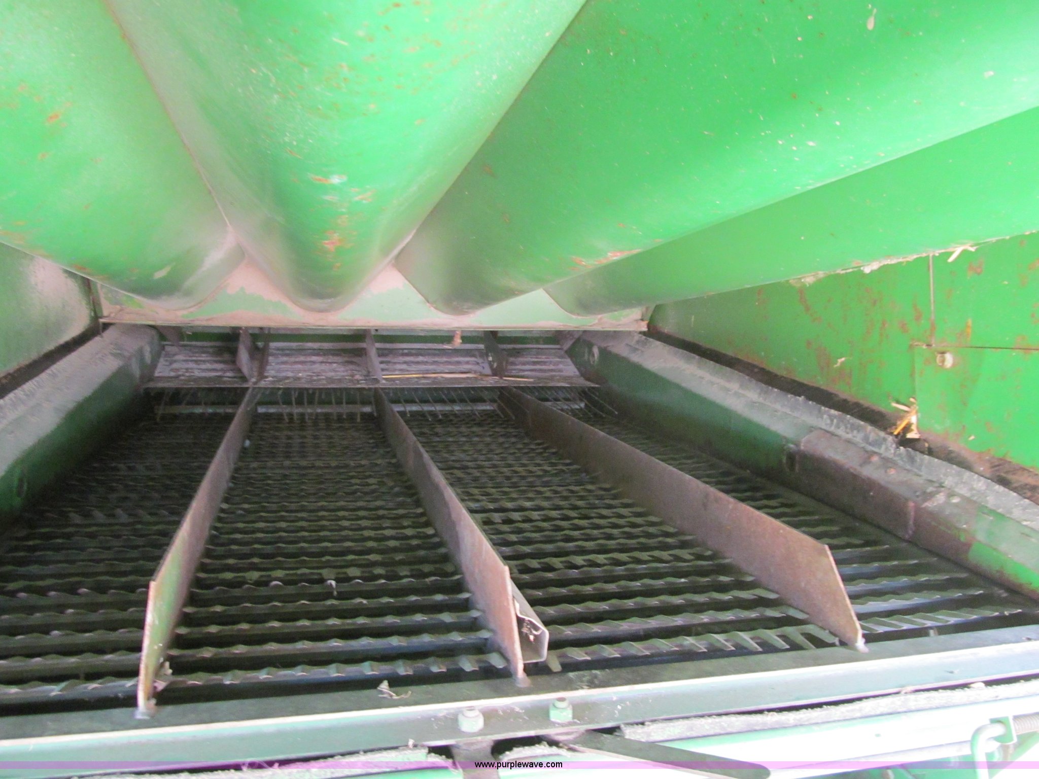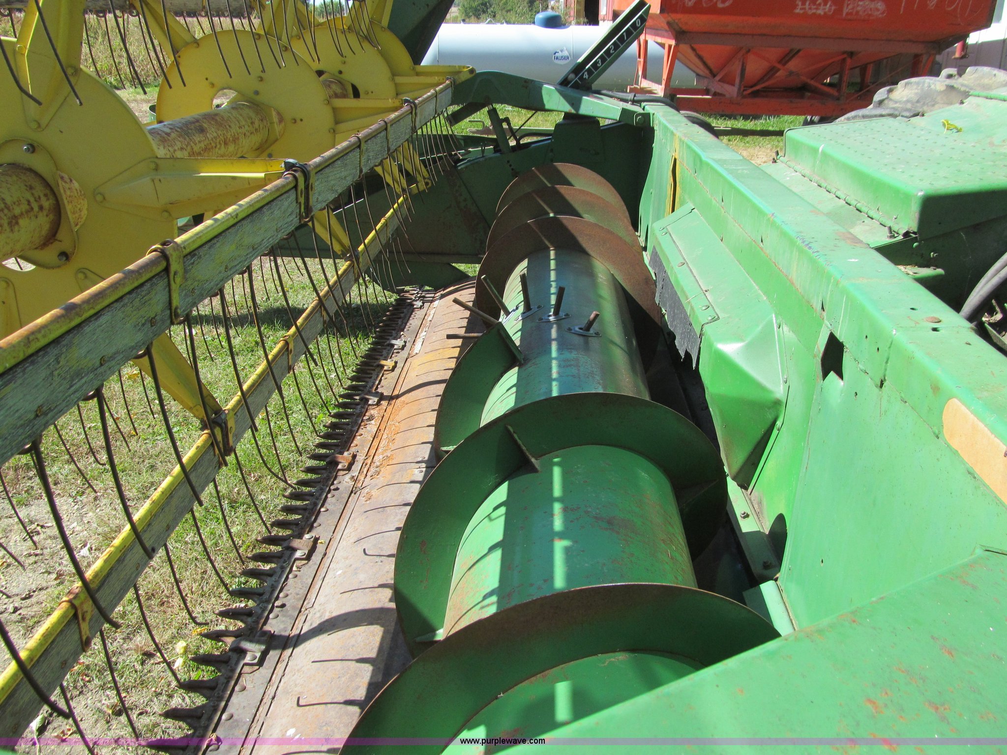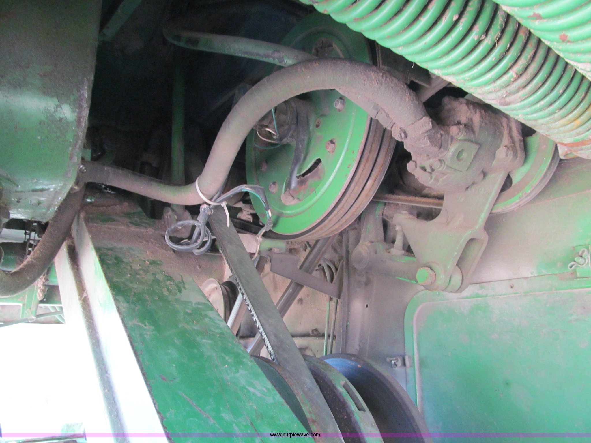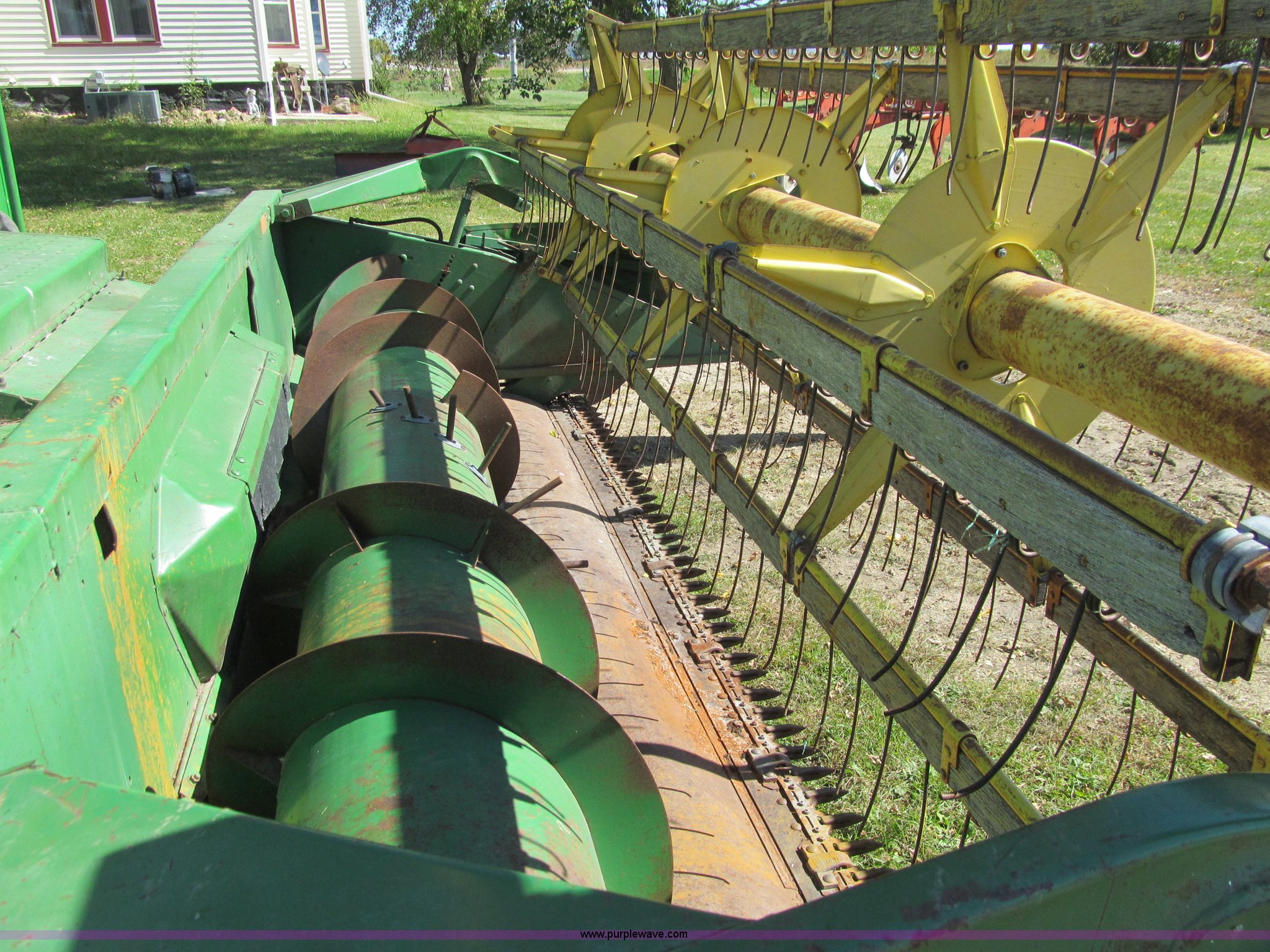 Purple Wave is selling a used Combine in Iowa. This item is a 1976 John Deere 4400 combine with the following: 3,577 engine hours on meter, John Deere six cylinder gas engine, Manual transmission, 4F-1R gears, Heat, Non-operational, Tilt steering wheel, Suspension seat, Chaff spreader, 11'L unloading auger, John Deere 213 flex platform head, Finger reel, Steel skid plates, Hydraulic reel height control, Dual drive lines, Serial 225009H, 128" wheelbase, 18.4-26 front tires, 11L-16 rear tires, Manuals, Serial E4400-007631H