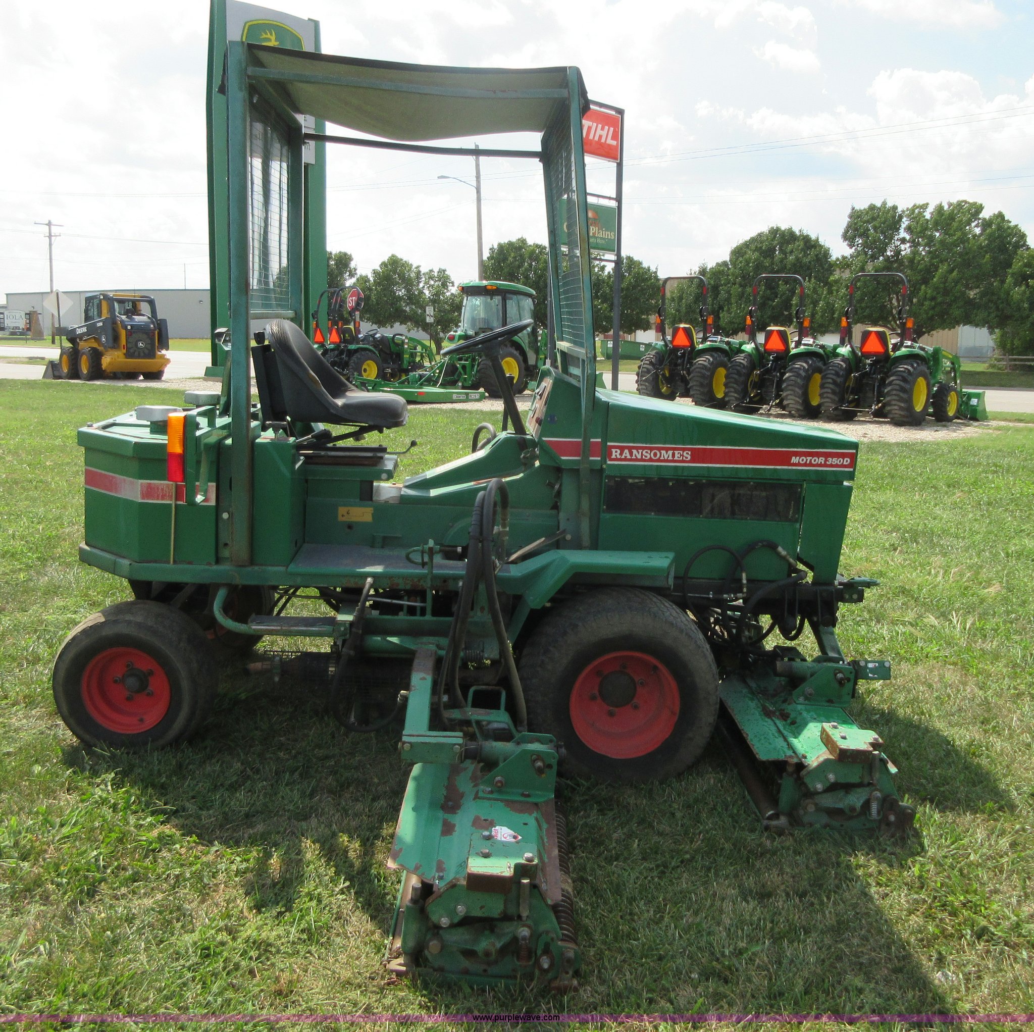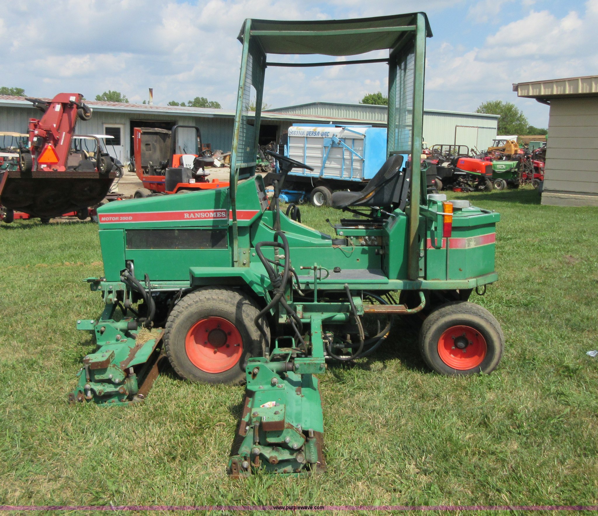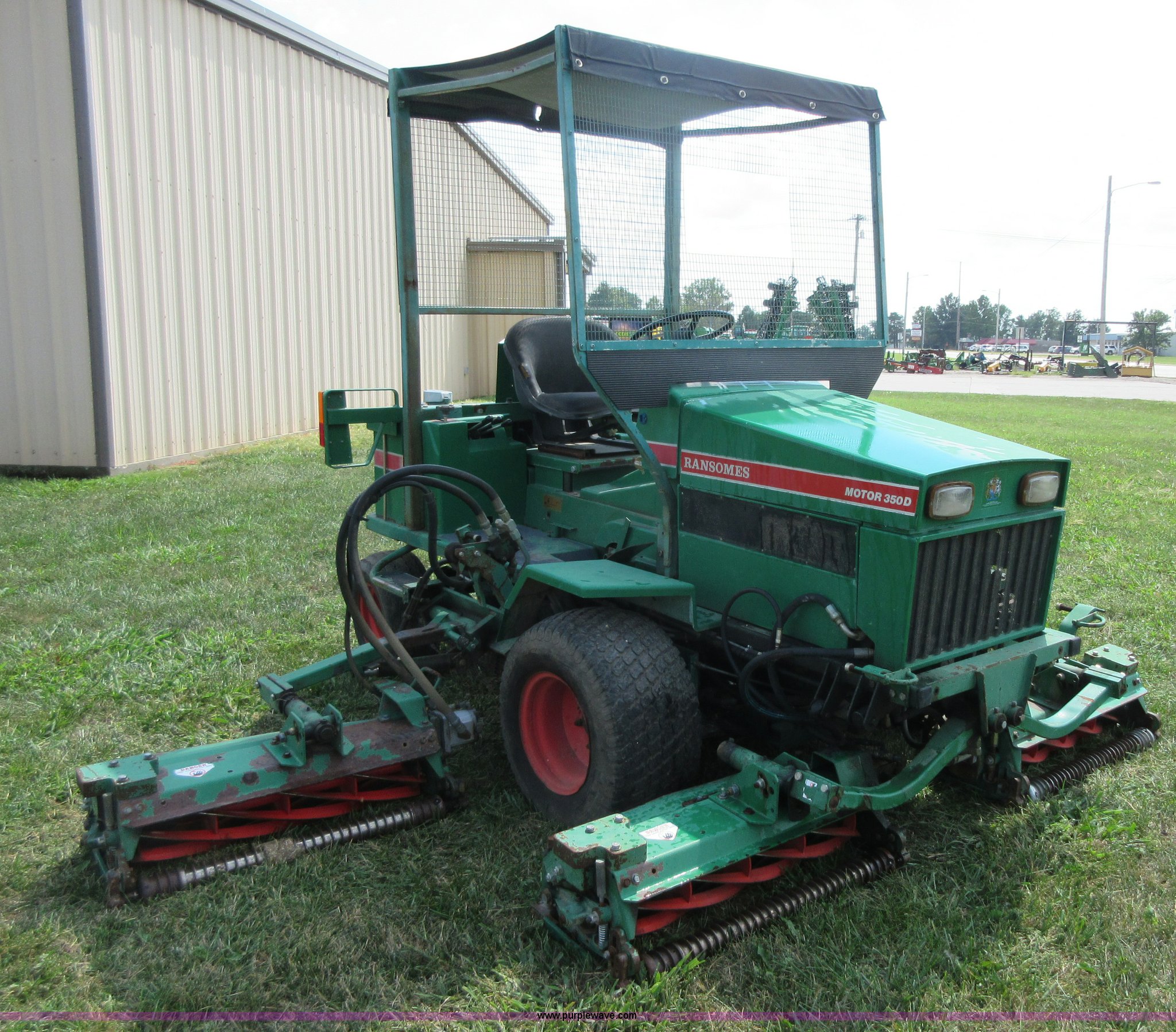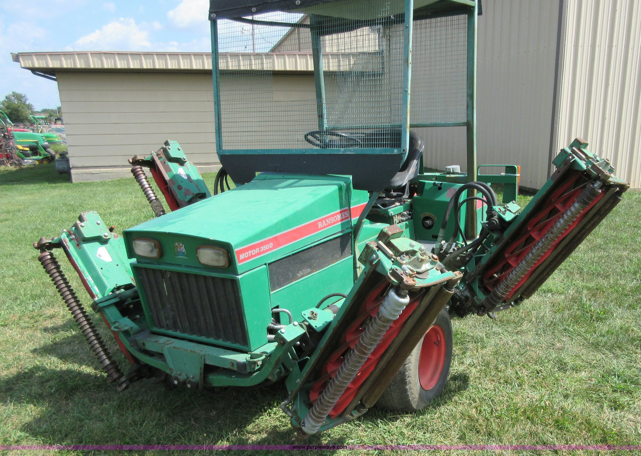 Purple Wave is selling a used Commercial Turf Mower in Kansas. This item is a Ransomes 350D-MK3 fairway lawn mower with the following: 4,840 hours on meter, 10' cut, Kubota V1902 four cylinder diesel engine, 40 HP, Hydrostatic transmission, (5) 32" reel mowers, Serial HJ00970