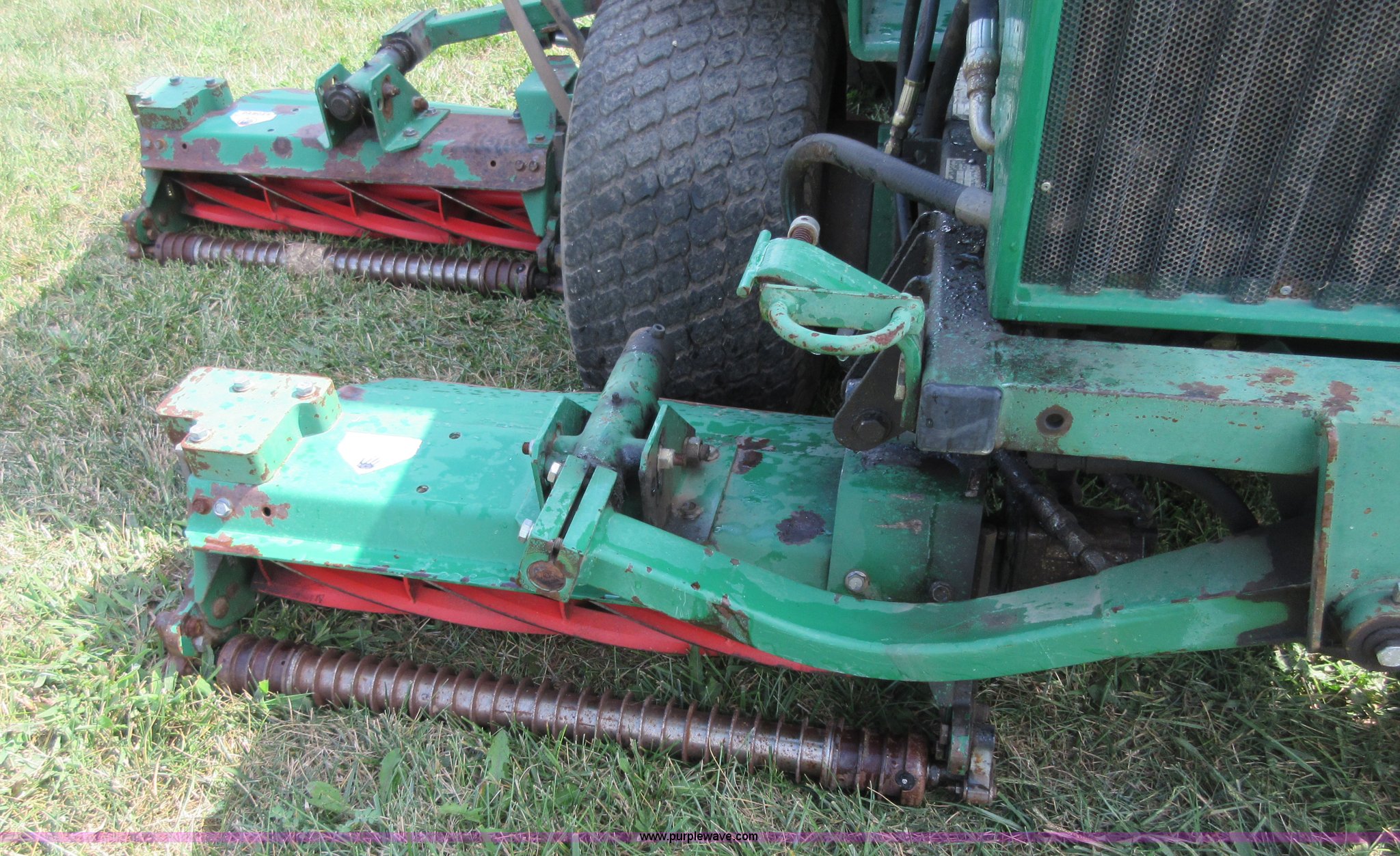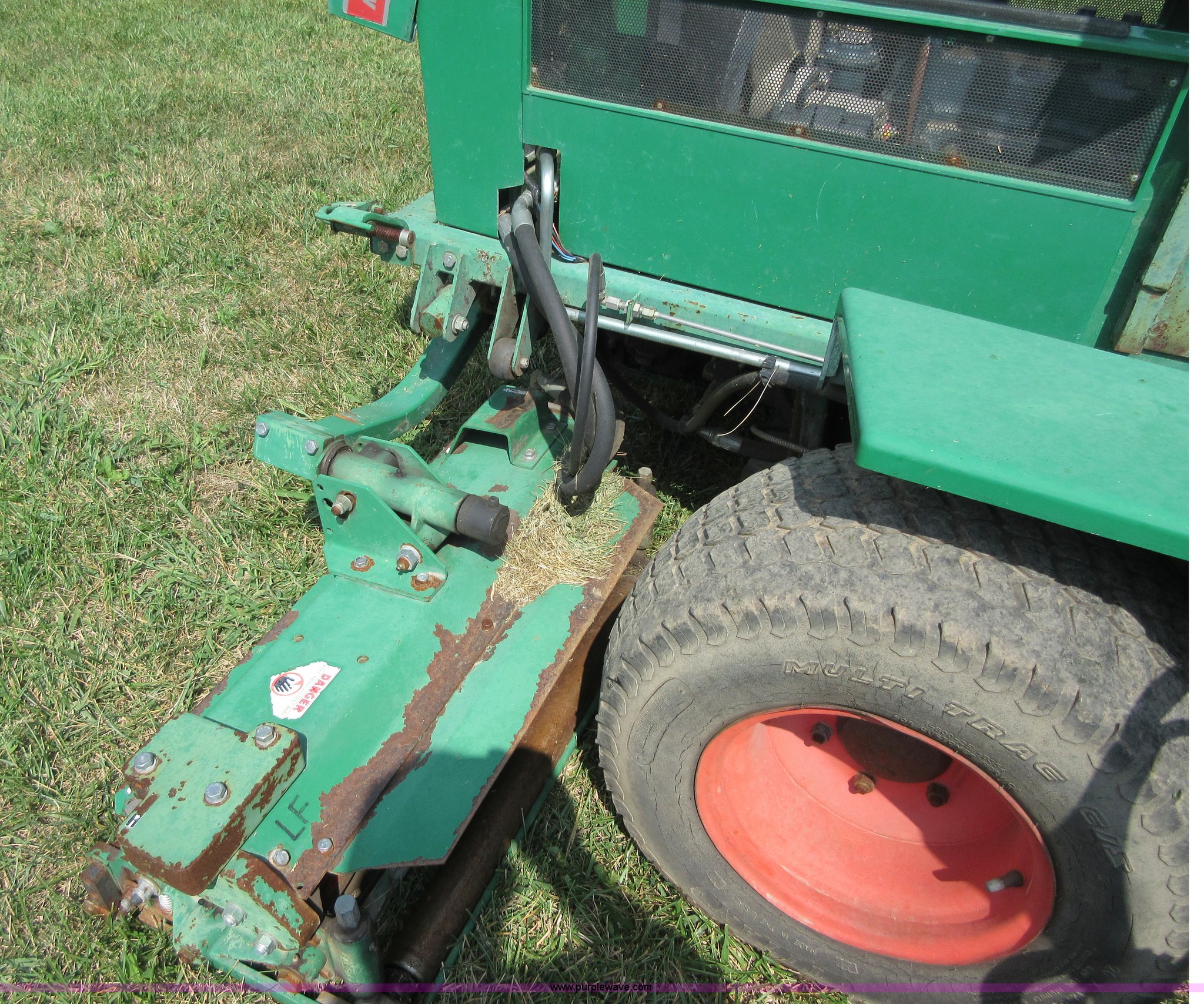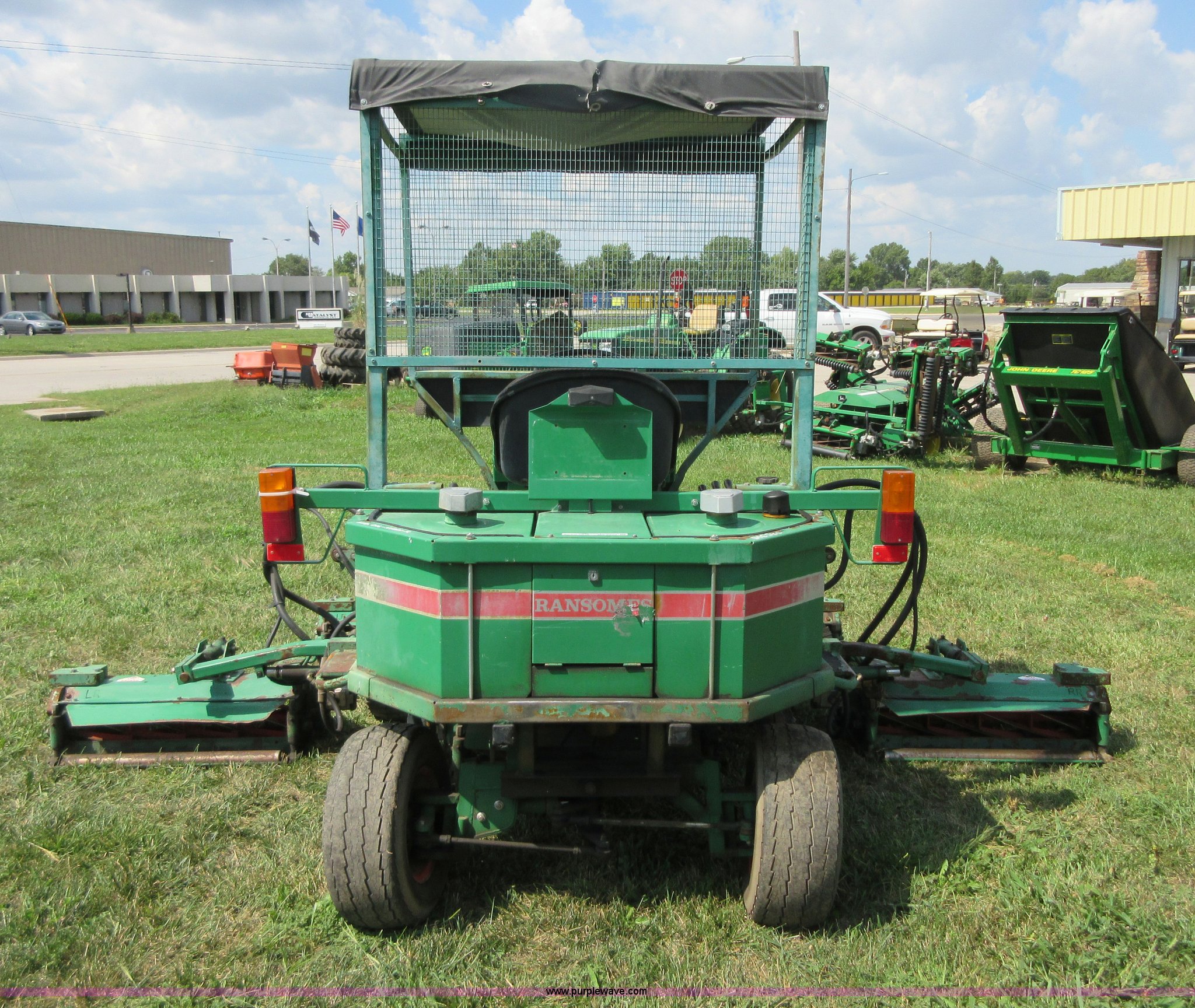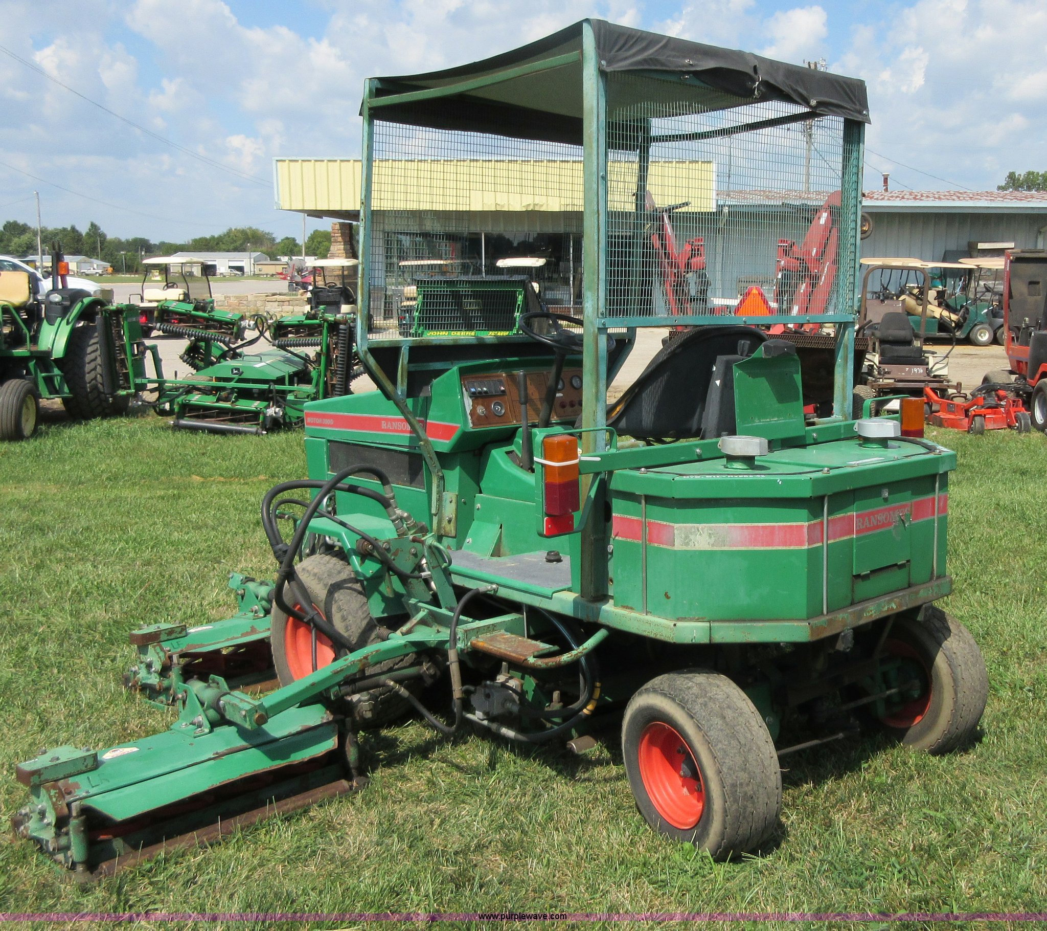 Purple Wave is selling a used Commercial Turf Mower in Kansas. This item is a Ransomes 350D-MK3 fairway lawn mower with the following: 4,840 hours on meter, 10' cut, Kubota V1902 four cylinder diesel engine, 40 HP, Hydrostatic transmission, (5) 32" reel mowers, Serial HJ00970