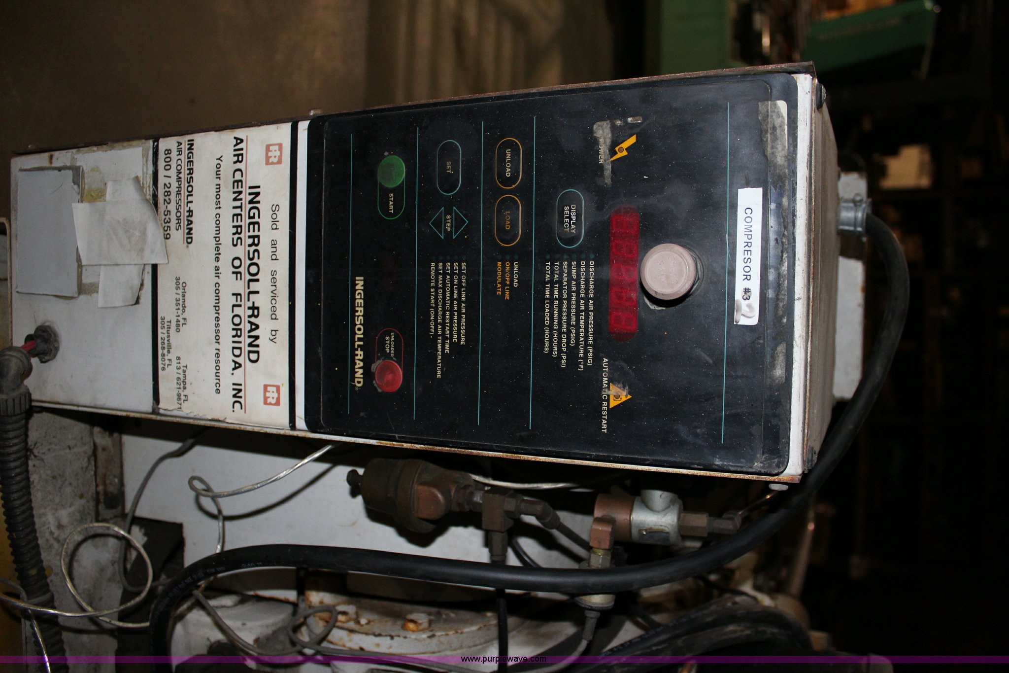 Purple Wave is selling a used Air Compressor in Kansas. This item is a Ingersoll Rand air compressor with the following: 20 HP, Three phase, 120 gallon capacity, Operational when removed from service one year ago, Unknown operating condition