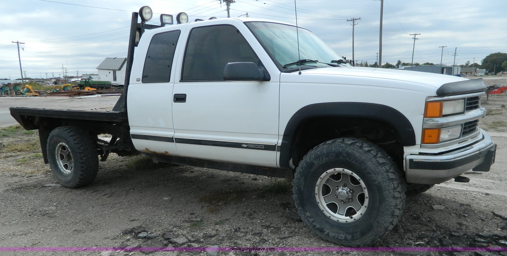 This 1998 Chevrolet 1500 Ext. Cab flatbed pickup truck will sell to the highest bidder regardless of price.