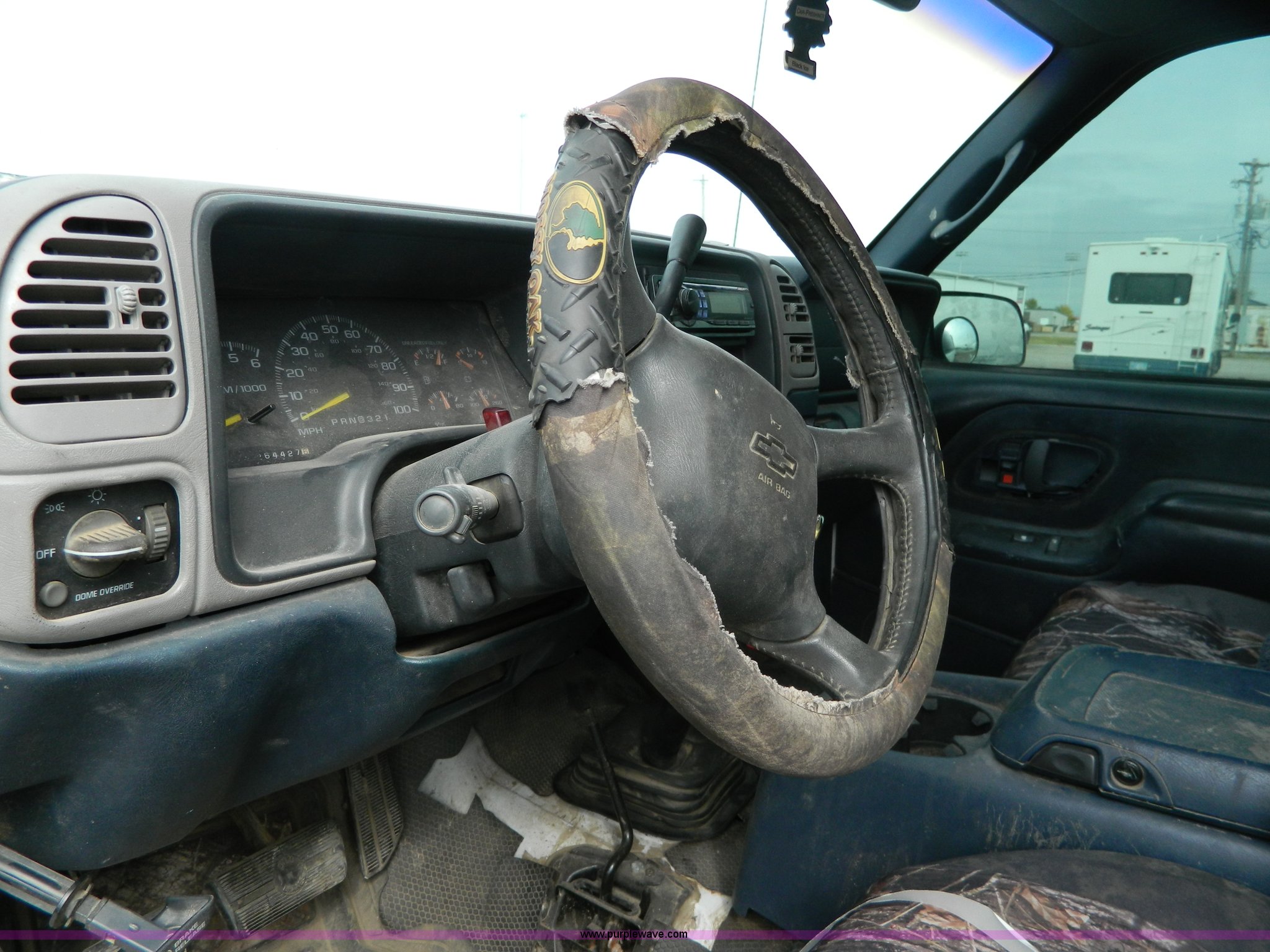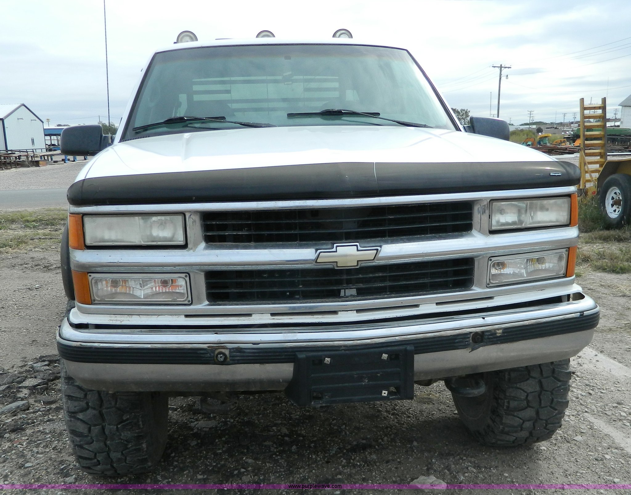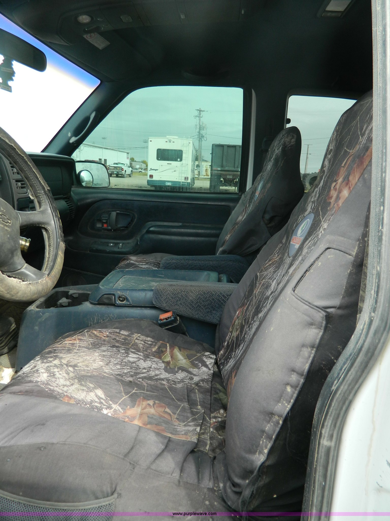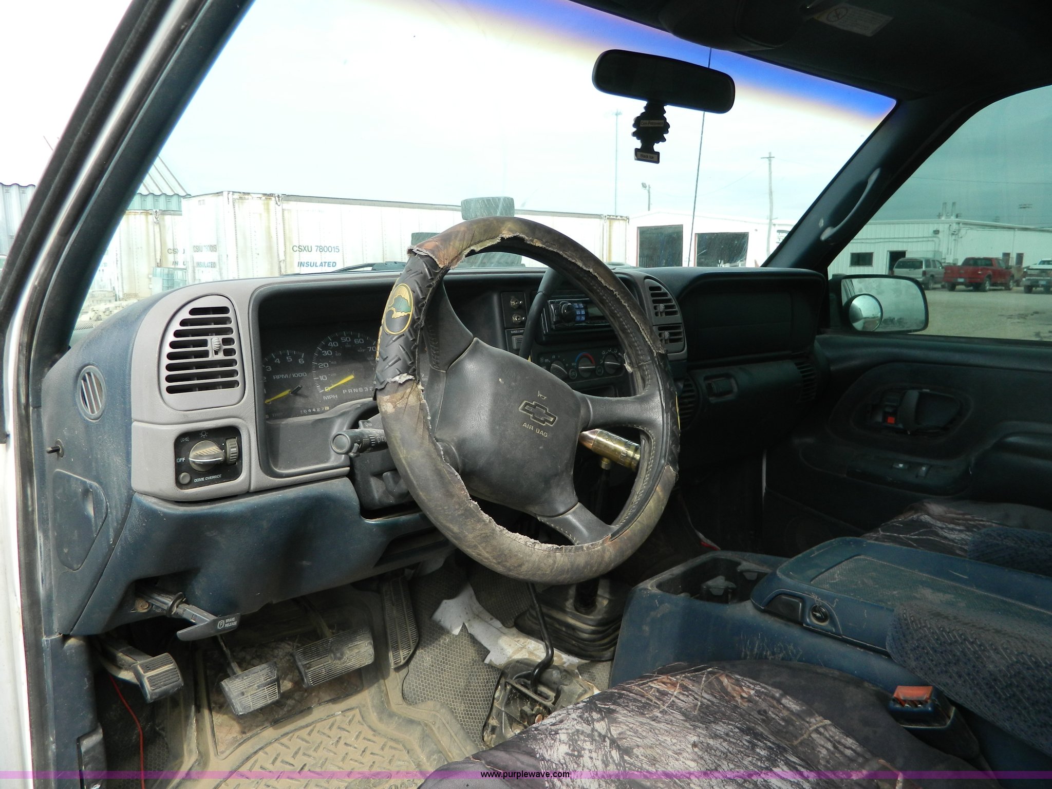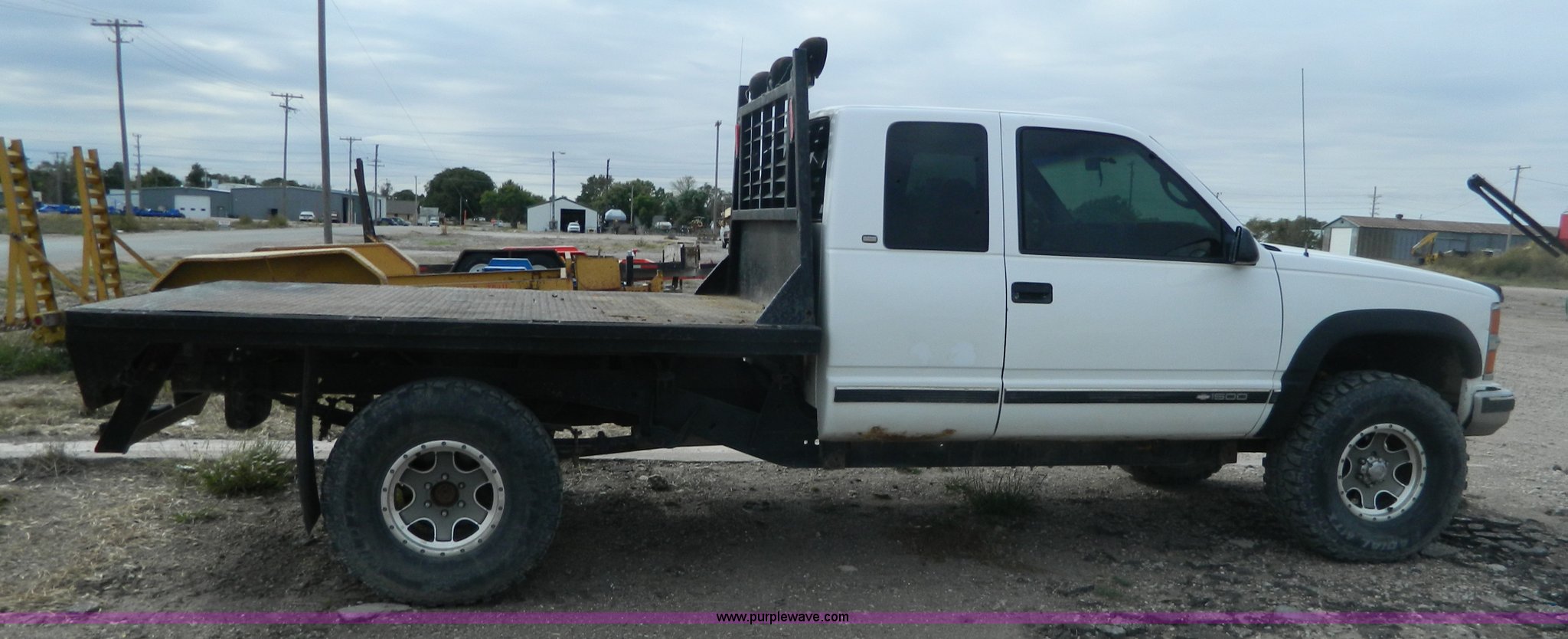 Purple Wave is selling a used 1/2 Ton Pickup or Van in Kansas. This item is a 1998 Chevrolet 1500 Ext. Cab flatbed pickup truck with the following: 264,427 miles on odometer, 5.7L V8 OHV 16V gas engine, Five speed manual transmission, AC and heat, Tilt, Cruise, AM/FM/CD, Power windows, locks, and mirrors, Cloth interior, Front tow hooks, 102"L x 86"W flatbed, Receiver hitch, Trailer wiring, 315/75R16 tires, Interior/exterior cosmetic damage, Recently replaced clutch and throw out bearing, Recently replaced transmission, Three year 100,000 transferable warranty