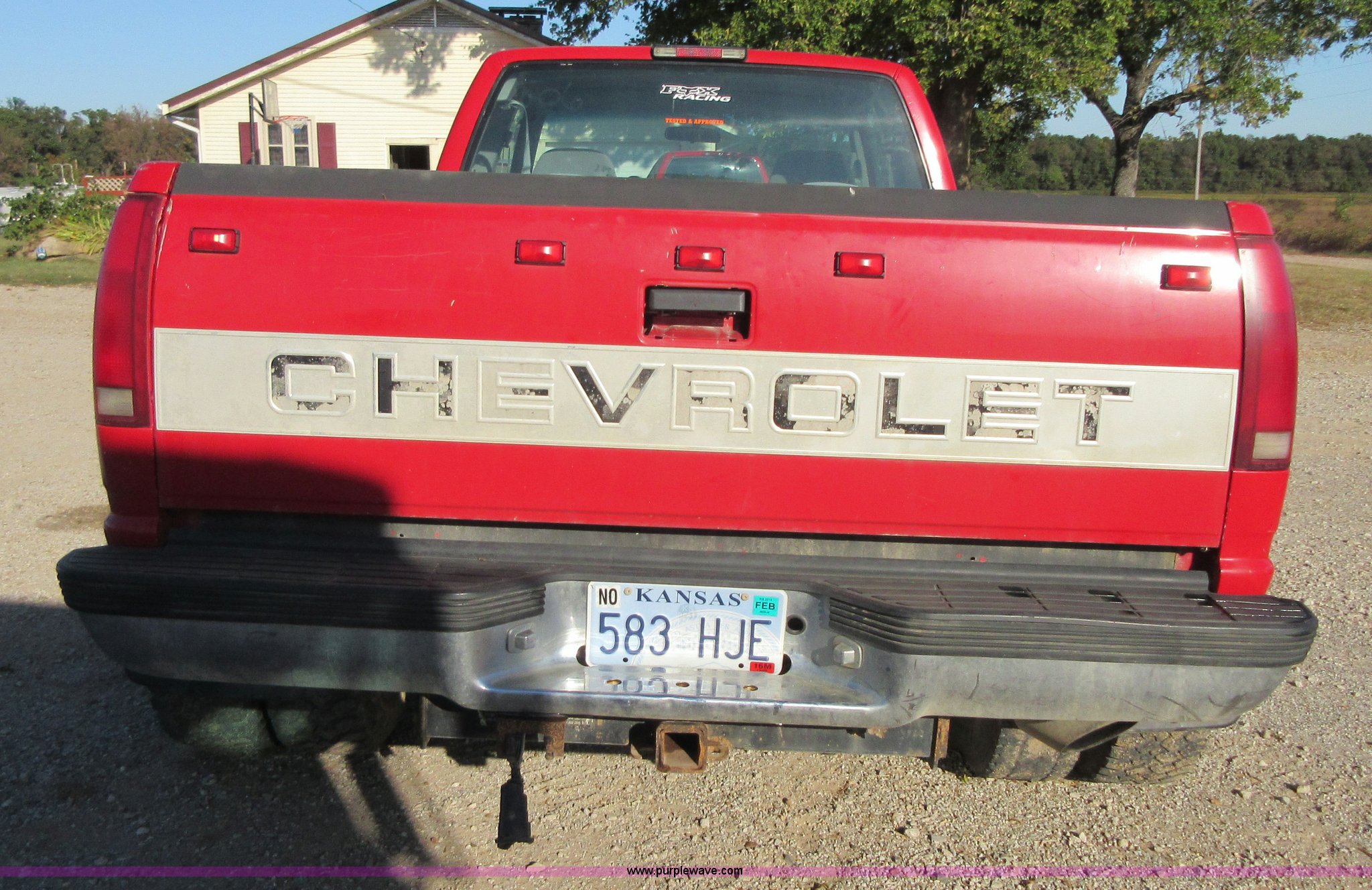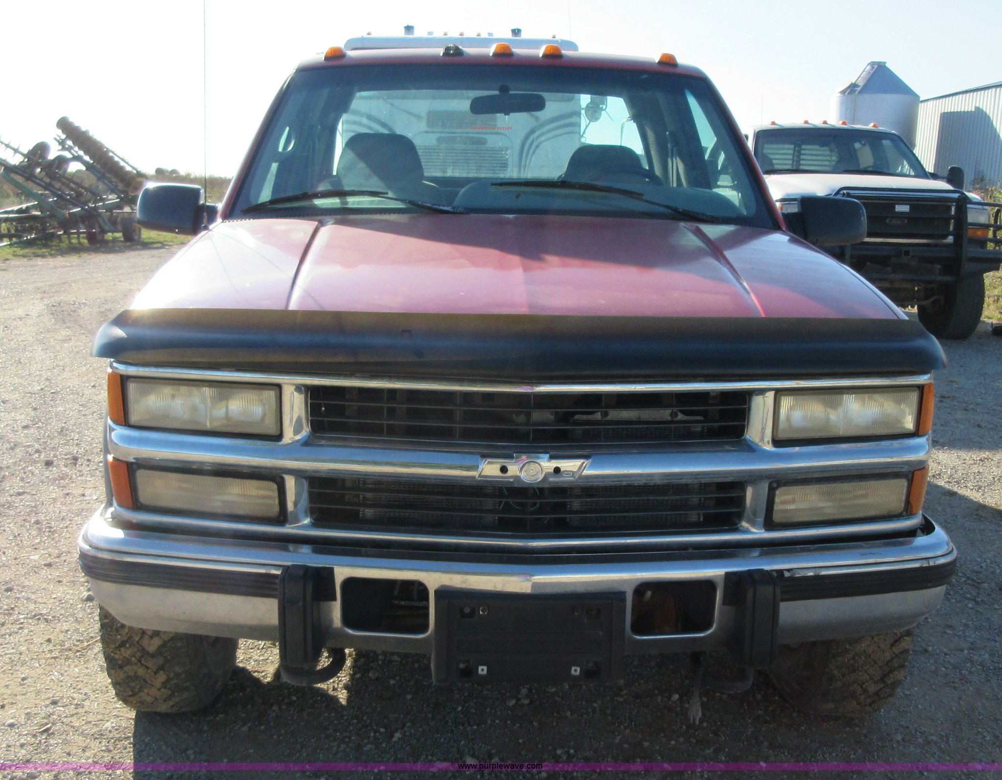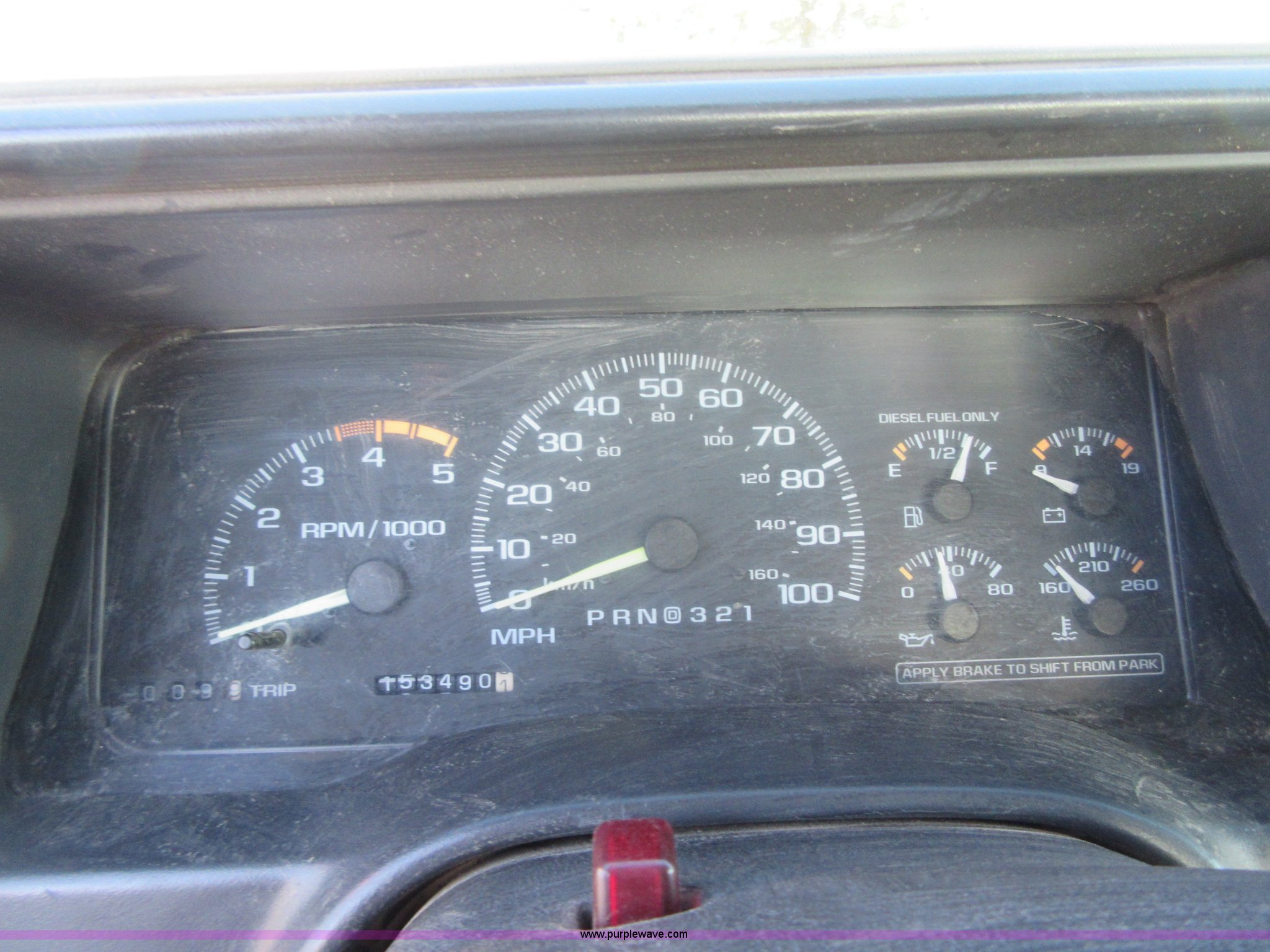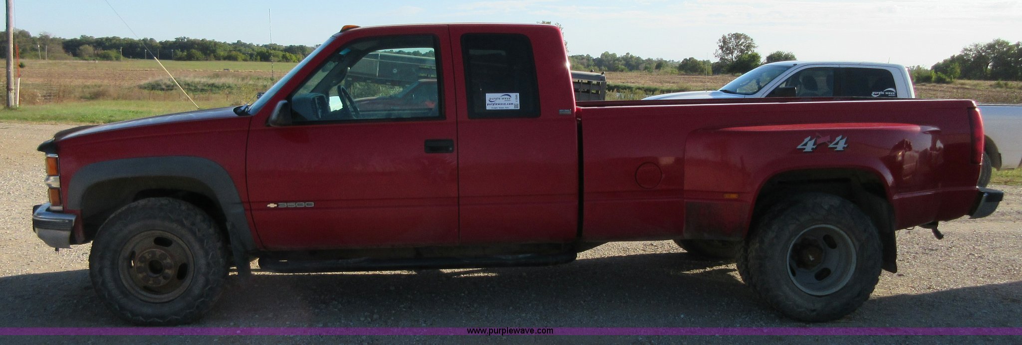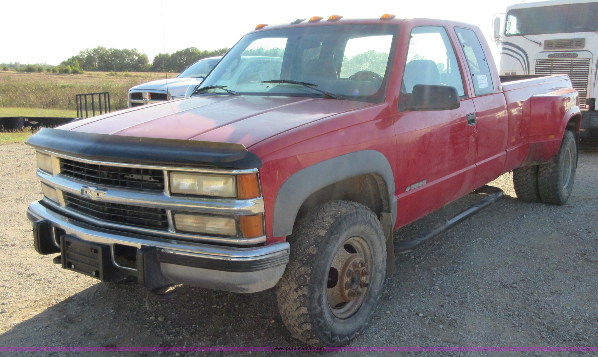 Purple Wave is selling a used 3/4 or 1 Ton Pickup or Van in Kansas. This item is a 1995 Chevrolet 3500 Ext. Cab pickup truck with the following: 153,490 miles on odometer, 6.5L V8 OHV 16V turbo diesel engine, Automatic transmission, Four wheel drive, AC and heat, Tilt, AM/FM/CD, Power windows, locks, mirrors, and seat, Cloth interior, Running boards, Gooseneck ball, Receiver hitch, Trailer wiring, LT235/85R16 tires, Transmission slips, Cracked windshield