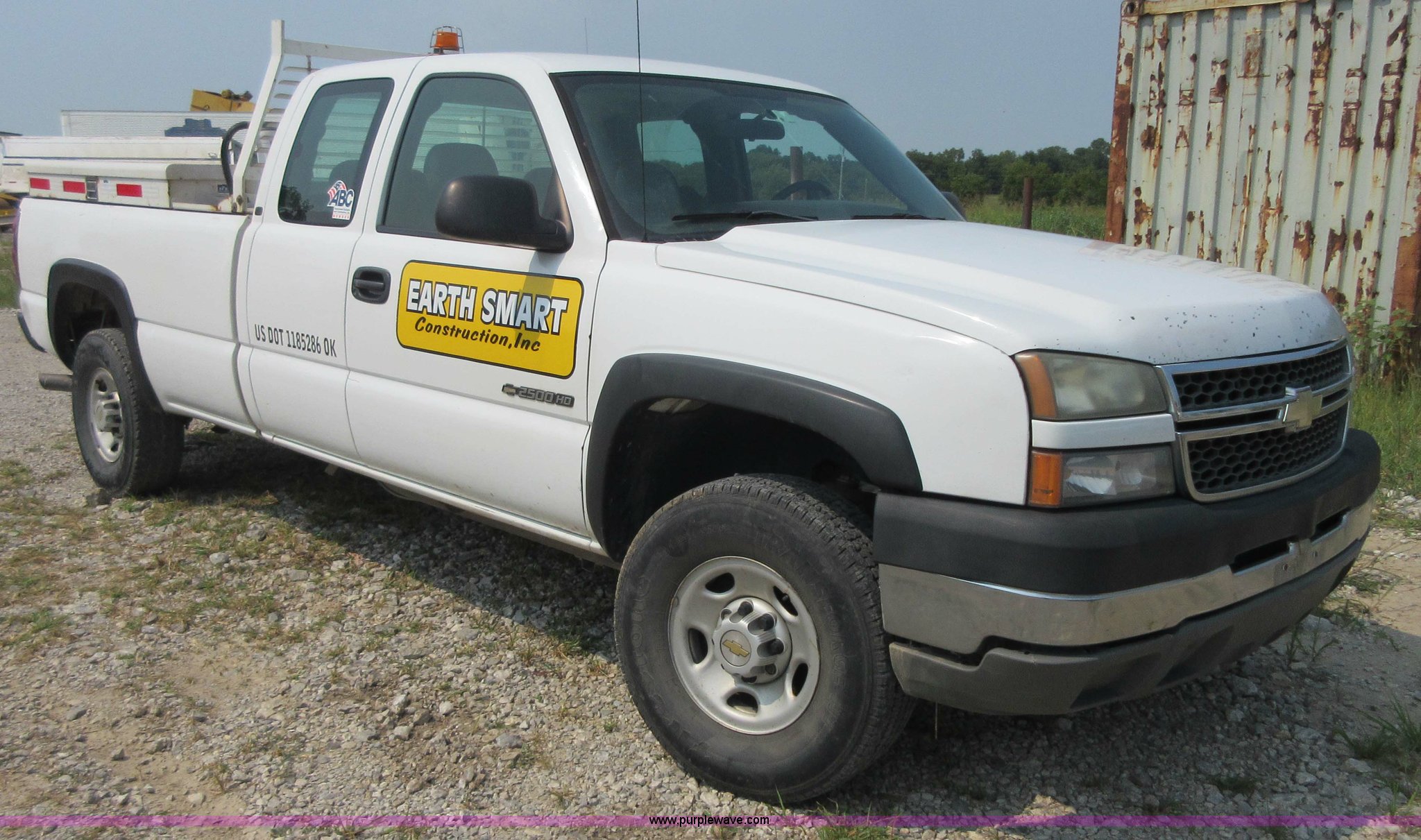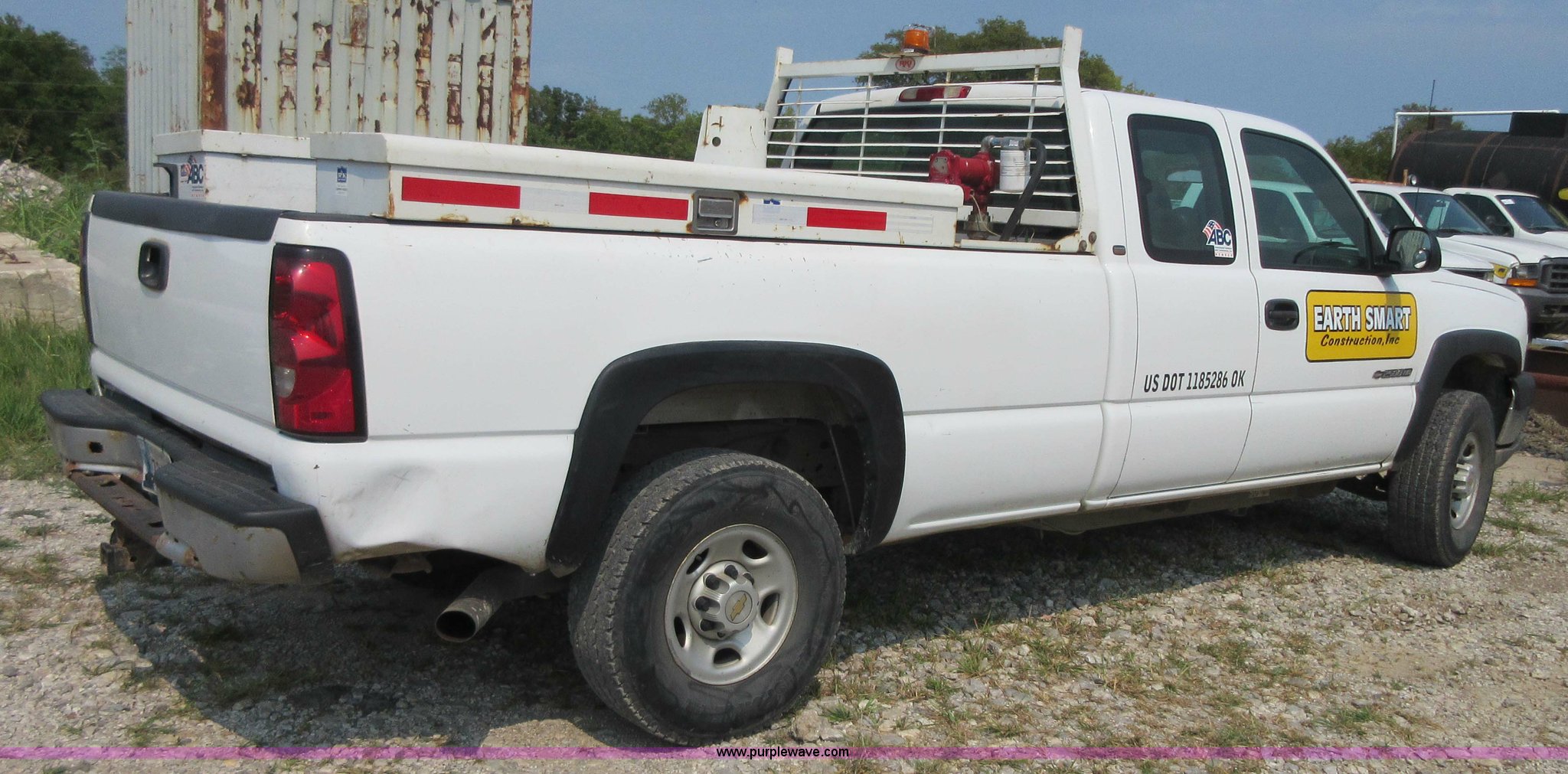 2005 Chevrolet Silverado 2500HD Ext. Cab pickup truck. 174,640 miles on odometer Miles may vary, still in use, 6.0L V8 OHV 16V gas engine, Automatic transmission, AC and heat, Tilt, Cruise, AM/FM, Manual windows and locks, Cloth interior, Long bed, Diesel fuel tank 12V pump 15 gpm, Receiver hitch, LT265/75R16 tires, Interior/exterior cosmetic damage, Cracked windshield, Driver door will not open from interior, Toolboxes not included, Unit# 443. Title has a lien that will be released following the close of the auction. Title distribution may be delayed up to 30 days from verification of funds. 1GCHC29U55E252638. Earth Smart Construction. 1690 N Lynn Lane. Catoosa, OK 74015