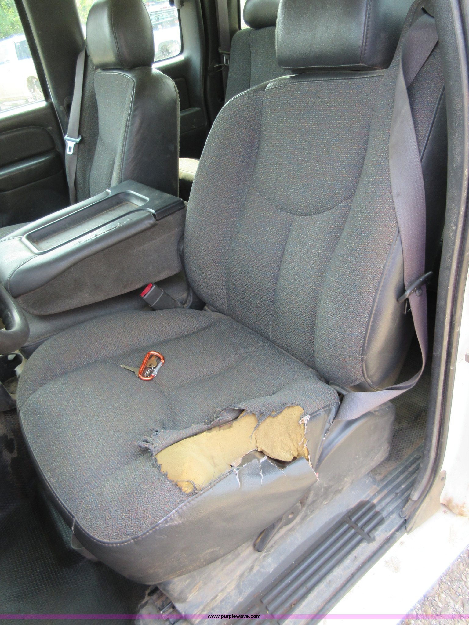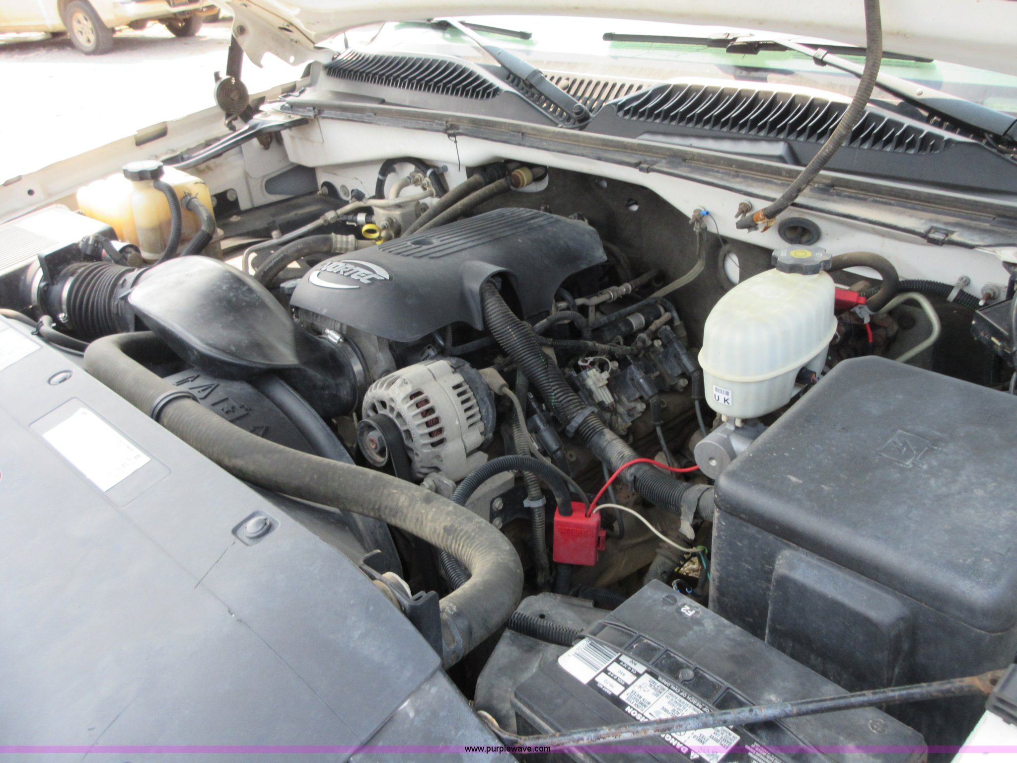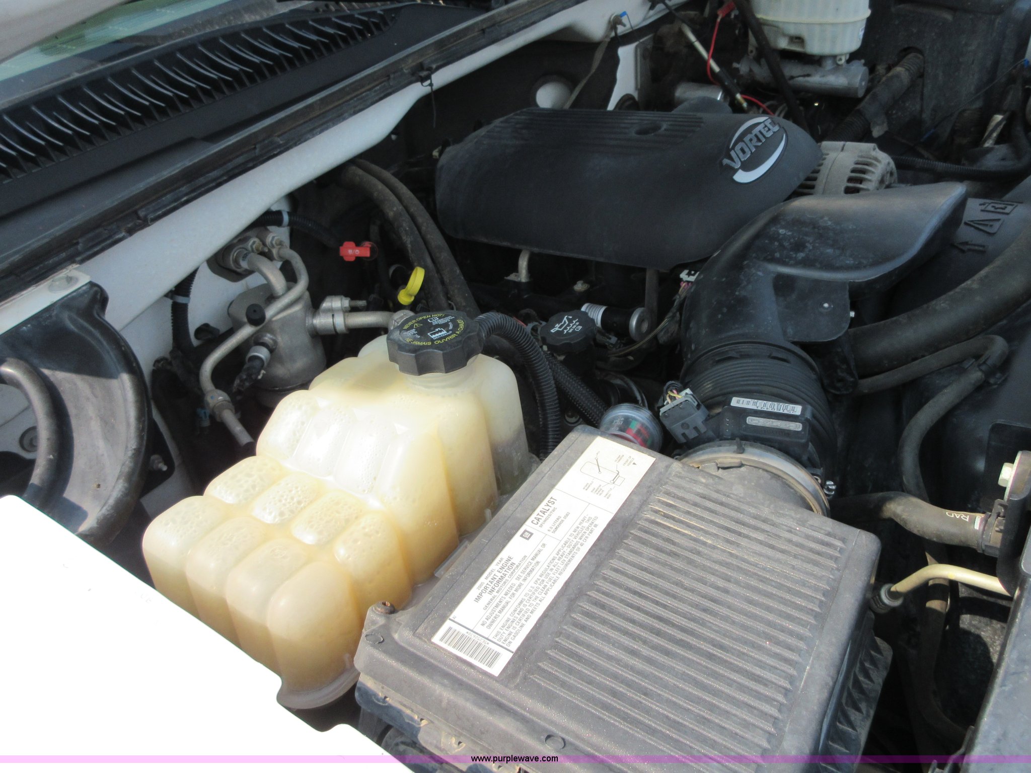 Purple Wave is selling a used 3/4 or 1 Ton Pickup or Van in Oklahoma. This item is a 2005 Chevrolet Silverado 2500HD Ext. Cab pickup truck with the following: 174,640 miles on odometer, Miles may vary, still in use, 6.0L V8 OHV 16V gas engine, Automatic transmission, AC and heat, Tilt, Cruise, AM/FM, Manual windows and locks, Cloth interior, Long bed, Diesel fuel tank, 12V pump, 15 gpm,, Receiver hitch, LT265/75R16 tires, Interior/exterior cosmetic damage, Cracked windshield, Driver door will not open from interior, Toolboxes not included, Unit# 443