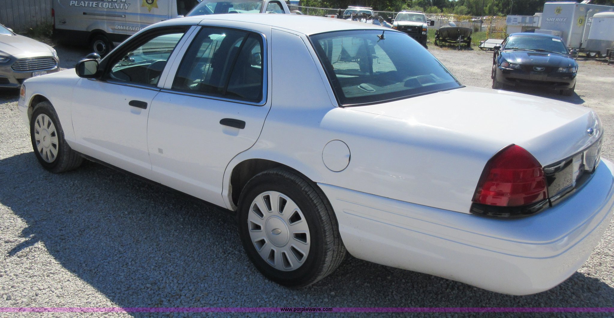 2007 Ford Crown Victoria Police Interceptor. 130,704 miles on odometer, 4.6L V8 SOHC 16V gas engine, Automatic transmission, AC and heat, Tilt, Cruise, AM/FM, Power windows and locks, Cloth interior, 225/60R16 tires. Title distribution may be delayed up to 14 days from verification of funds. 2FAHP71W57X152853. Platte County Sheriffs Office. 15955 273 Hwy. Tracy, MO 64079