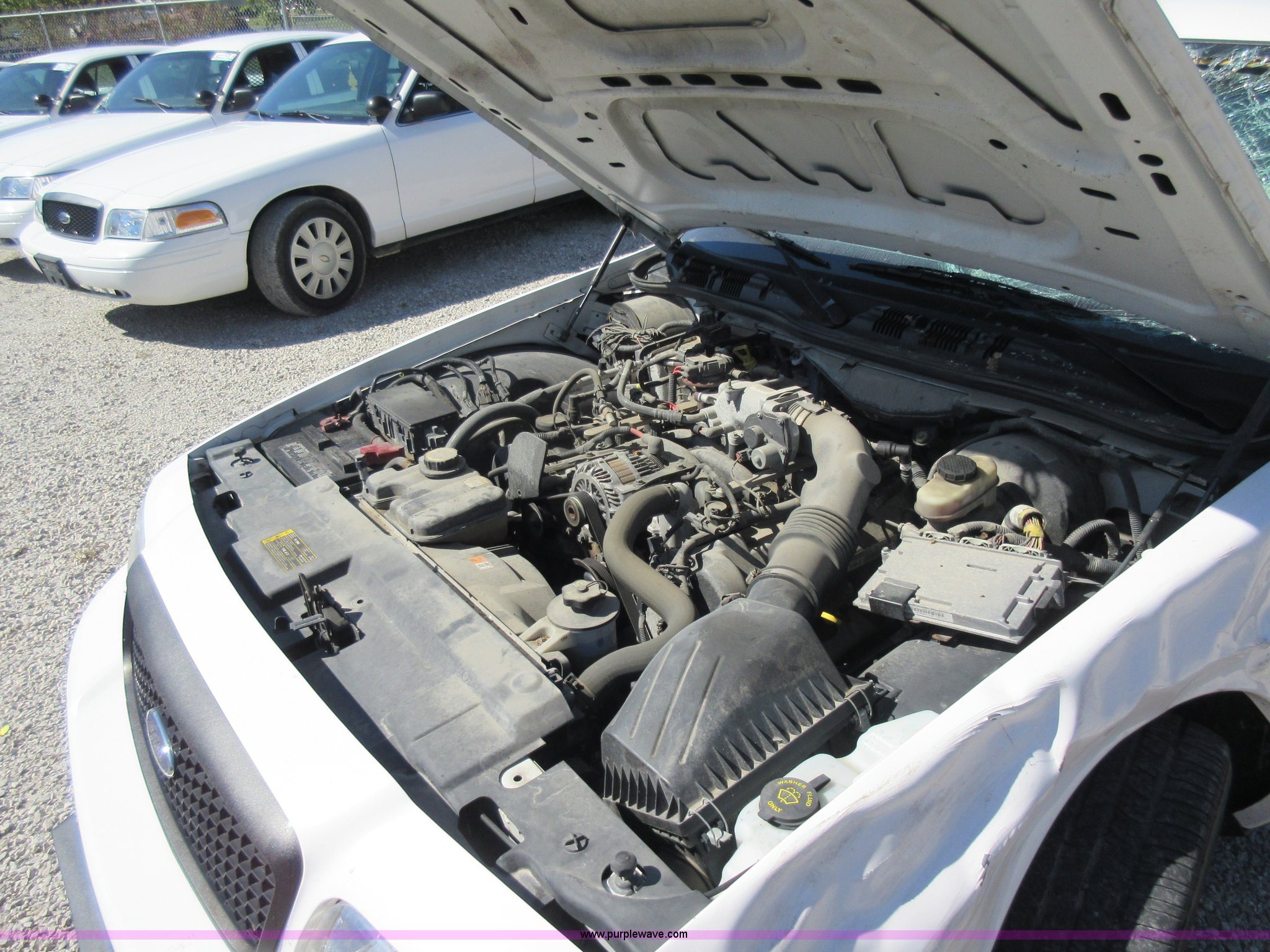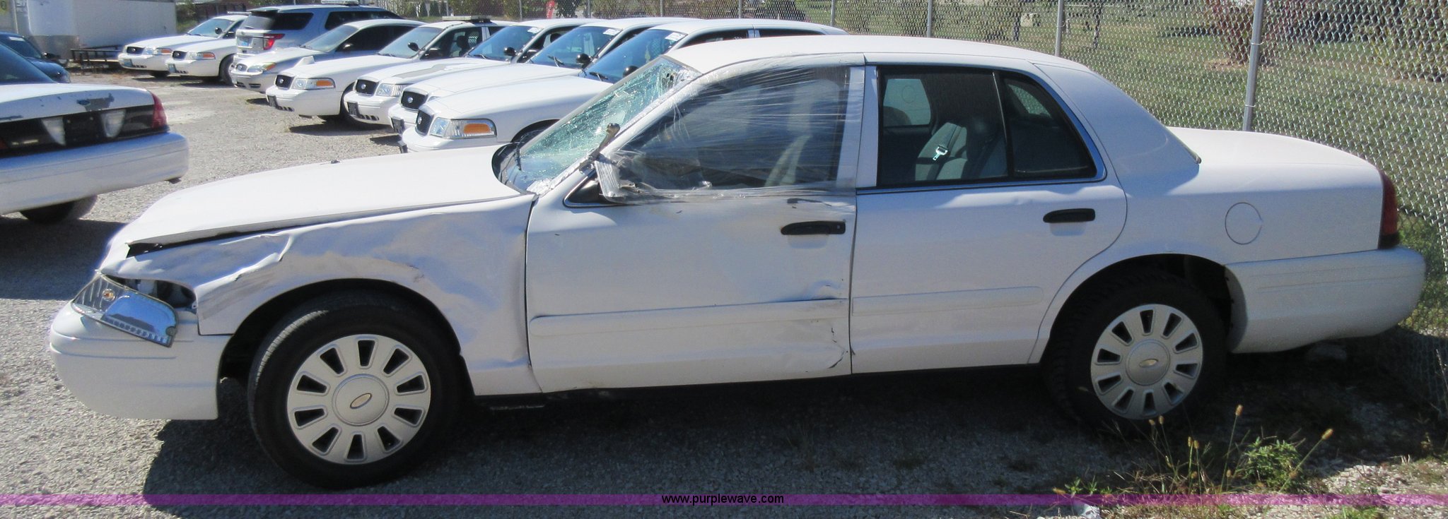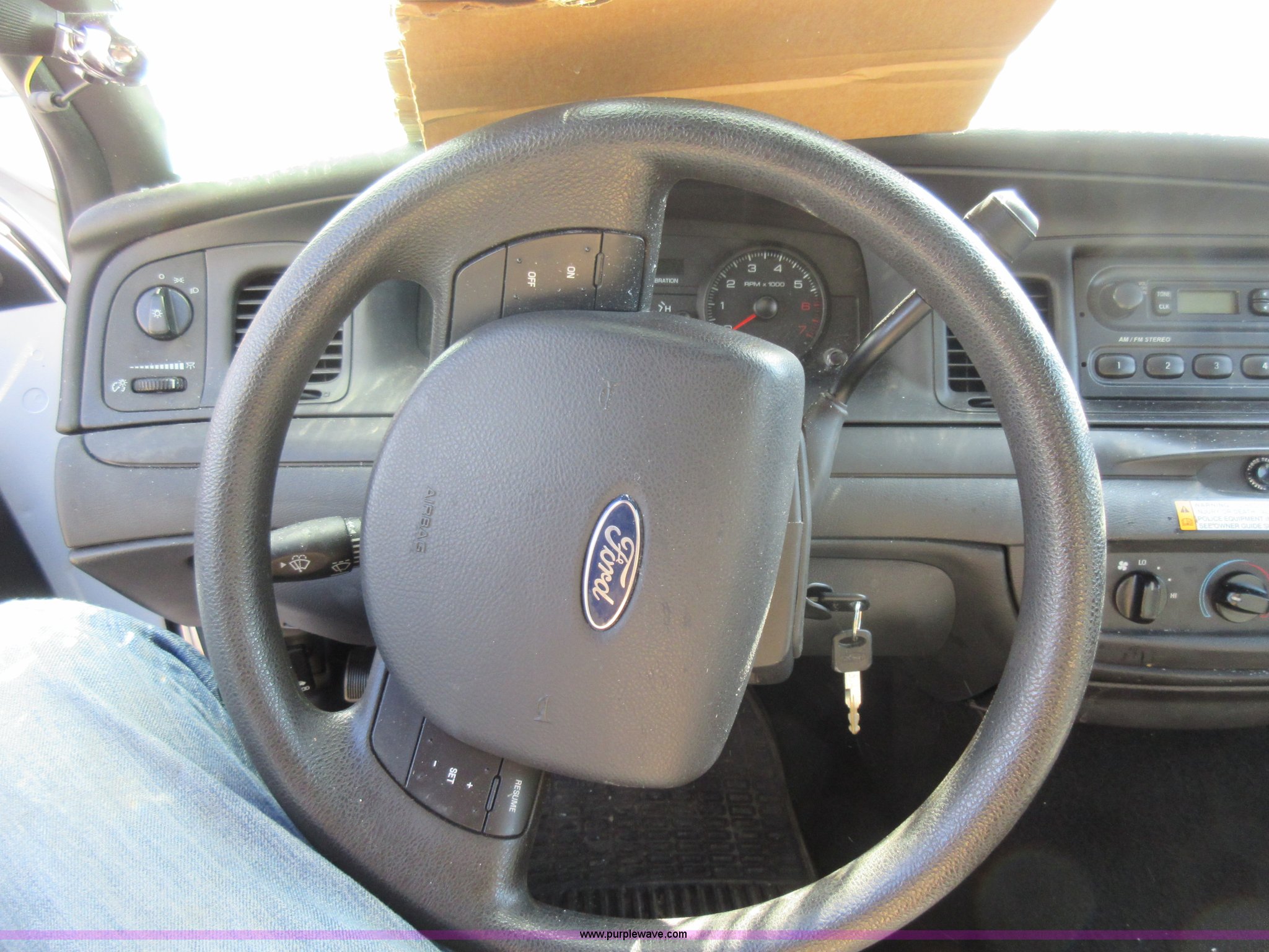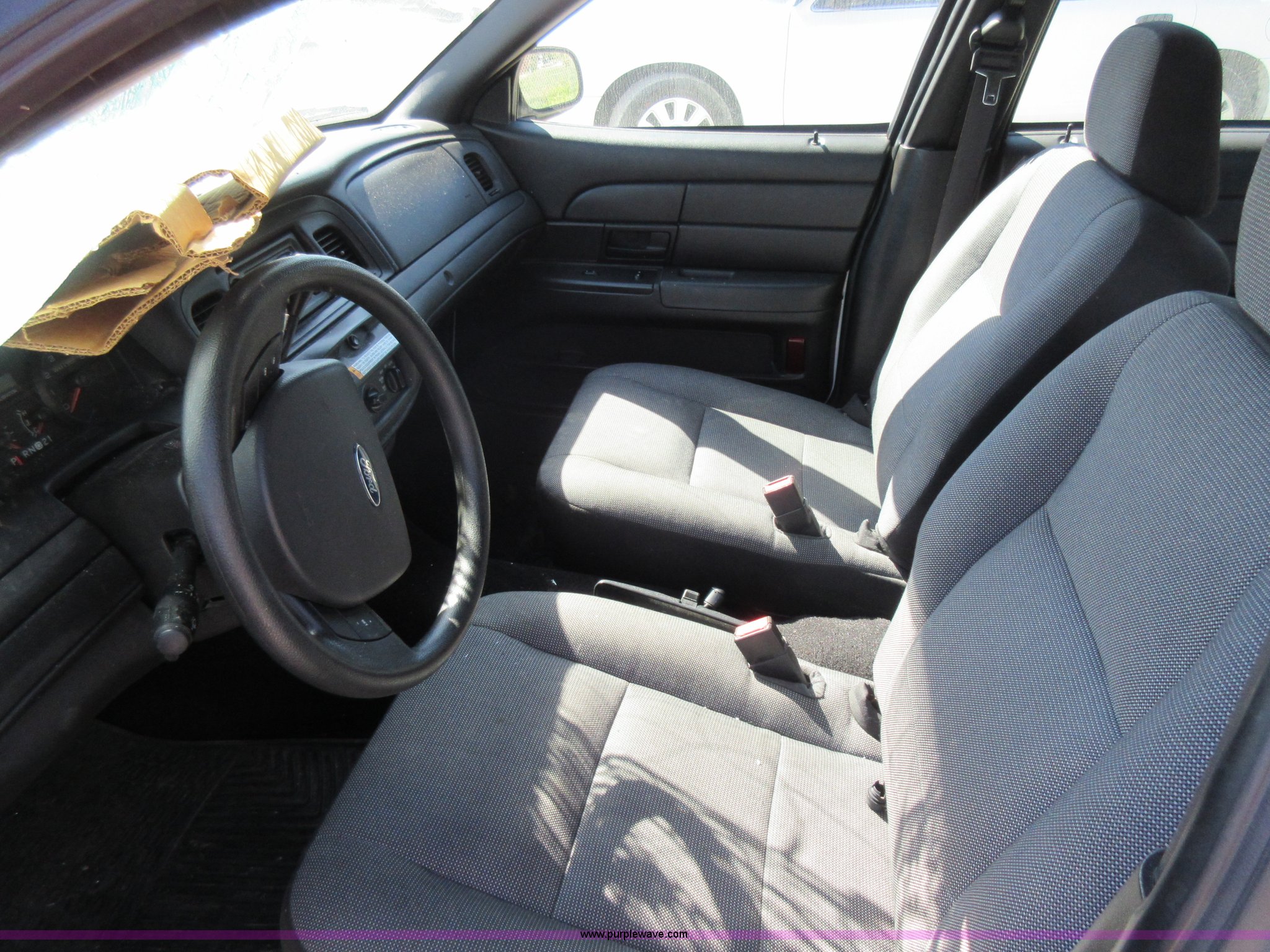 Purple Wave is selling a used Passenger Vehicle in Missouri. This item is a 2008 Ford Crown Victoria Police Interceptor with the following: 100,264 miles on odometer, 4.6L V8 SOHC 16V FFV gas engine, Automatic transmission, AC and heat, Tilt, Cruise, AM/FM, Power windows and locks, Cloth interior, 225/60R16 tires, Front left corner damage, Wreck damage, Windshield damaged