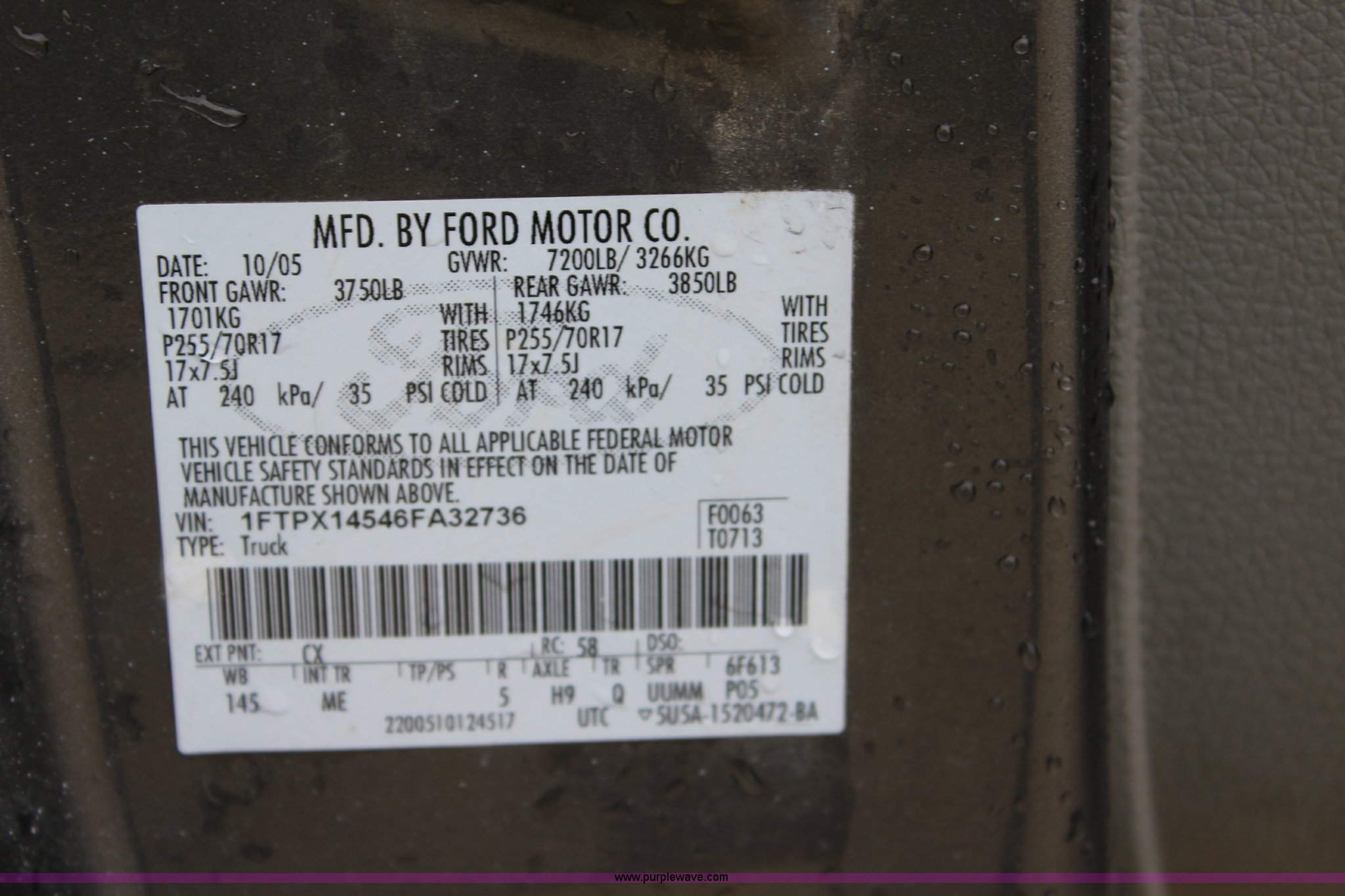 2006 Ford F150 SuperCab pickup truck. 165,183 miles on odometer, 5.4L V6 SOHC 16V gas engine, Automatic transmission, Four wheel drive, AC and heat, Tilt, Cruise, AM/FM/CD, Power windows, locks, and mirrors, Cloth interior, Receiver hitch, 265/70R16 tires, Rust, Cosmetic damage on left side, Seat torn. Vehicle has an E-Title in the State of Kansas. Buyer will receive a paper title within 30 days from verification of funds. 1FTPX14546FA32736. Turf Design Inc.. Shawnee, KS 66227