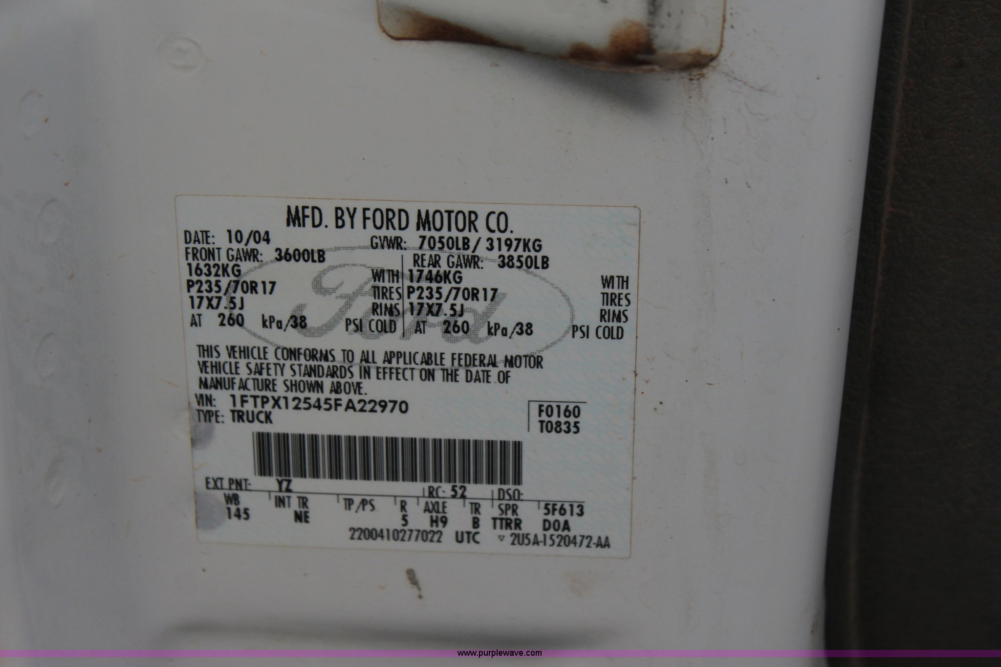 Purple Wave is selling a used 1/2 Ton Pickup or Van in Oklahoma. This item is a 2005 Ford F150 SuperCab pickup truck with the following: 241,786 miles on odometer, 5.4L V6 SOHC 16V gas engine, Automatic transmission, AC and heat, Tilt, Cruise, AM/FM/CD, Power windows, locks, and mirrors, Cloth interior, Receiver hitch, Trailer wiring, P255/70R17 tires, Interior/exterior cosmetic damage, Front and rear crank seals leak oil, Unit# 10-52