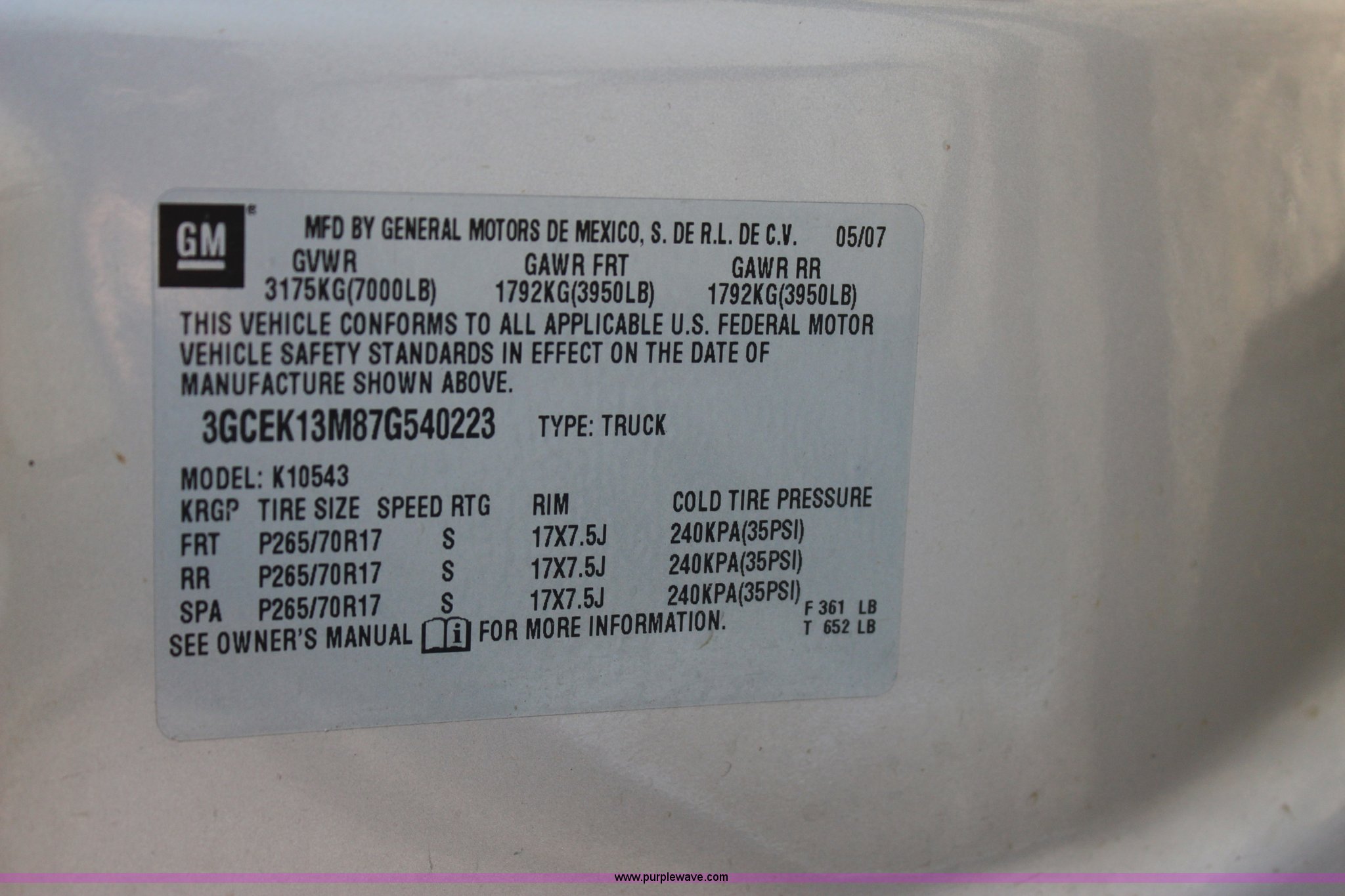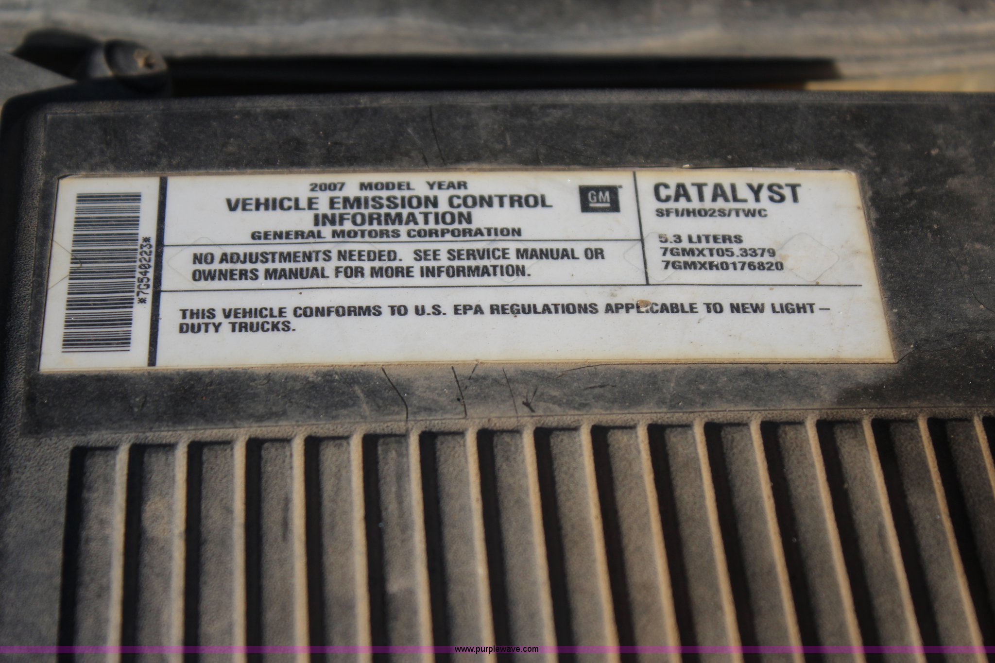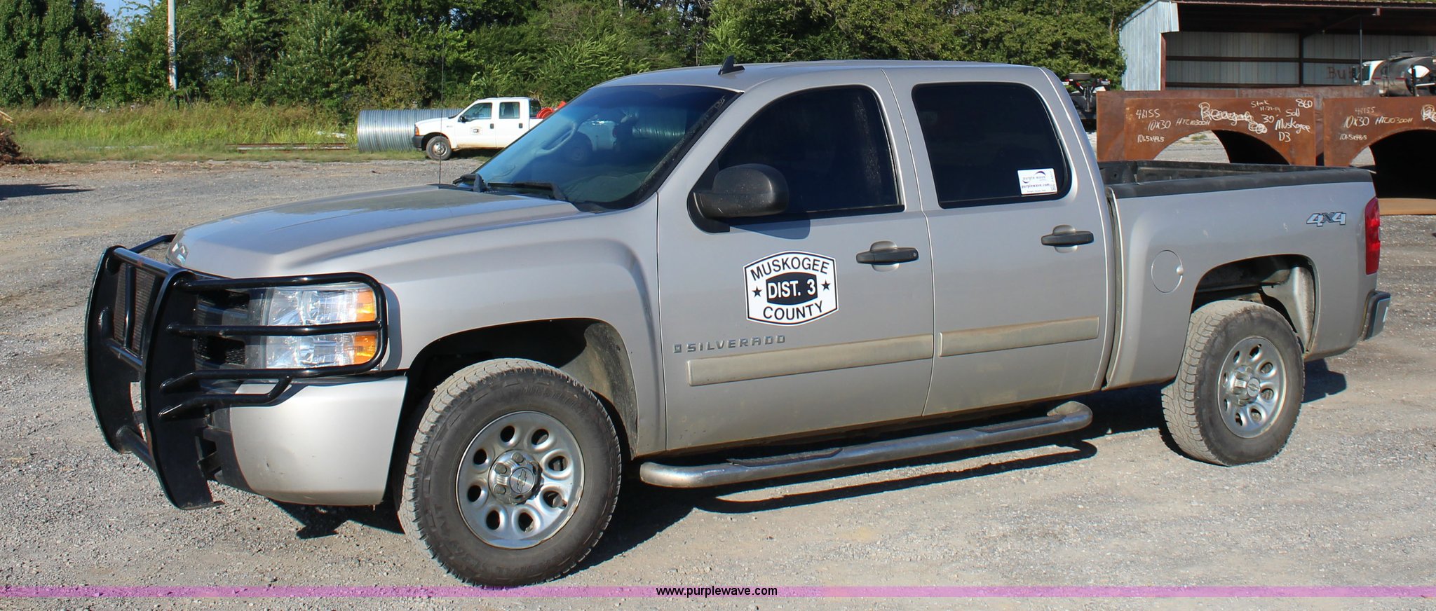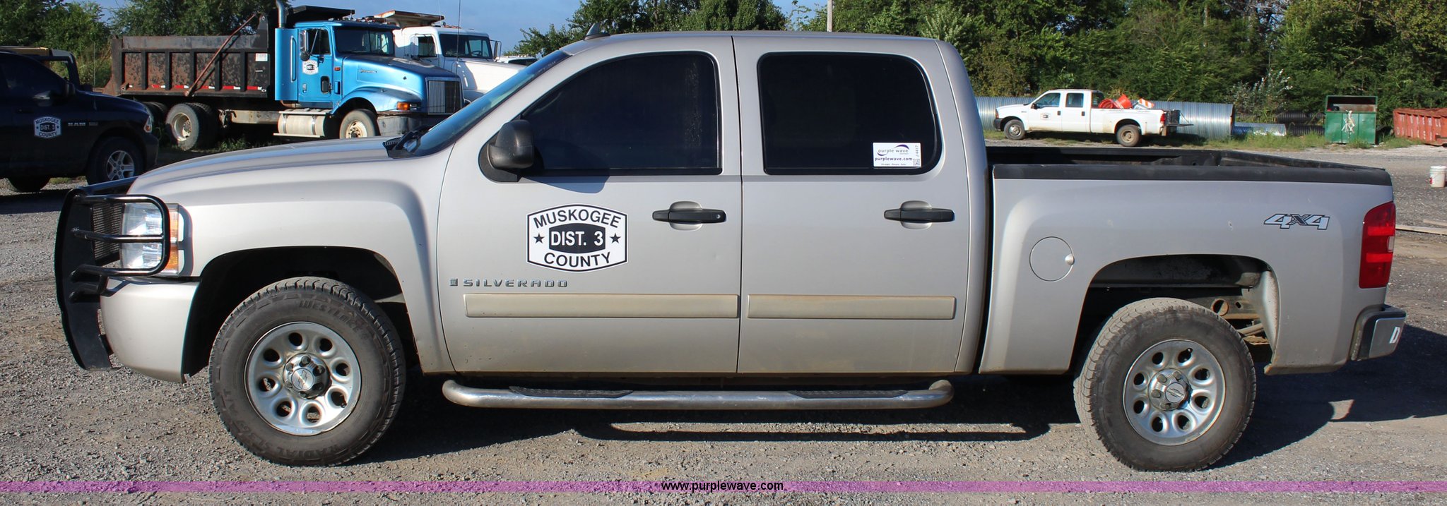 Purple Wave is selling a used 1/2 Ton Pickup or Van in Oklahoma. This item is a 2007 Chevrolet Silverado 1500 Crew Cab pickup truck with the following: 265,997 miles on odometer, 5.3L V8 OHV 16V gas engine, Automatic transmission, Four wheel drive, AC and heat, Tilt, Cruise, AM/FM/CD, Power windows, locks, and mirrors, Cloth interior, Grill guard, Front tow hooks, Running boards, Spray in bed liner, Receiver hitch, Trailer wiring, LT245/75R17 tires, Unit# D301-358
